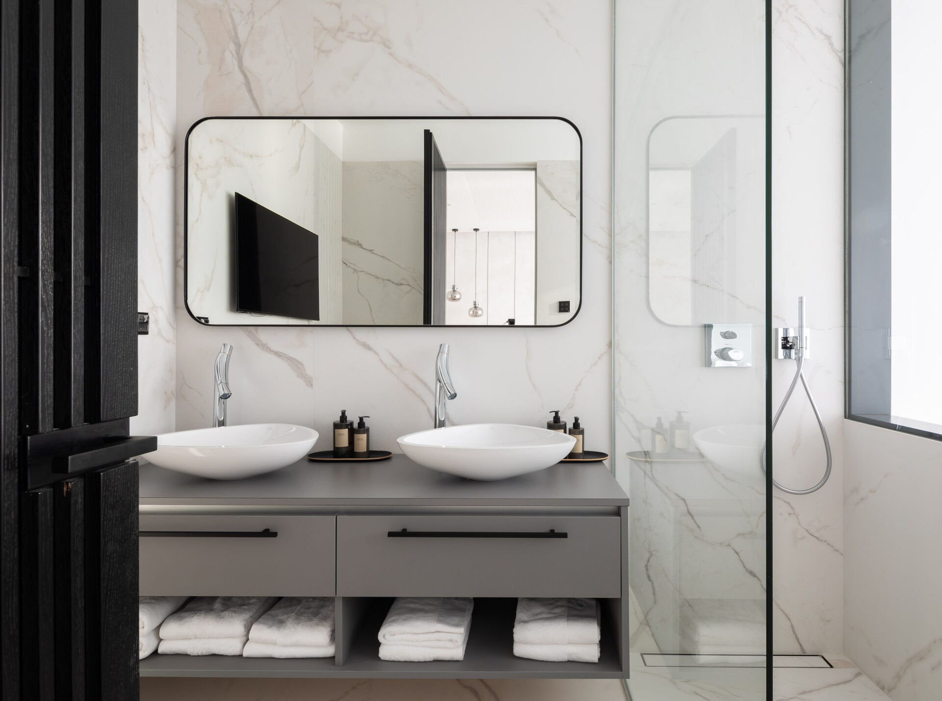 - 2 camere matrimoniali (letto king size, aria condizionata) con divano letto singolo e vasca da bagno a vista e bagno privato con doccia
