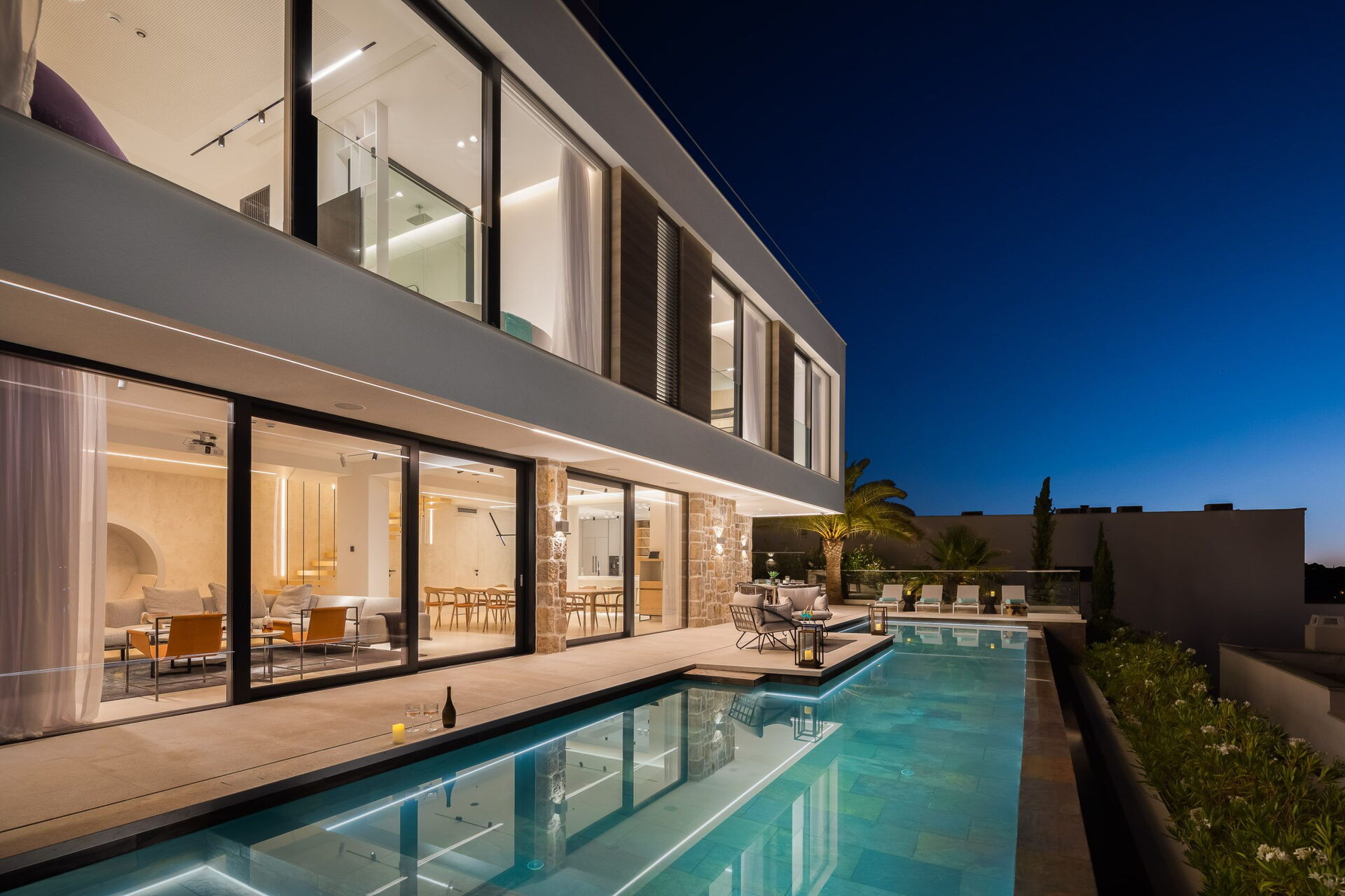 Questa esclusiva villa si sviluppa su due piani e oltre a offrire viste mozzafiato e un moderno design, è dotata di ogni moderno comfort: grazie alle sue 3 camere da letto può ospitare fino a 6/8 persone in ambienti luminosi ed elegantemente arredati.