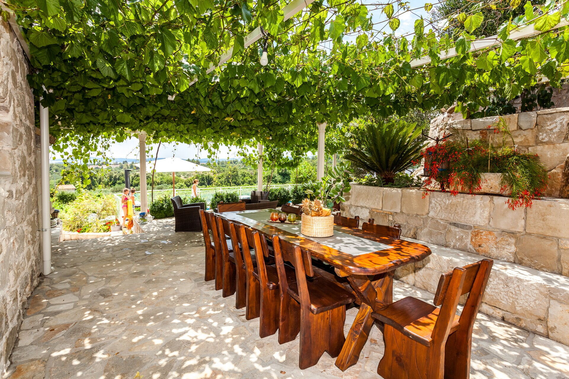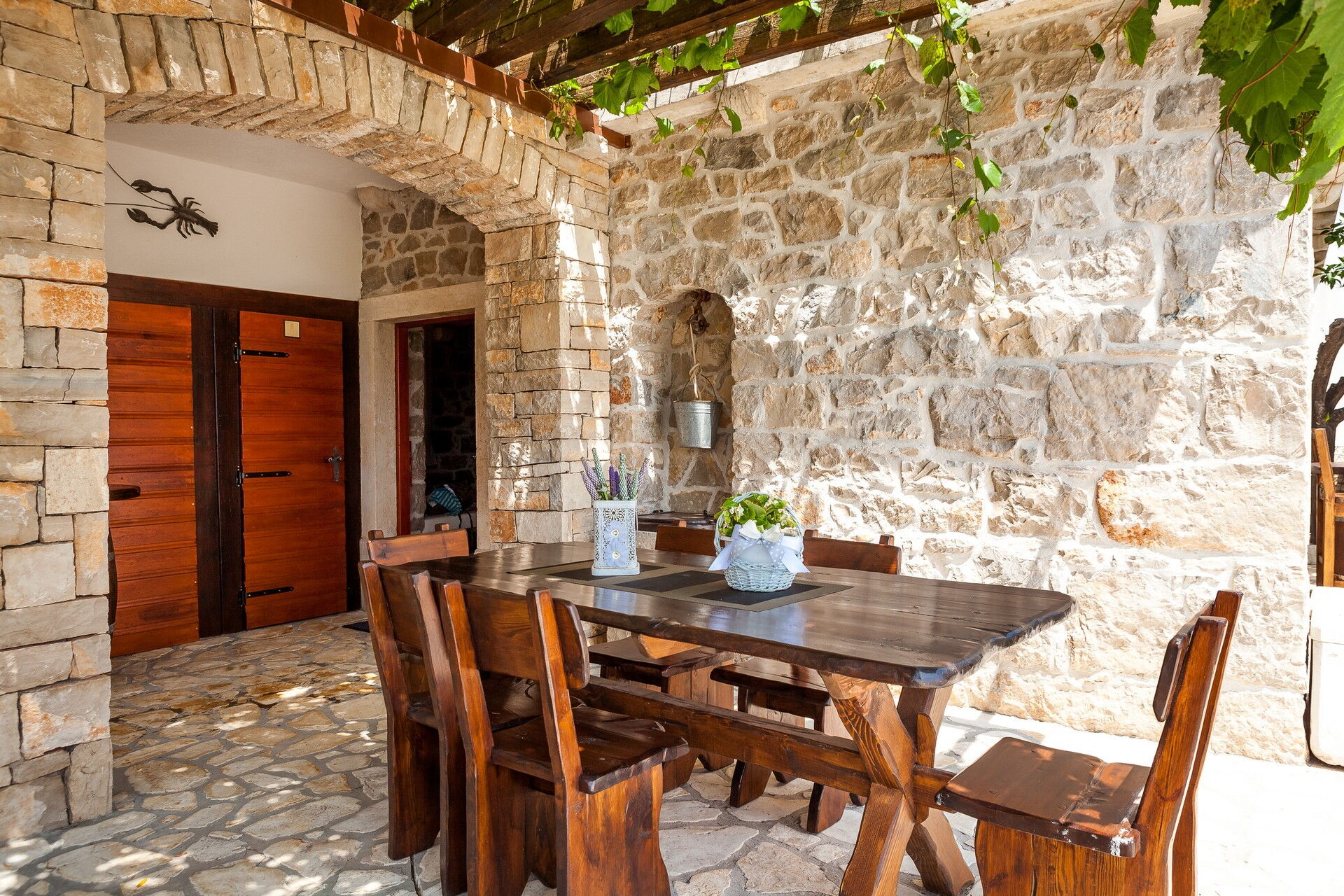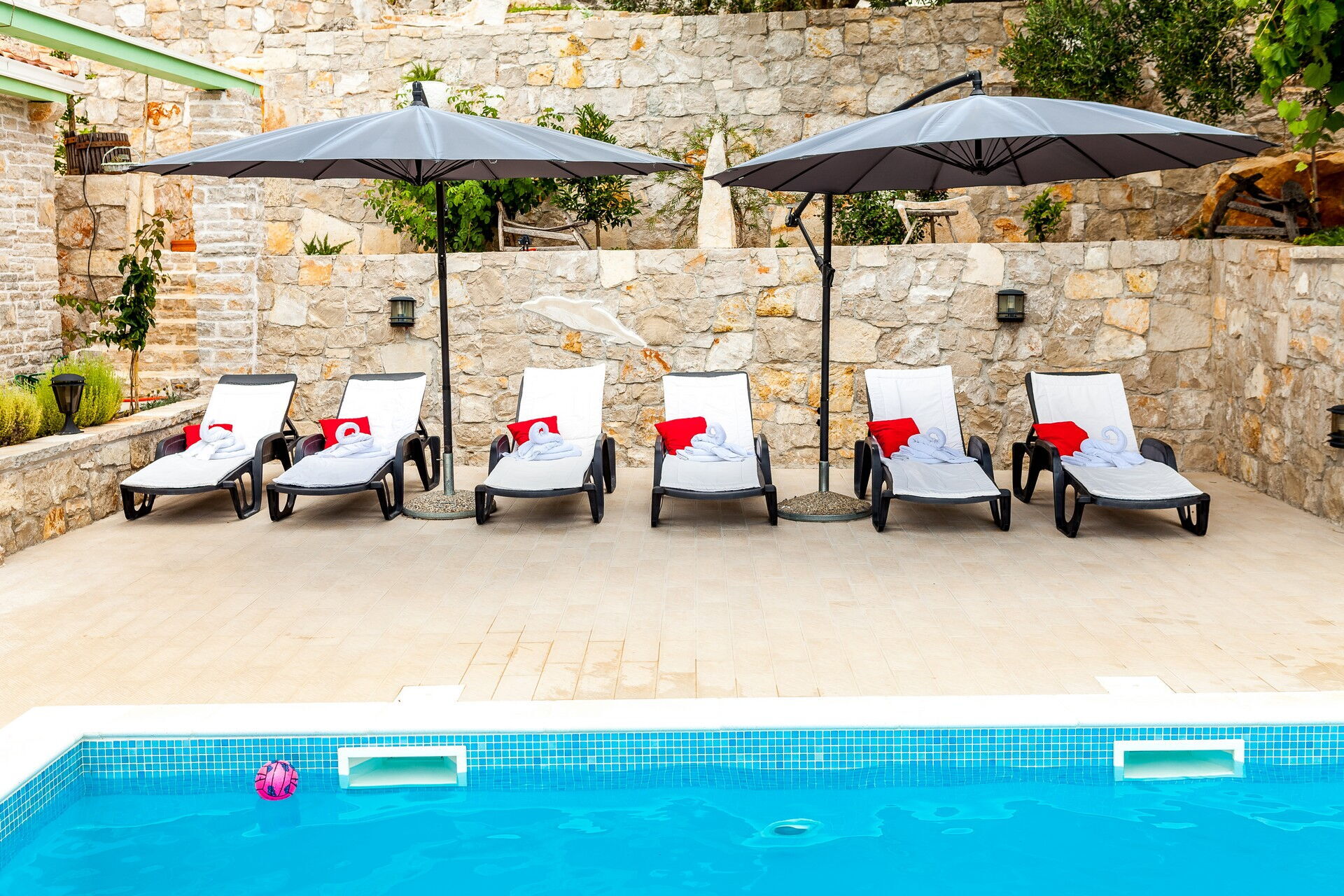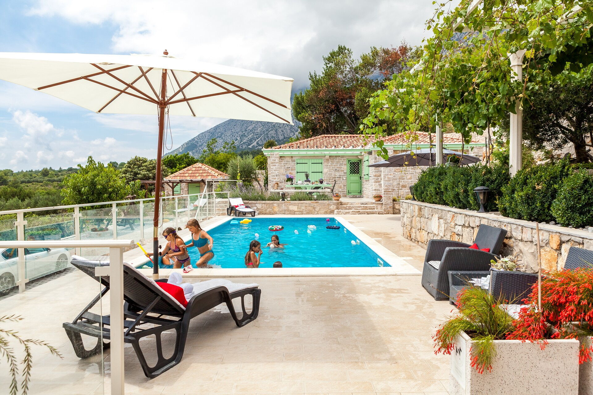 Questa esclusiva villa in affitto per vacanze si compone di 3 piccoli appartamenti, riuscendo ad ospitare fino a 14 persone. La particolarità di questo borghetto è l’uso della pietra che compone tutti i muri delle abitazioni e che pavimenta tutta la zona esterna. Due dei tre appartamenti sono antiche case dalmate debitamente rinnovate negli interni, mantenendo a vista la loro originaria natura.