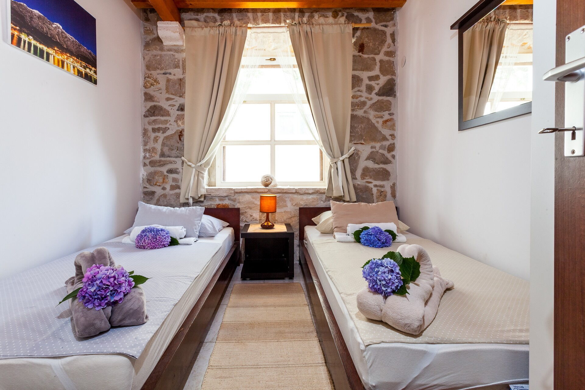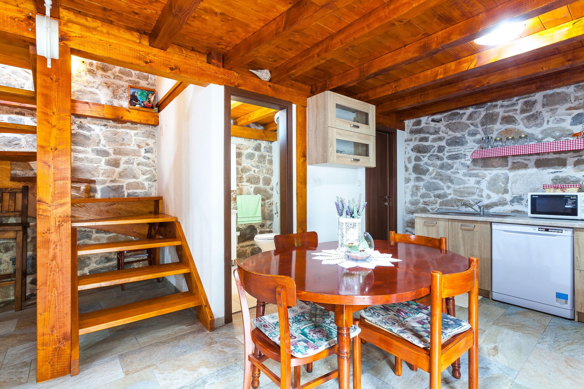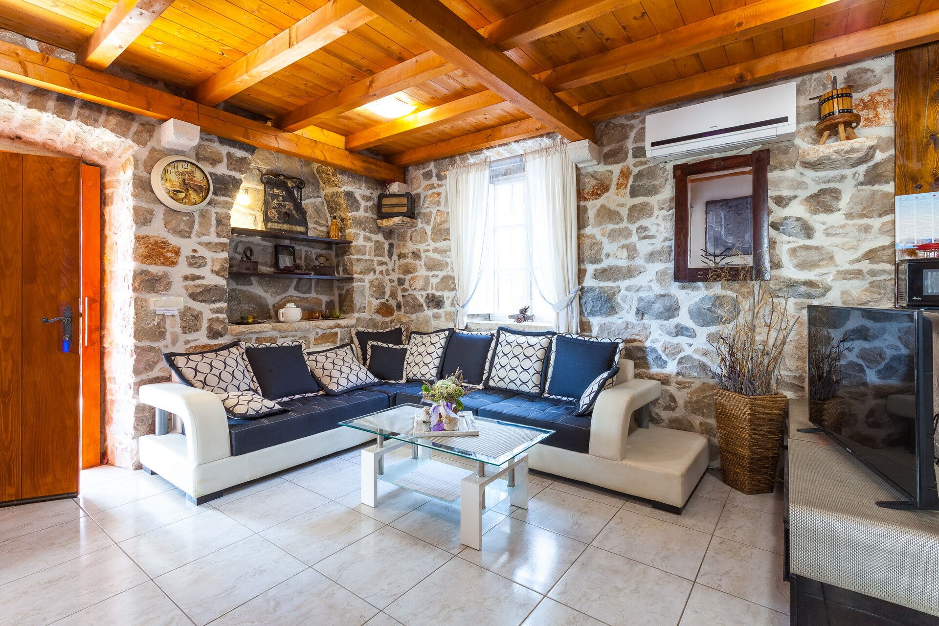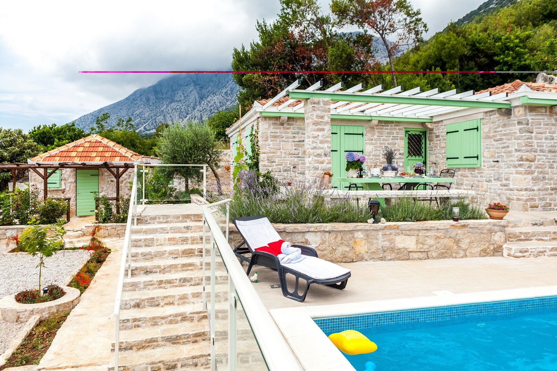 Questa esclusiva villa in affitto per vacanze si compone di 3 piccoli appartamenti, riuscendo ad ospitare fino a 14 persone. La particolarità di questo borghetto è l’uso della pietra che compone tutti i muri delle abitazioni e che pavimenta tutta la zona esterna. Due dei tre appartamenti sono antiche case dalmate debitamente rinnovate negli interni, mantenendo a vista la loro originaria natura.
