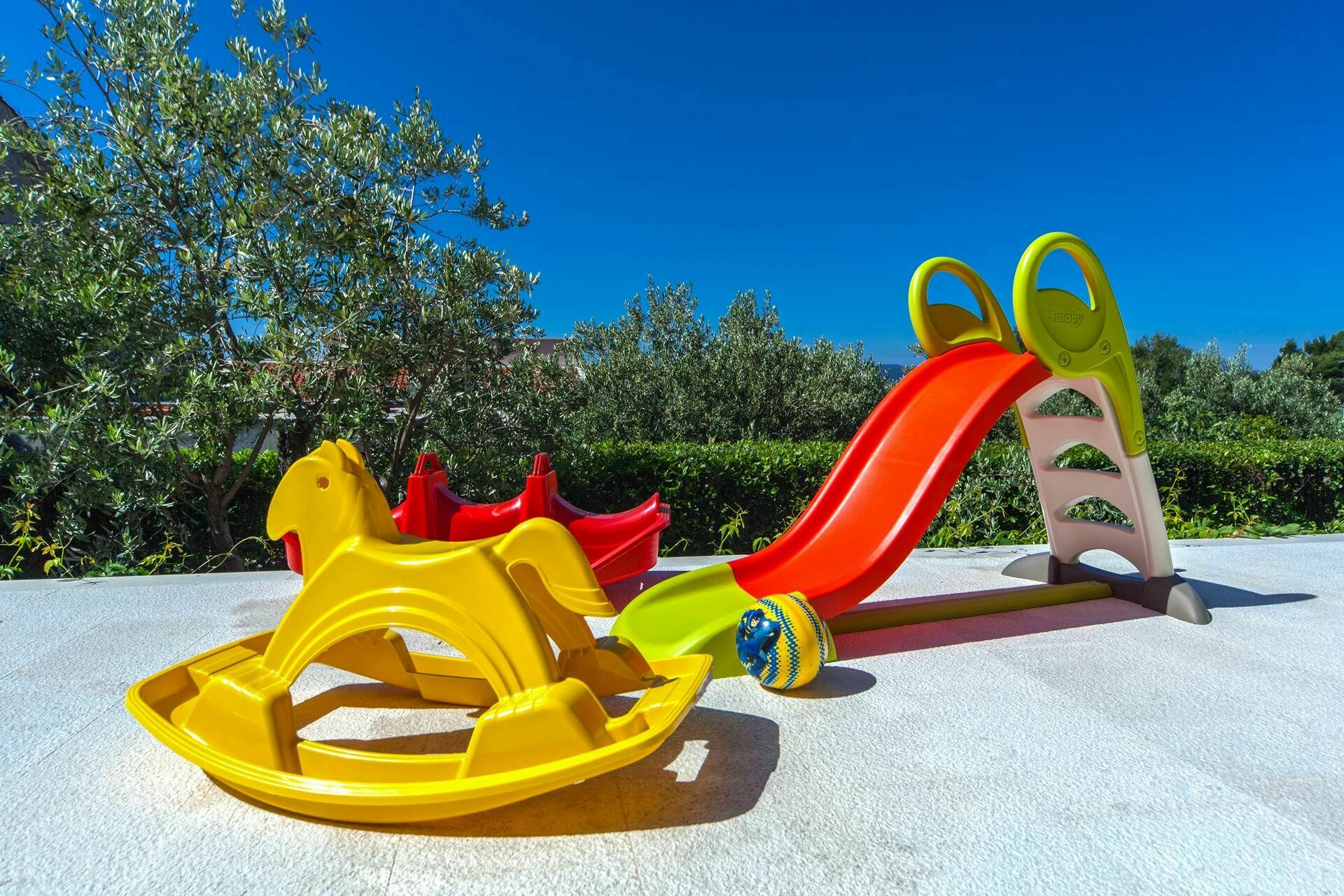 All'esterno, una splendida piscina è a disposizione degli ospiti per rilassarsi e rinfrescarsi a bordo vasca in alternativa alla vicina spiaggia. Un'area pranzo all'aperto permetterà di organizzare pranzi, cene e magici aperitivi all'ora del tramonto da godesi insieme ai propri amici e alla propria famiglia. Per la gioia dei più piccini, vi sono a disposizione giochi da giardino (scivolo, dondolo ecc)