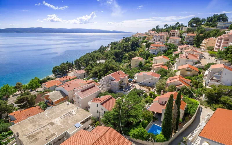Esclusiva villa in affitto con piscina privata a Baska Voda, piccola e caratteristica località marittima sulla Riviera di Makarska in Croazia.