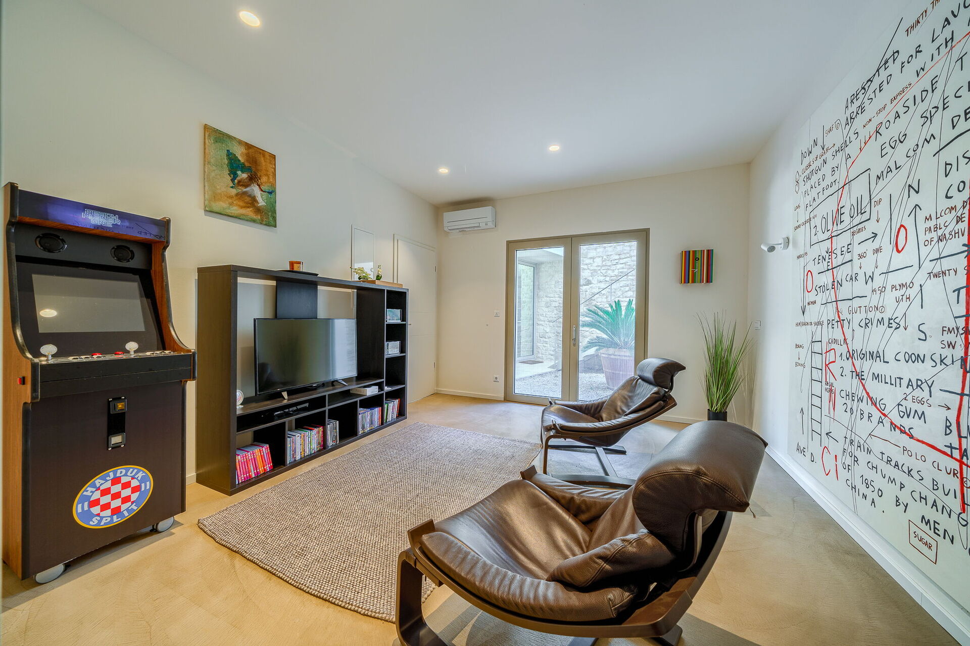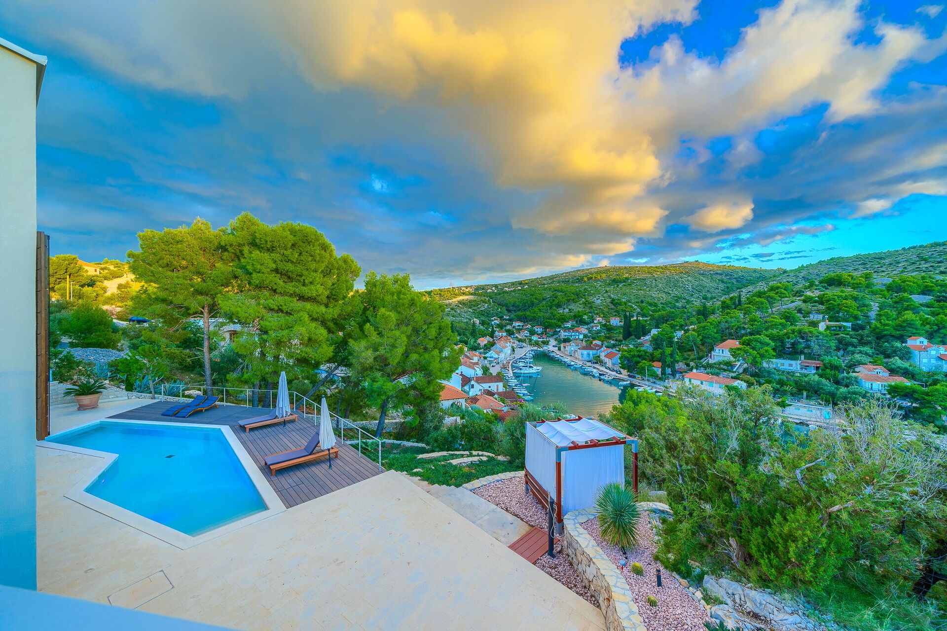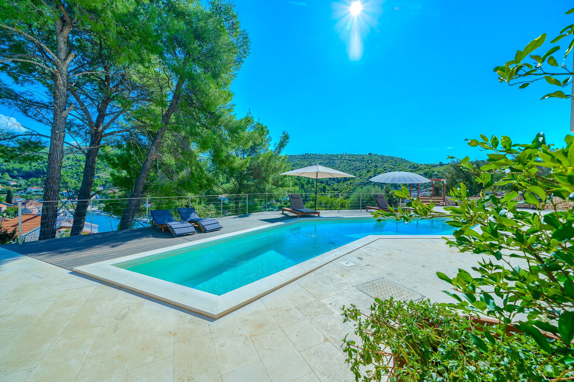 Una terrazza solarium attrezzata con lettini prendisole circonda la bellissima e panoramica piscina (riscaldabile su richiesta): è il luogo ideale in cui rilassarsi e rinfrescarsi nelle giornate più calde. Un'area barbecue attrezzata con tavolo e sedie permetterà agli ospiti di organizzare pranzi, cene e aperitivi all'ora del tramonto: la vostra vacanza in Croazia sarà perfetta in compagnia di amici e familiari.