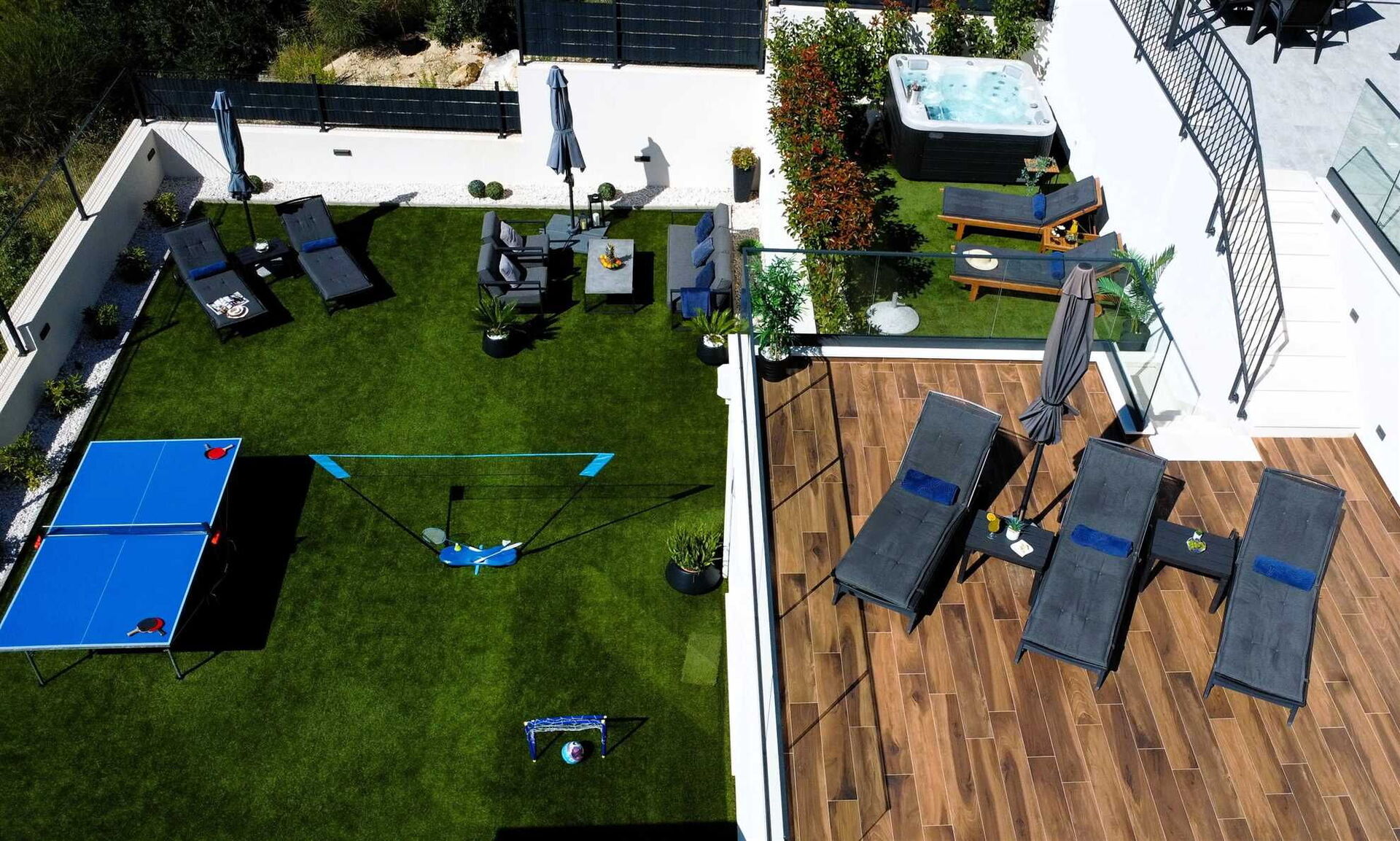 Villa Nikta si suddivide su più piani, sia all’interno che all’esterno. Infatti, internamente la casa si sviluppa su 2 piani con 5 camere e 5 bagni, ospitando fino a 10 persone; mentre il giardino esterno, terrazzato e su più livelli, ospita una zona con una vasca idromassaggio, una spettacolare piscina e una zona giochi per bambini con tappeto elastico e tavolo da ping pong.
