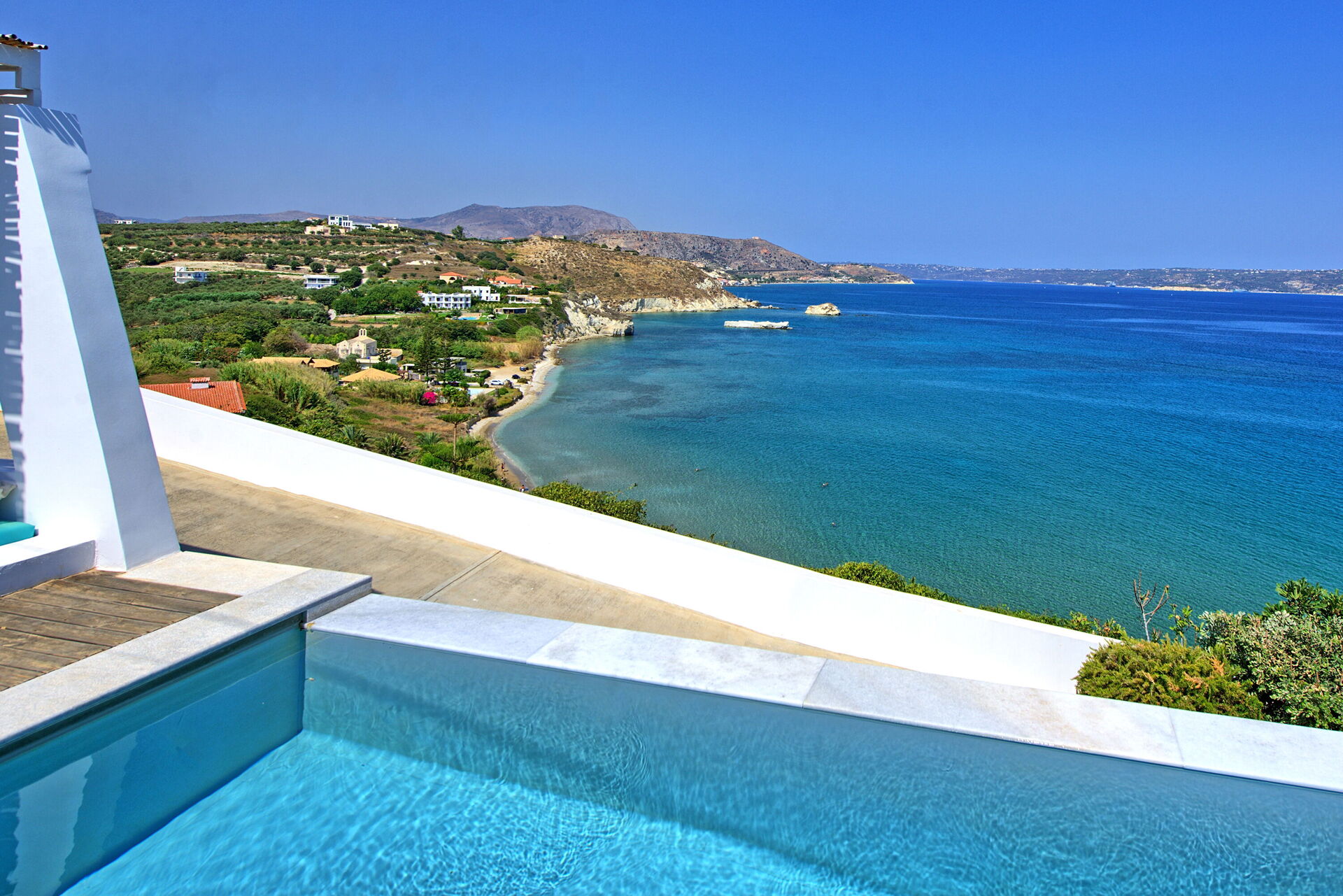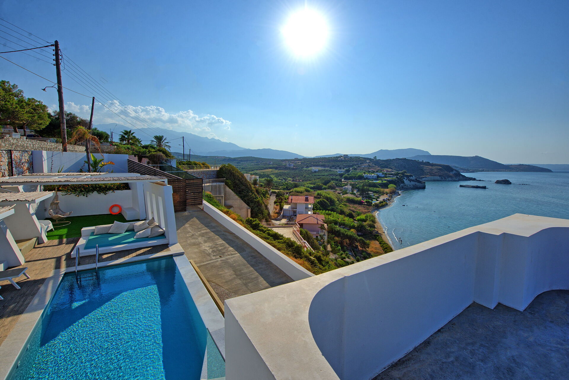 Villa Sapphire è una panoramica ed elegante villa con piscina privata e vista mare in affitto per vacanze a Creta.