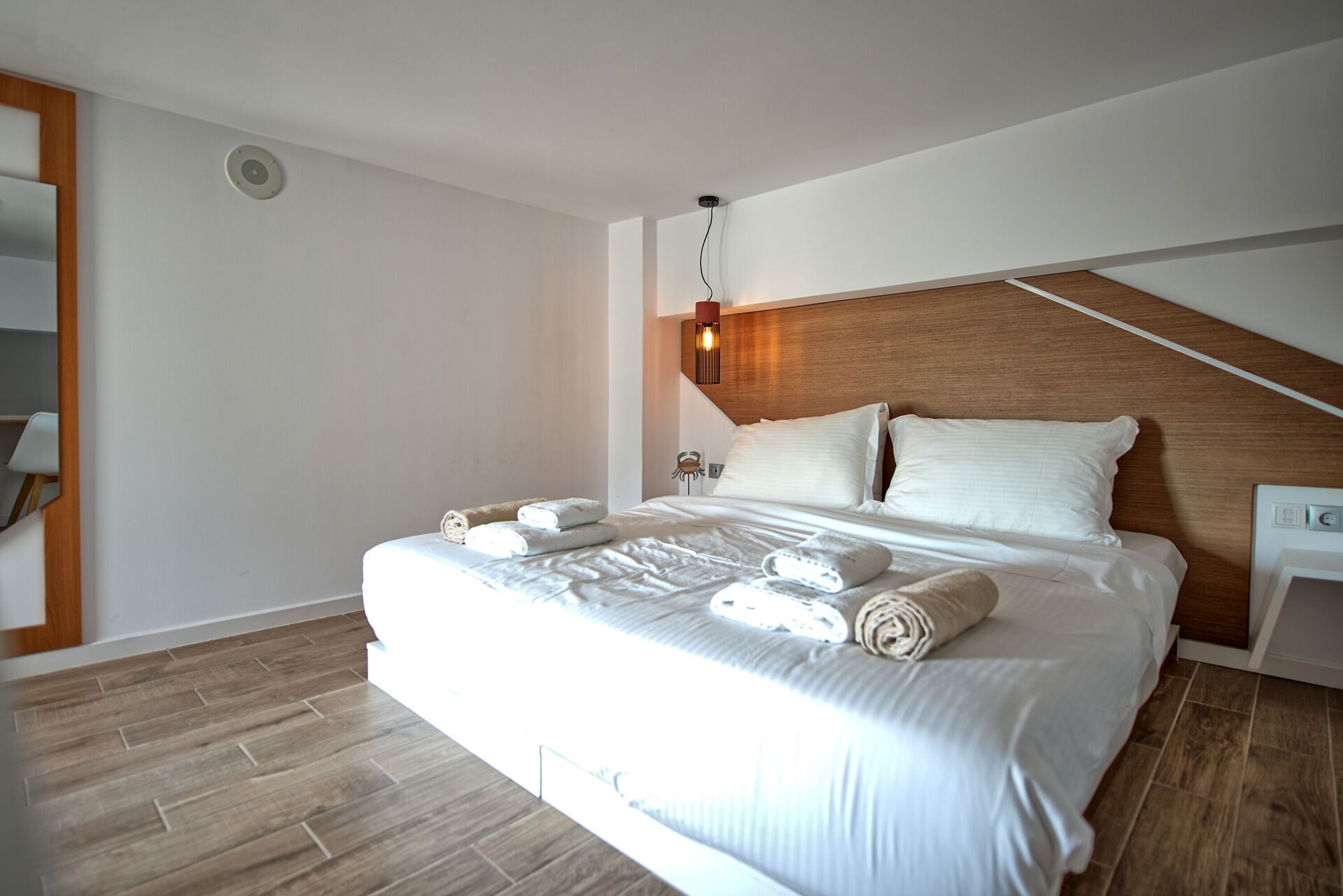 1 gradino sotto: camera matrimoniale (trasformabile su richiesta in 2 letti singoli).