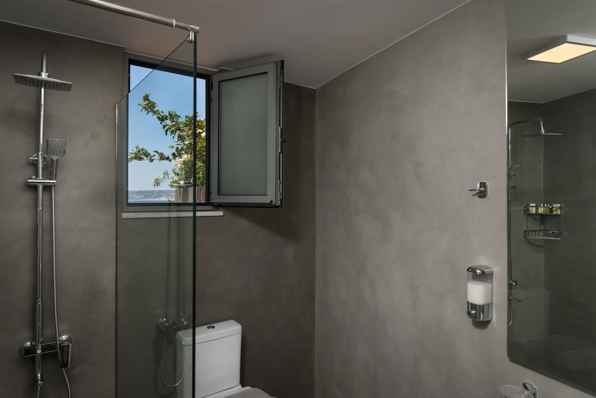 Dalla camera e dal soggiorno si accede ad una panoramica terrazza con vista sul mare.
