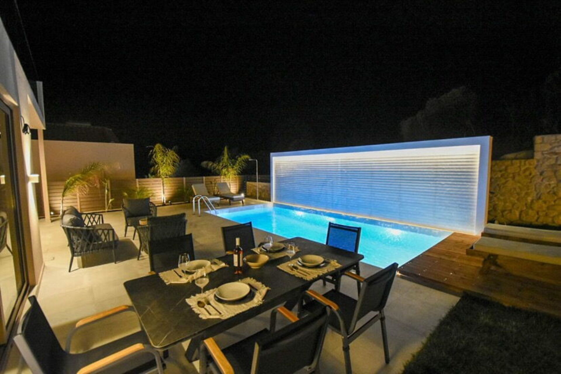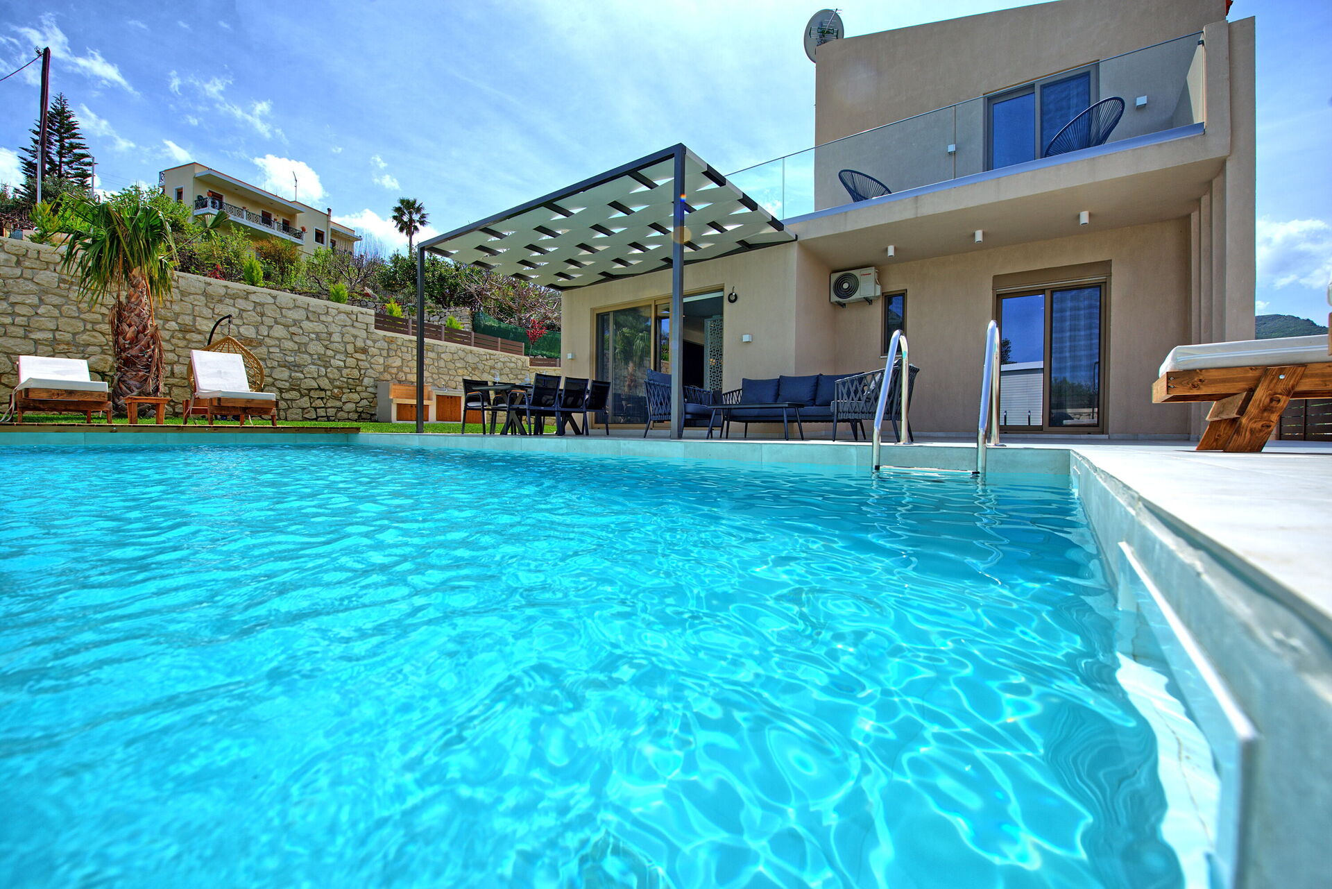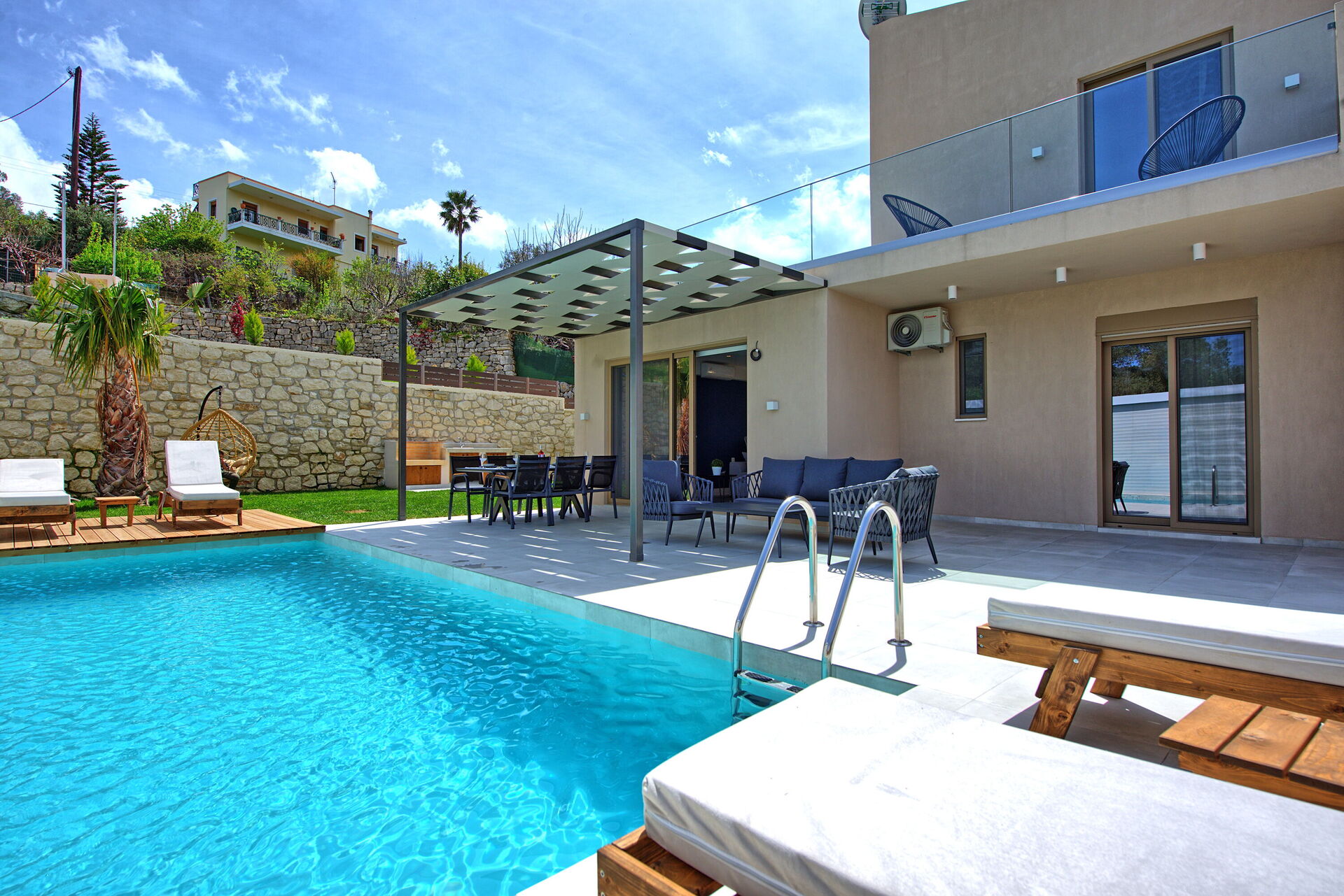 First thing - the host Maria. She was wonderful, arranged for a late arrival (1am) and cooked us dinner for when we got there (WOW), she checked in a couple of times throughout our stay and brought us a lovely orange cake that she had baked. Just about the right level of contact for us and food gifts will always win us over ;o). Onto the house - very quiet and secluded, the pictures are bang on, it’s pretty hidden from the road and down in a valley, facilities are high quality and the decoration is fresh and modern. The outside areas are lovely, BBQ space, outside dining, external sofas and seating on the roof terrace. The pool is fantastic, you are getting the picture. All in all a really great house in a good space with fab hospitality!! I’ve got to mention the pool man, he came near enough every day keeping the pool spotless and the garden neat and tidy. What a lovely chap, and when we left he also gave us a gift of chocolate croissants. Greek hospitality - just brilliant!