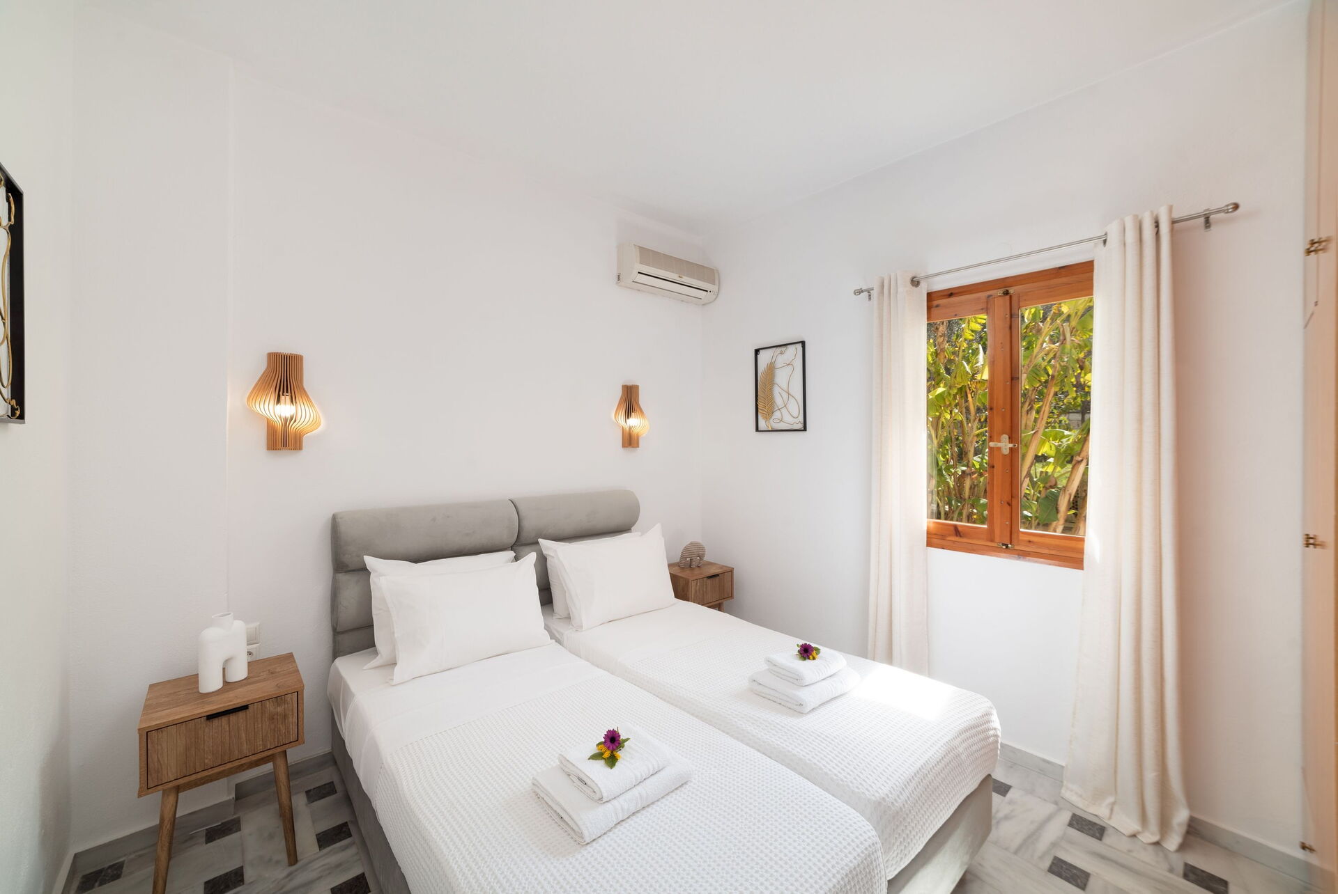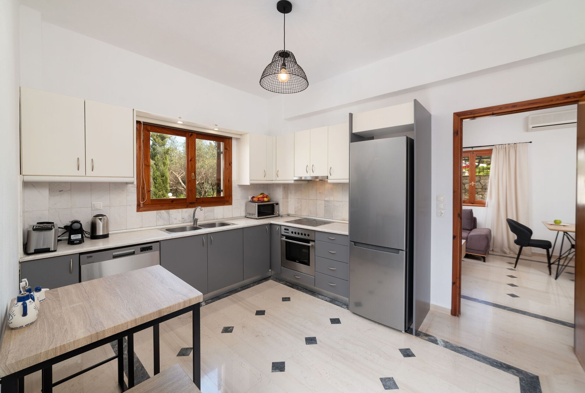Distanze: Vrisses (negozi di ogni genere) a 2,5 km, Vamos a 8 km, Georgioupoli (negozi di ogni genere e spiagge) a 8 km, Almyrida a 14 km, Rethymno a 35 km, Chania a 38 km, aeroporto a 42 km, il famoso Palazzo di Cnosso a 110 km, Heraklion a 111 km.