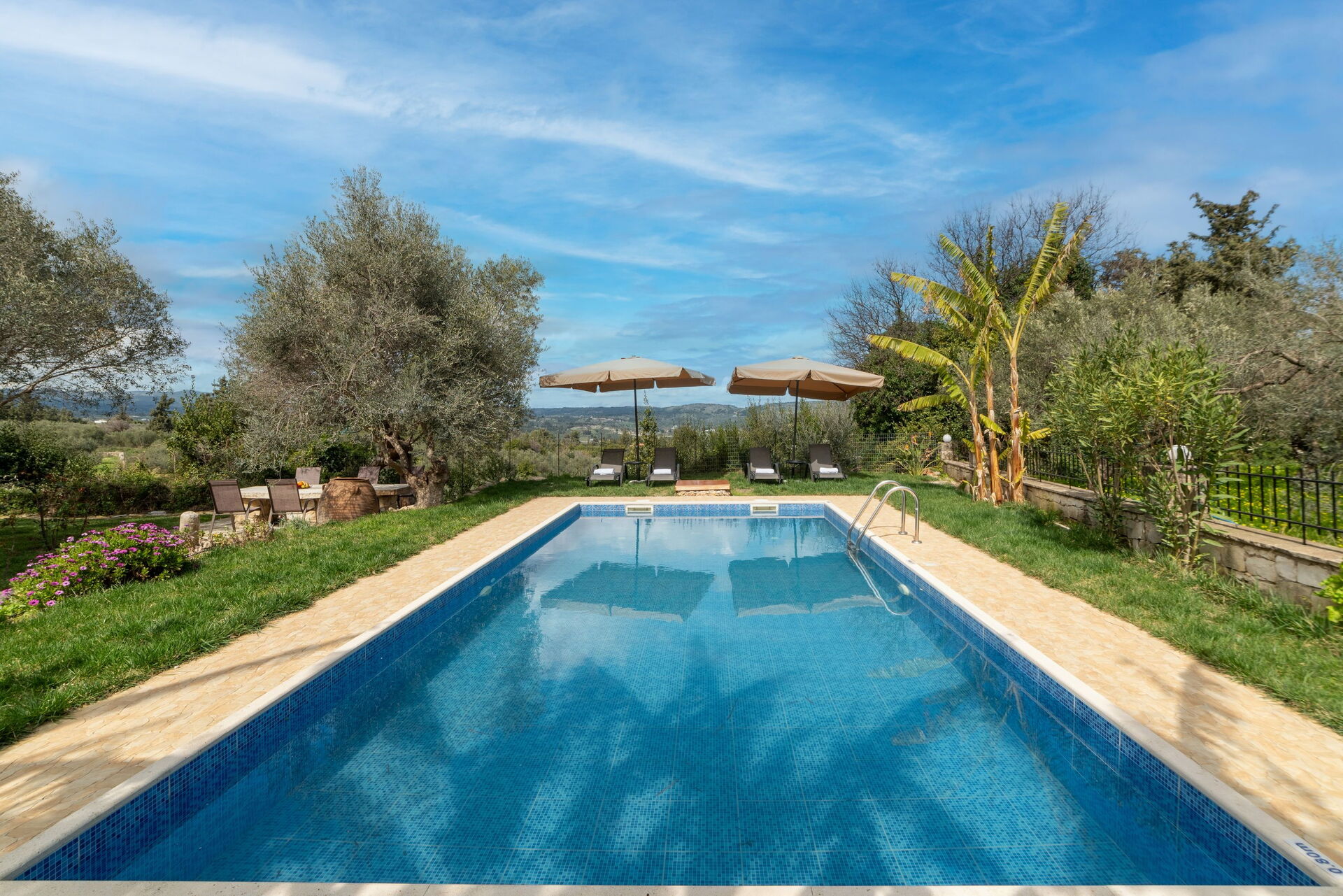 Excellent place for a family vacation. The hosts, Silvia and Jorgos, are most friendly and welcoming, they made sure we had a great time staying at their house. They came with gifts to us during our stay, like olive oil, wine, eggs and spices. The villa is situated in a beautiful garden which provides a wide range of fruits, vegetables and herbs that can be used freely. The stone grill is perfect for a nice barbecue, and the pool area is relaxing. The house is very clean and has everything you need. It is necessary to have a car to get around, to the beaches, and for shopping. We warmly recommend this place to everyone, and would like to come back some day!