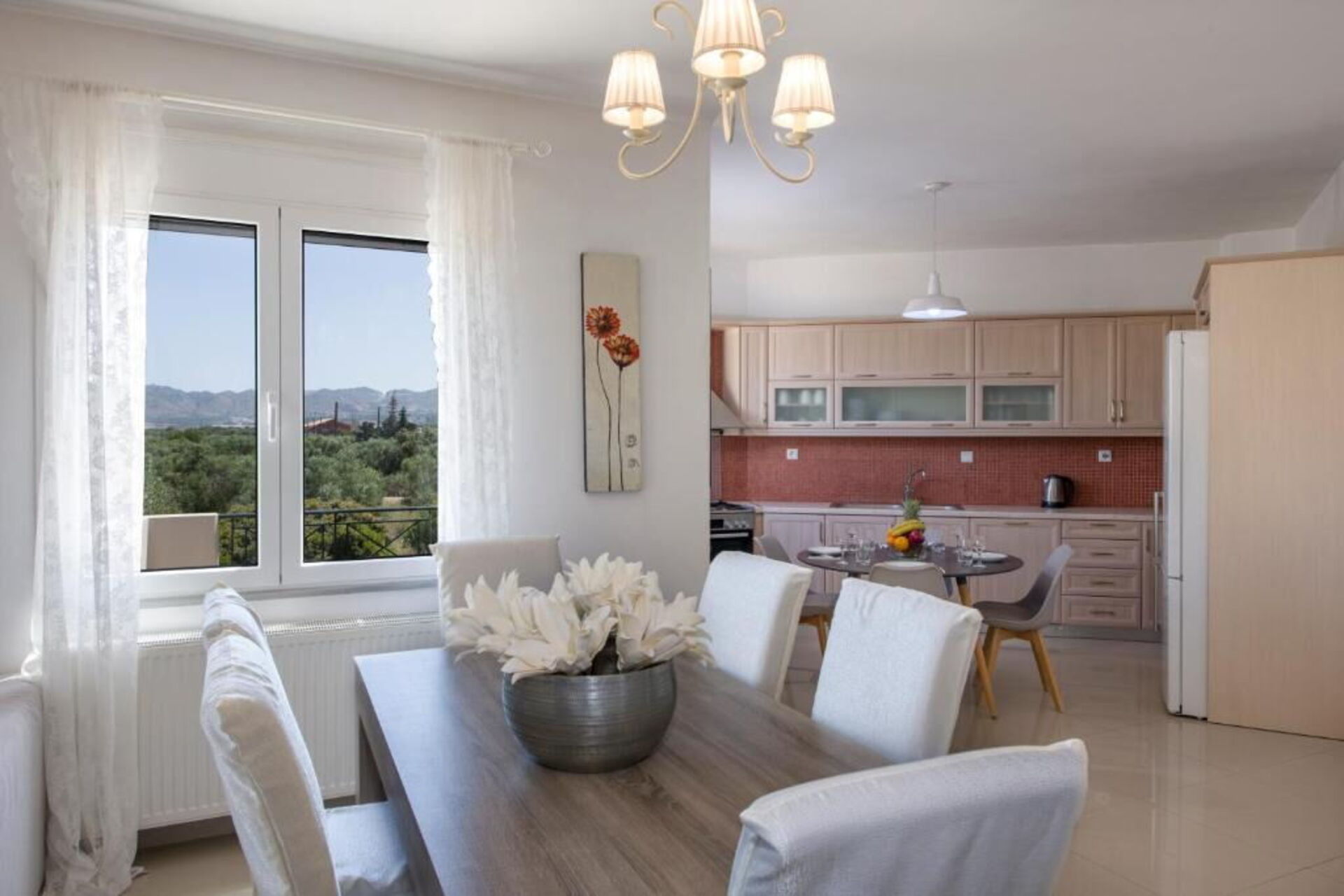 Distanze: Kounoupidiana (negozi di ogni genere) a 5 km, Kalatas (spiaggia) a 5 km, aeroporto di Chania a 3 km, Stavros (spiaggia) a 8 km, Seitan Limania (spiaggia) a 10 km, Chania (negozi, antico porto veneziano) a 12 km, Suda (porto) a 14 km, Rethimno a 67 km.