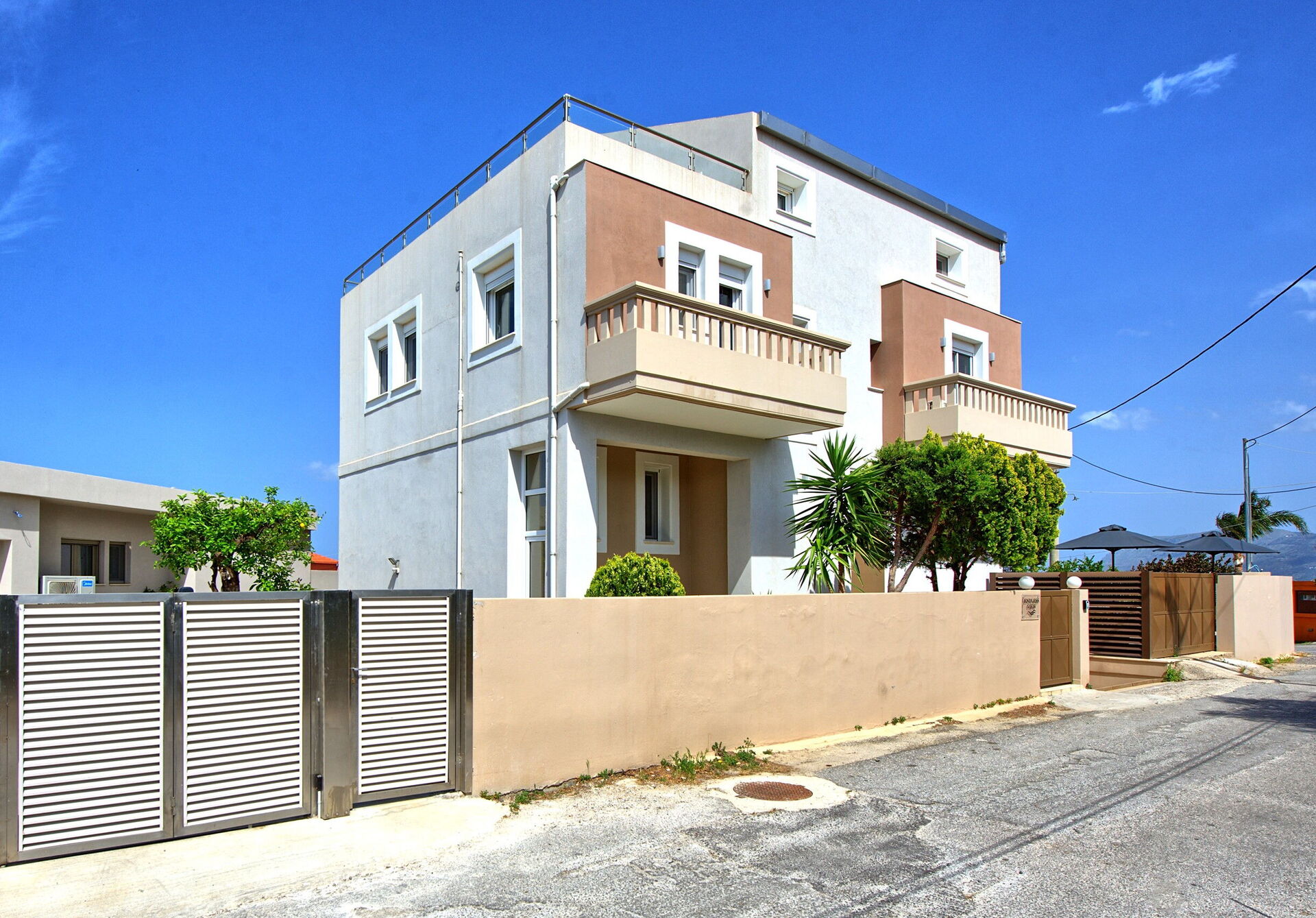 Distanze: Galatas (negozi di ogni genere) a 2 km, Agioi Apostoli (mare e spiagge) a 2,5 km, Chania a 5 km, aeroporto a 25 km, Georgiupoli a 40 km, Rethimno a 40 km, lago di Kournas a 45 km.