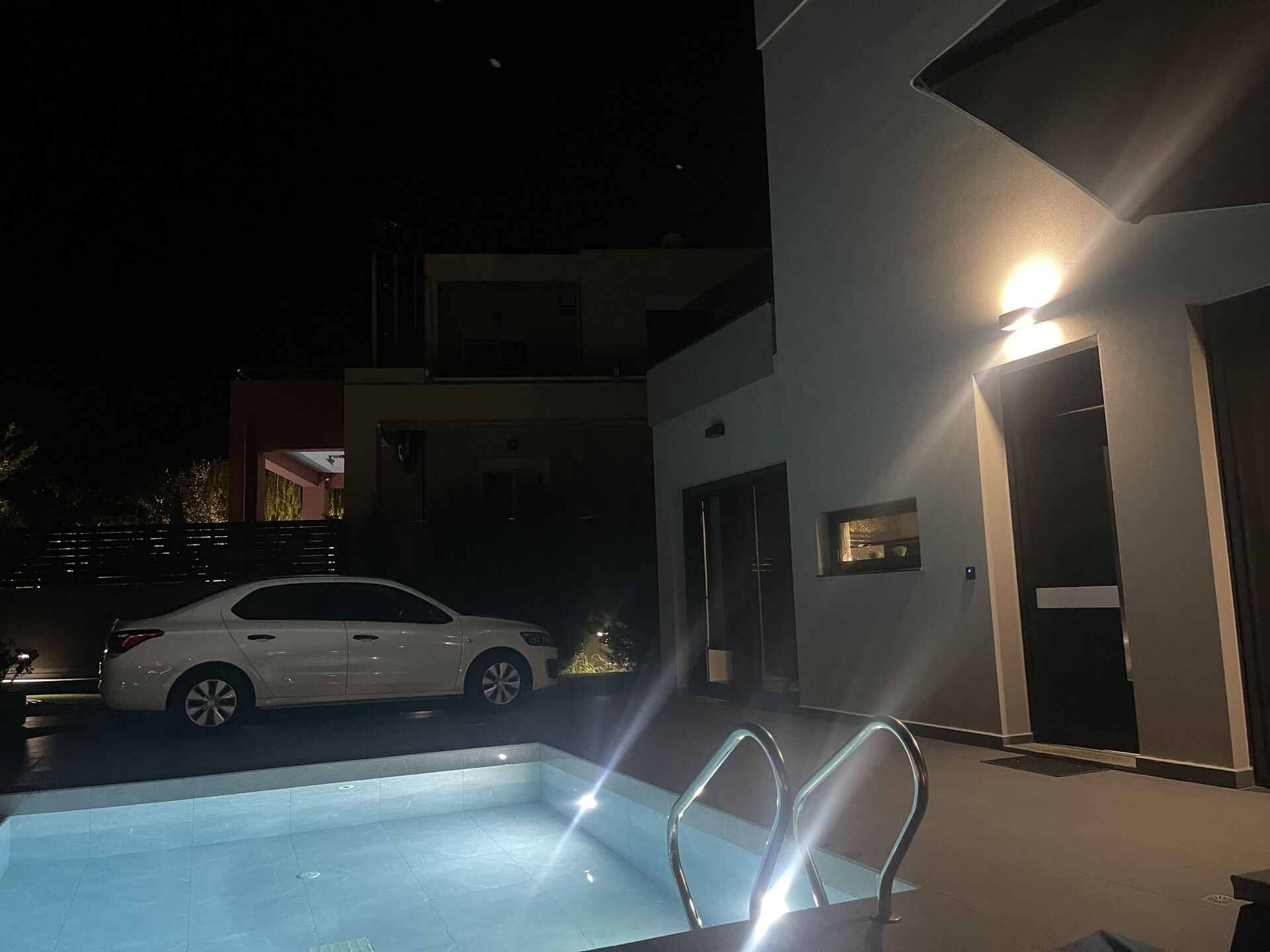 Pool and sun loungers great. Off street oarking