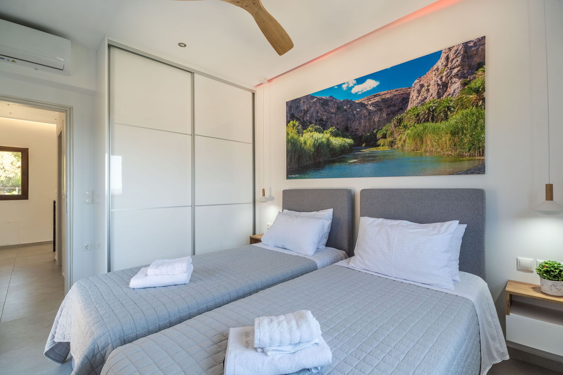 Distanze: Gavalochori (negozi) a 900 metri, Almyrida (spiaggia) a 4 km, Georgioupoli a 15 km, Souda a 20 km, Chania a 30 km, aeroporto a 35 km, Heraklion a 115 km, Palazzo di Cnosso a 120 km.