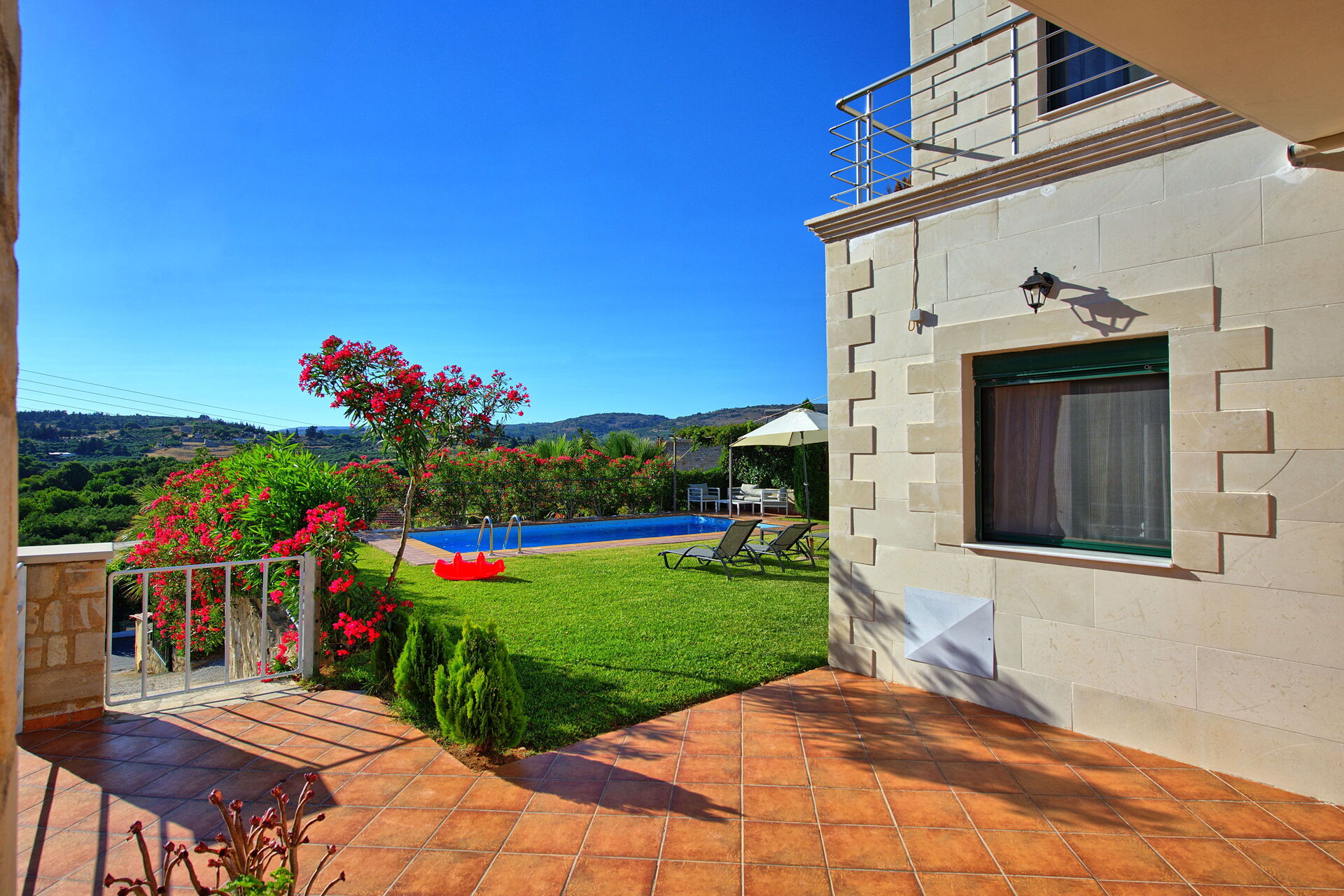 We had a great stay in this carefully maintained villa. Special thanks to hosts for great property management and generous hospitality. Villa feels clean and spacious inside and have ample outdoor space with sweeping mountain views for outdoor dining or sunbathing. Pool is well maintained and of a good size. The property is located calm area just off center of Vryses with quick access (even on foot) to tavernas, coffee shops & bakeries, and local grocery shops. It is also just midway between two top resort towns in the region - Rethimno and Chania. Both are located about a half hour drive as you can quickly get on or off the main north coast highway. Beaches are about 15 min drive away. It is also on a solid mountain road to south coast sighseeings, such as Imbros Gorge hiking or Frangokastello fort and beaches.