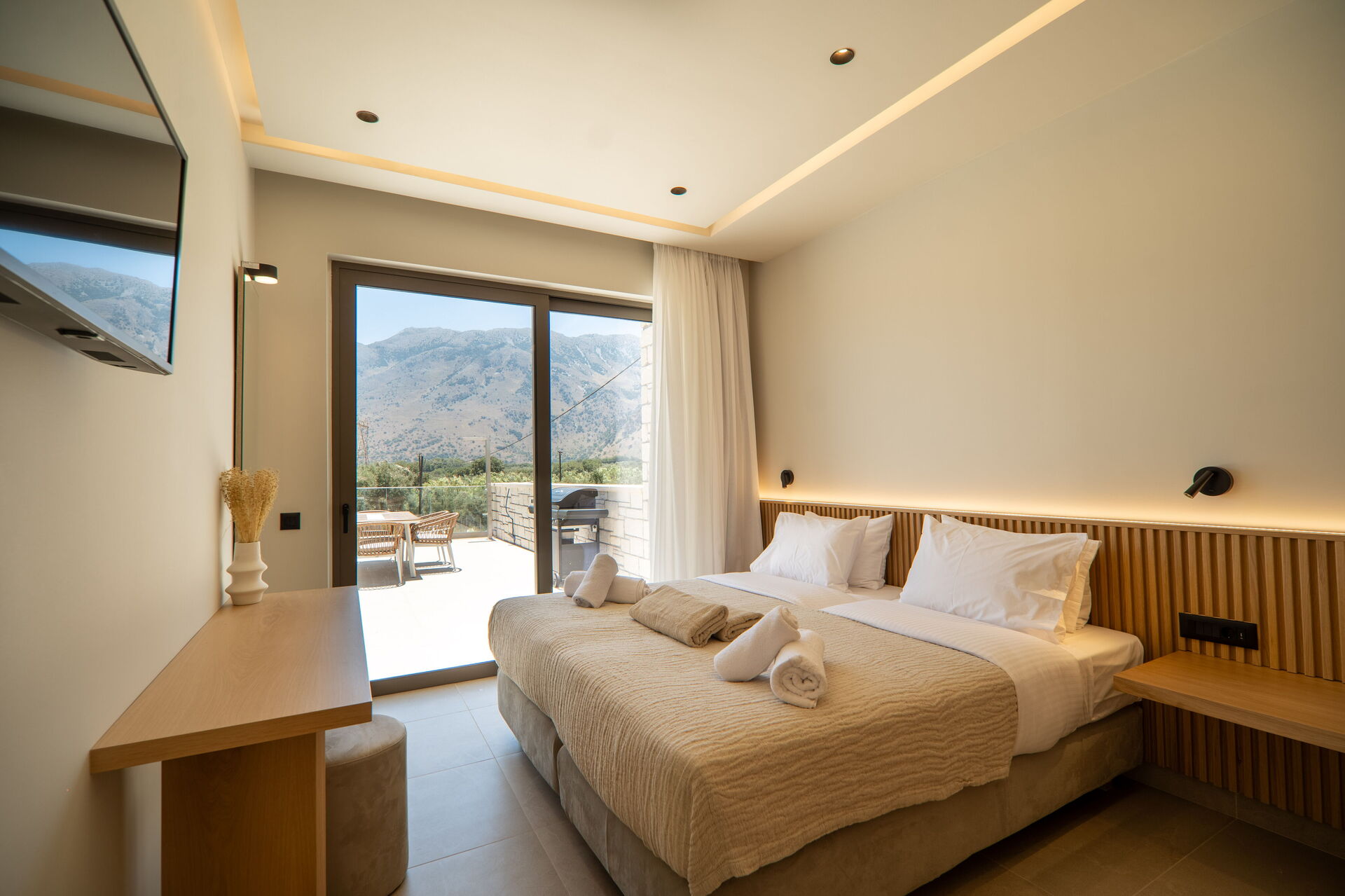 Distanze: negozi di ogni genere a 2 km; spiaggia a 3 km; Georgioupoli (spiaggia e negozi di ogni genere) a 3 km; Rethimno a 20 km; lago di Kournas a 5 km; Chania a 40 km; aeroporto di Chania a 50 km; Heraklion a 100 km; il palazzo di Cnosso a 100 km.
