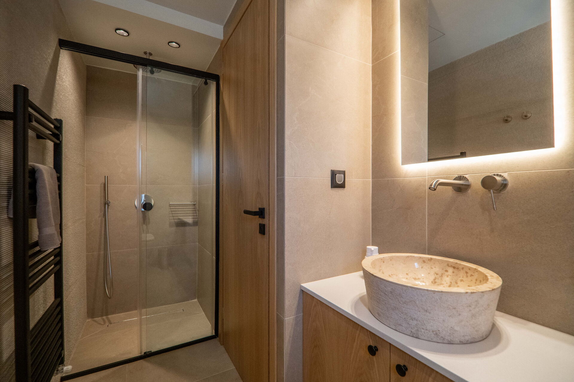 Primo piano: 2 camere matrimoniali ognuna con bagno privato con doccia.