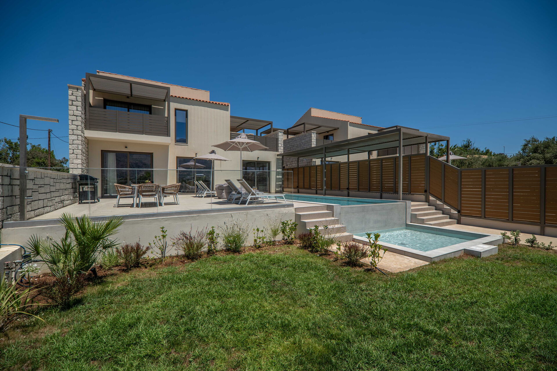 Ognuna delle piscine delle 4 ville dispone anche di una zona con acqua bassa (0,5 metri), ideale per i bambini.