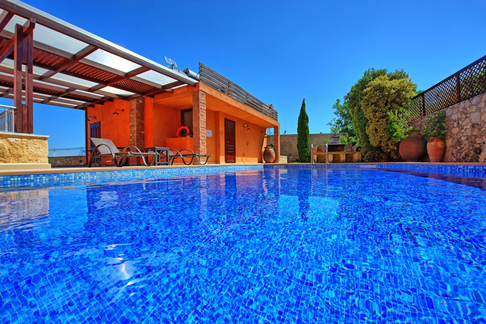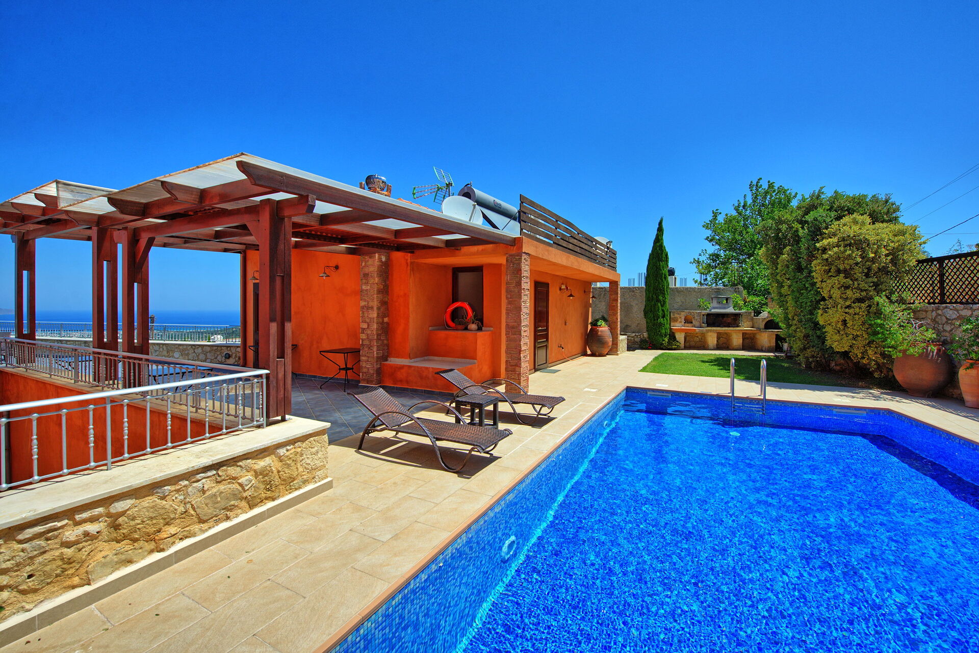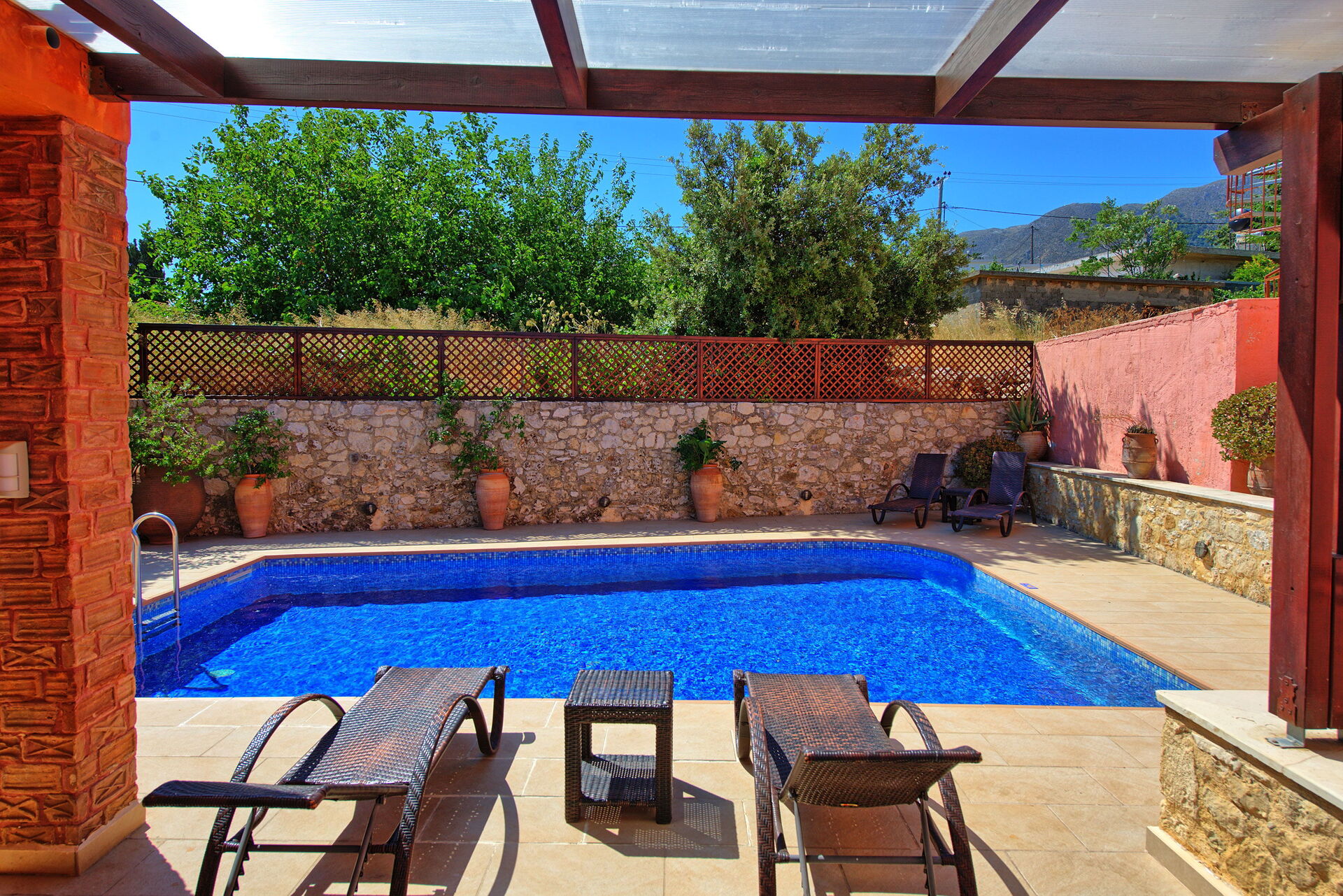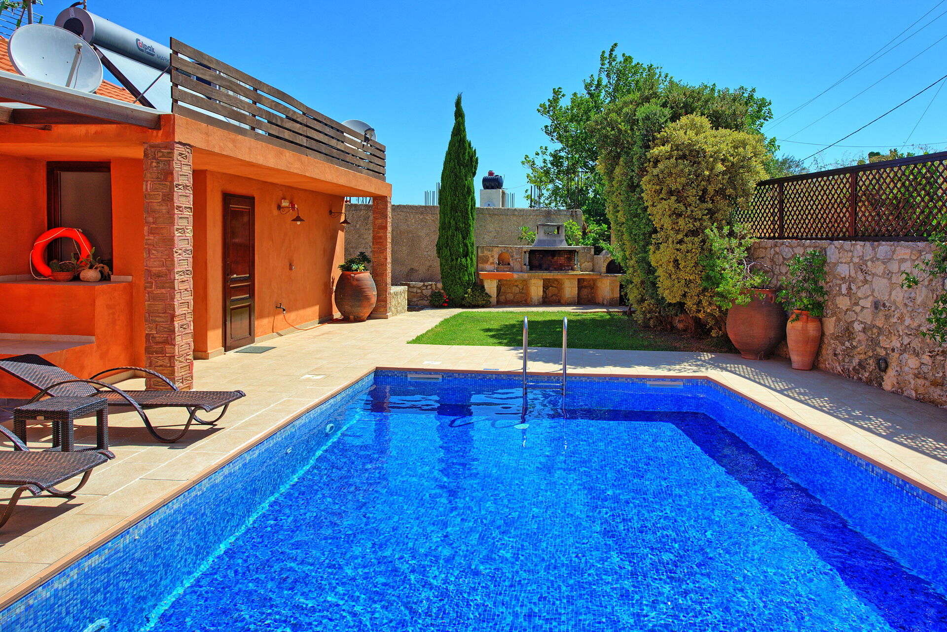 Se cercate una villa con piscina privata per le vostre vacanze a Creta allora non rimarrete delusi! Questa villa in affitto risale addirittura al 1919 ed è costruita in pietra e decorata con oggetti tradizionali locali; al tempo stesso dispone di moderni comfort che vi faranno trascorrere una piacevole vacanza in Grecia. Dispone di 4 camere e può comodamente ospitare fino a 8 persone. Esternamente ospita una bella piscina per rinfrescarsi nelle soleggiate giornate di Creta e dispone di una bella terrazza molto panoramica dove poter mangiare all’aria aperta.