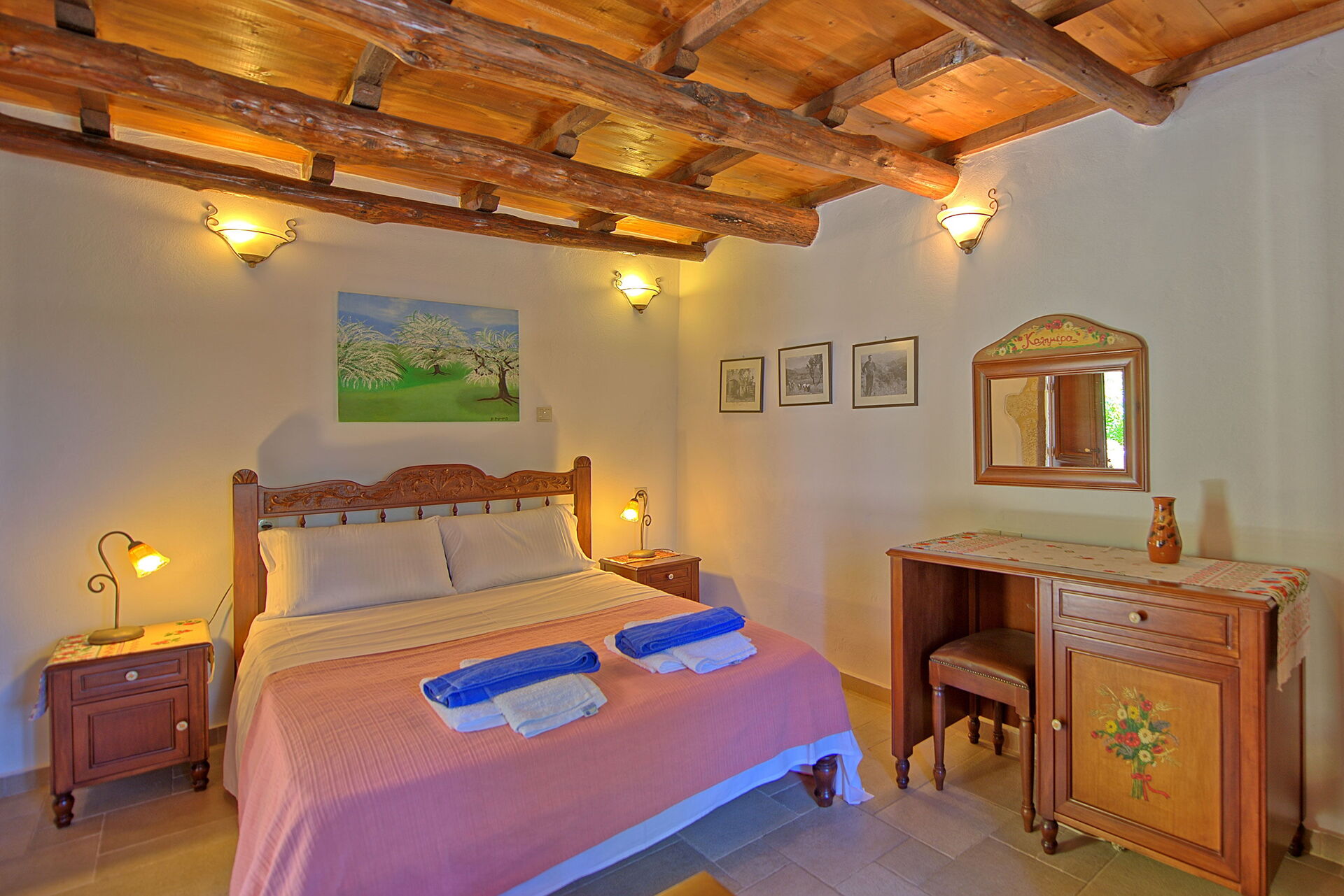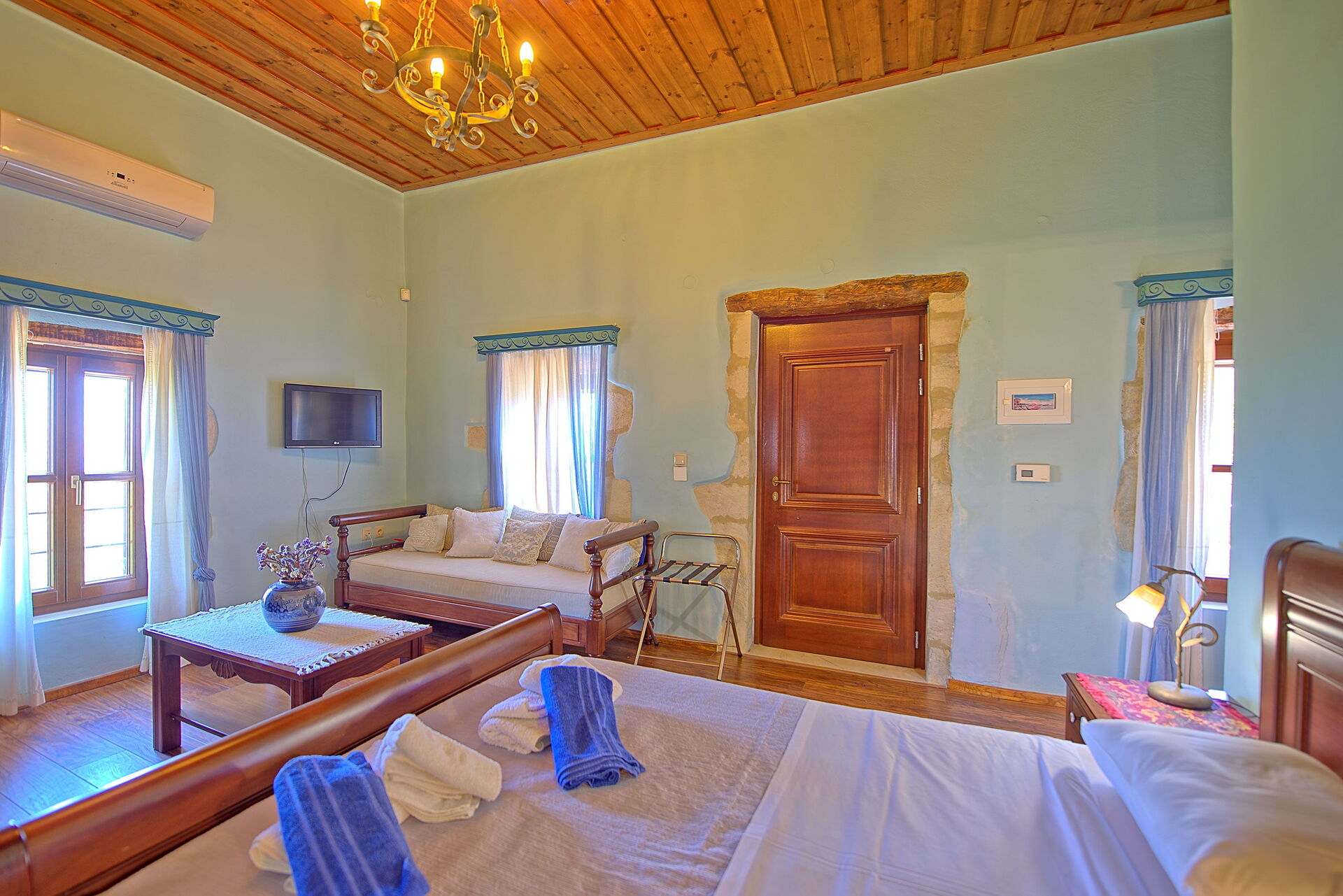 Distanze: Kastellos a 300 metri, lago di Kournas a 5 kmk, Georgioupoli a 10 km, Rethymno a 25 km Chania a 45 km.