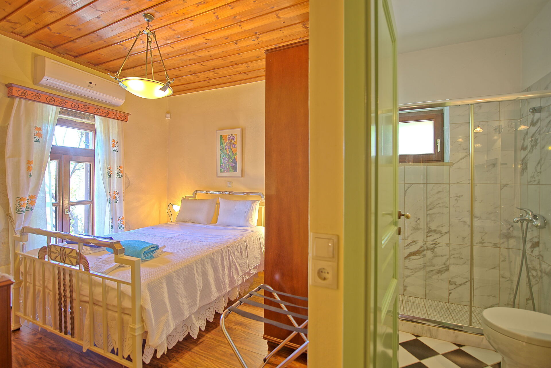 Primo piano: camera matrimoniale con bagno privato con doccia.
