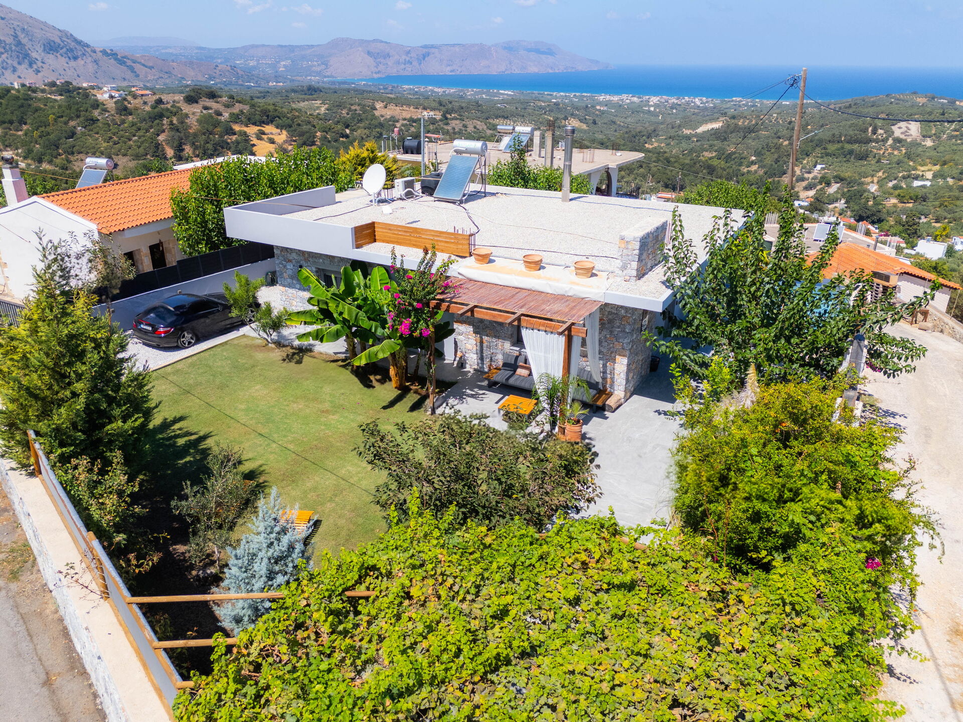 Distanze: Kournas (bar, forno e taverne) a 3 km; lago di Kournas (negozi e taverne) a 7 km, spiaggia di Peristeras (spiaggia sabbiosa) a 7,5 km, spiaggia di Episkopi (spiaggia sabbiosa) a 7,5 km, Georgioupoli (negozi di ogni genere e spiagge) a 10 km, Rethymno a 22 km, Almyrida a 26 km, Chania a 48 km, aeroporto a 54.50 km, Heraklion a 103 km, il famoso Palazzo di Cnosso a 104 km.