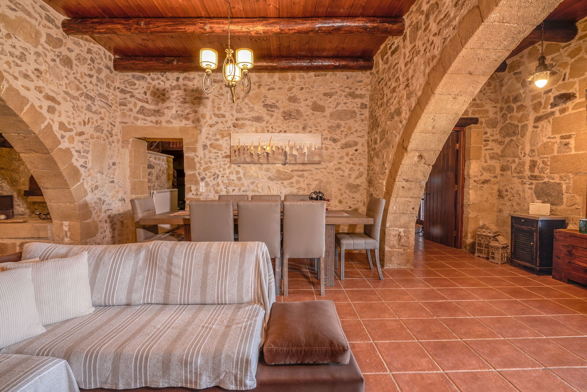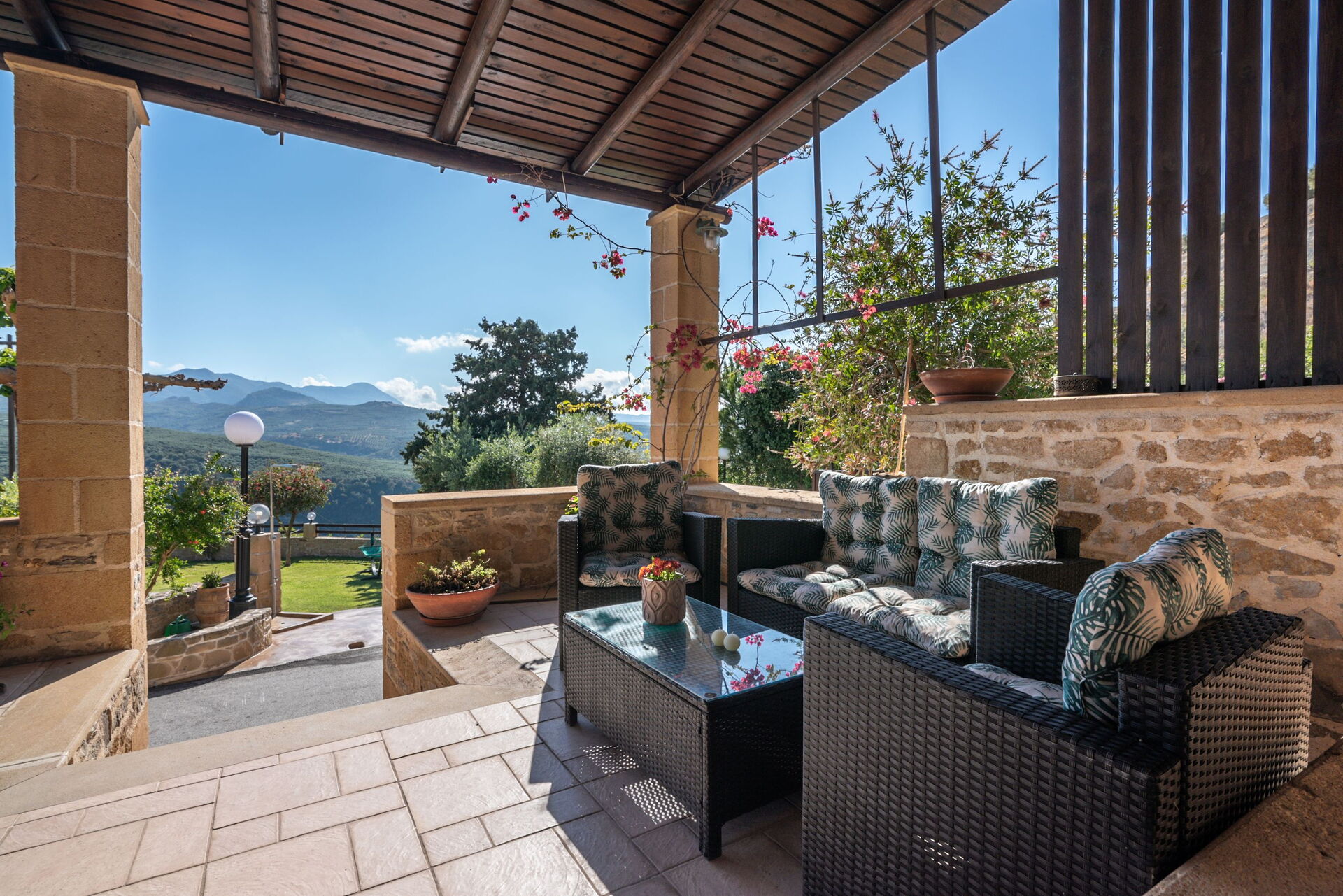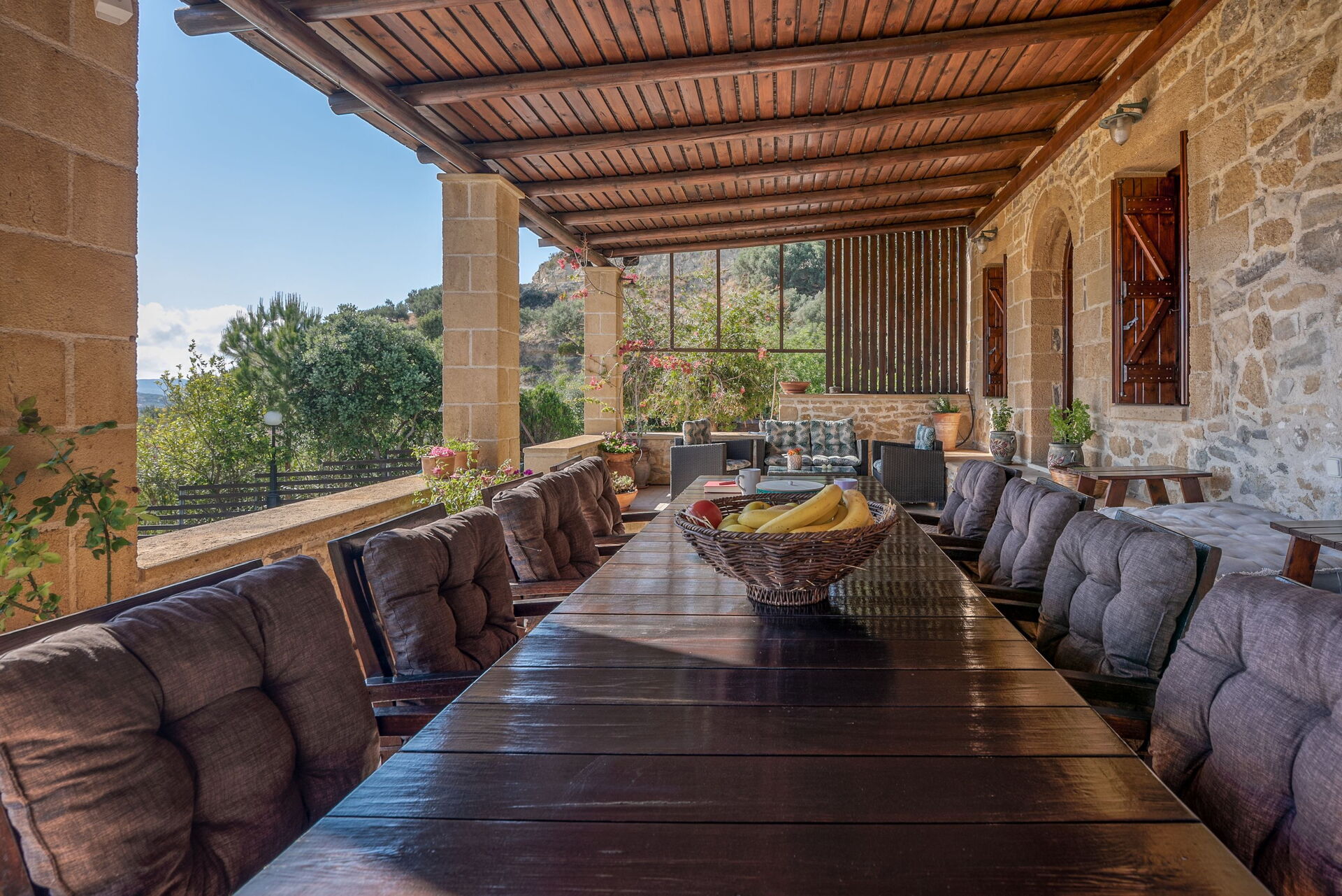 Questa proprietà è arredata con gusto e dotata di moderni comfort pur rispettando le originali caratteristiche architettoniche e facendo largo uso di pietre locali e tradizionali elementi cretesi.