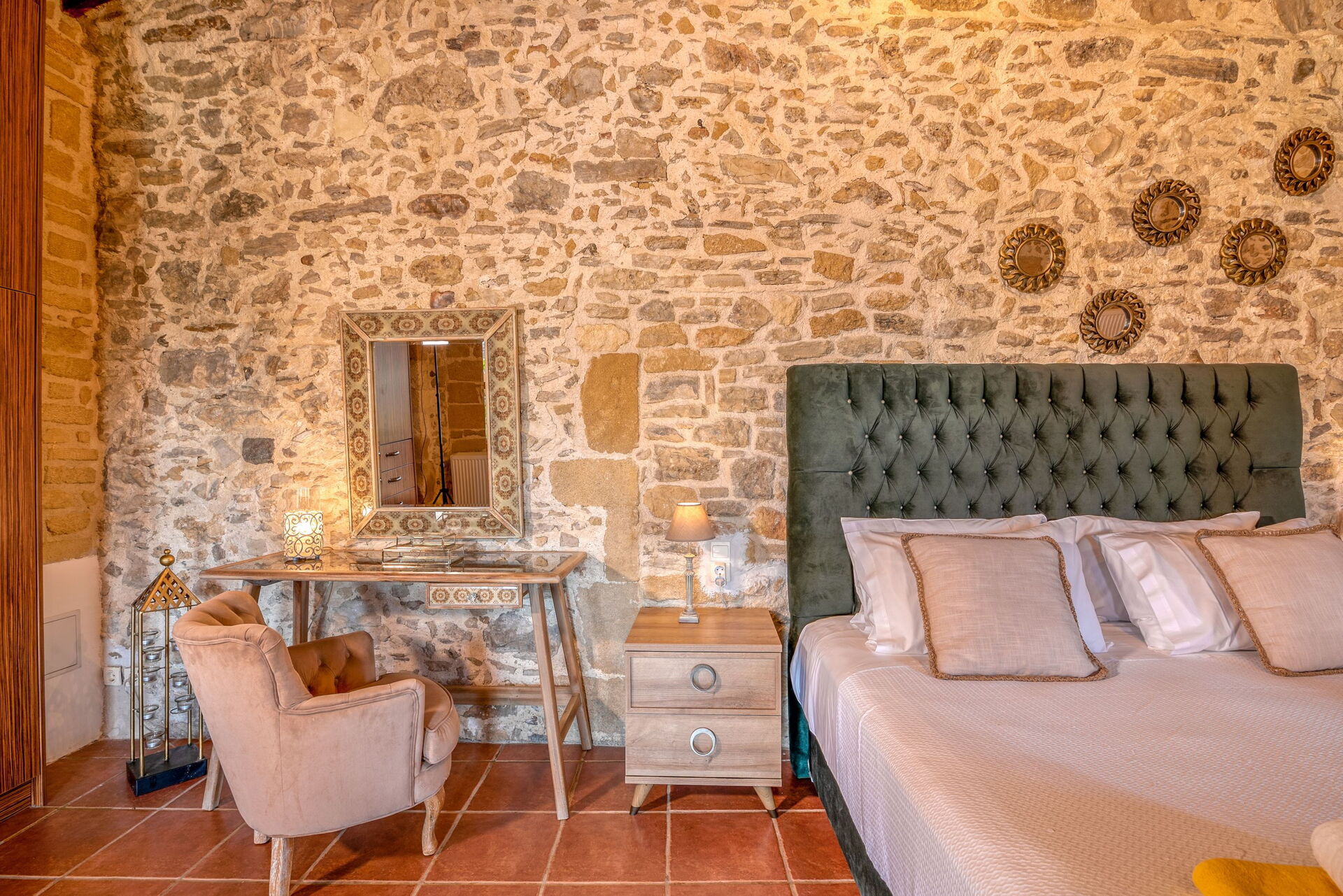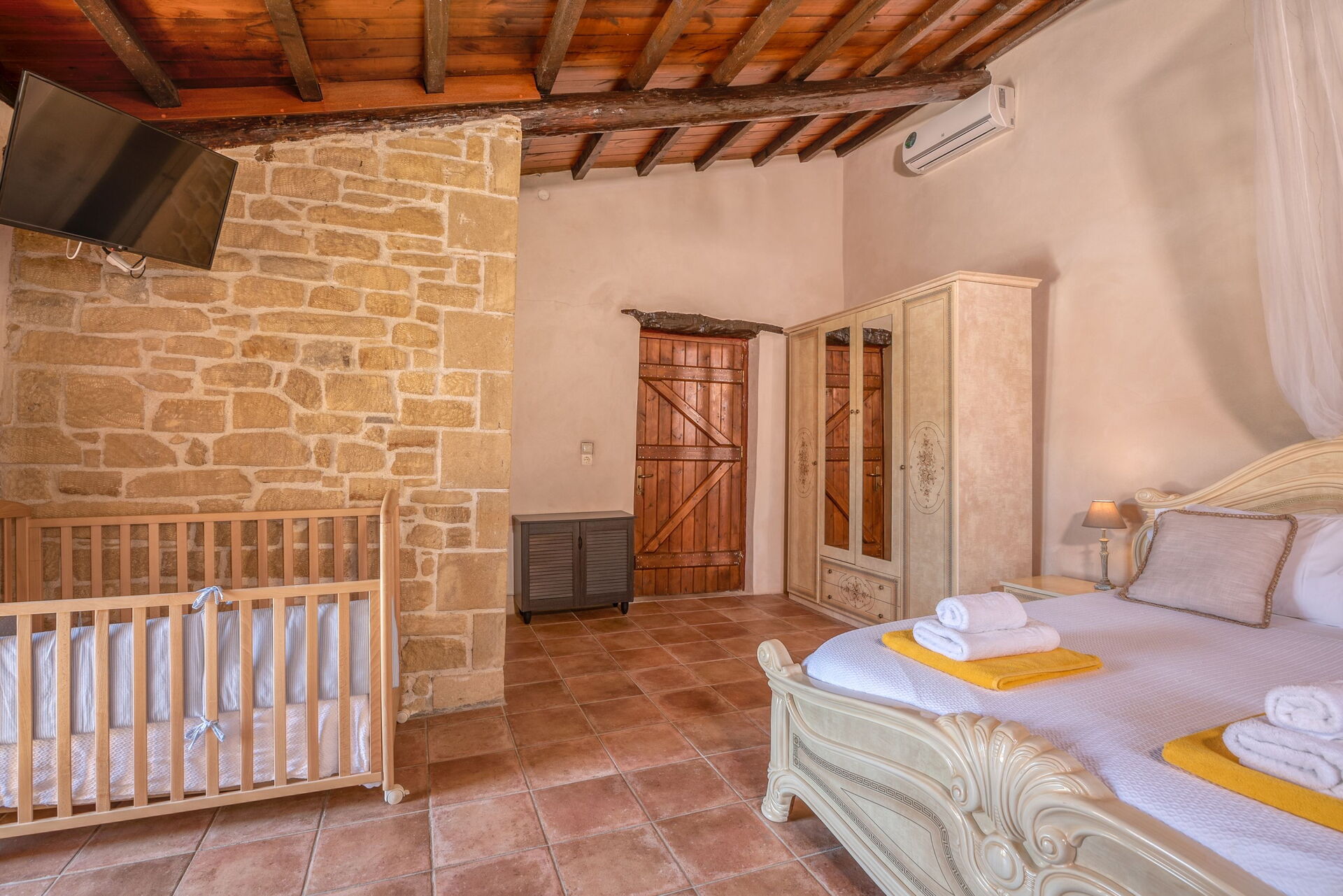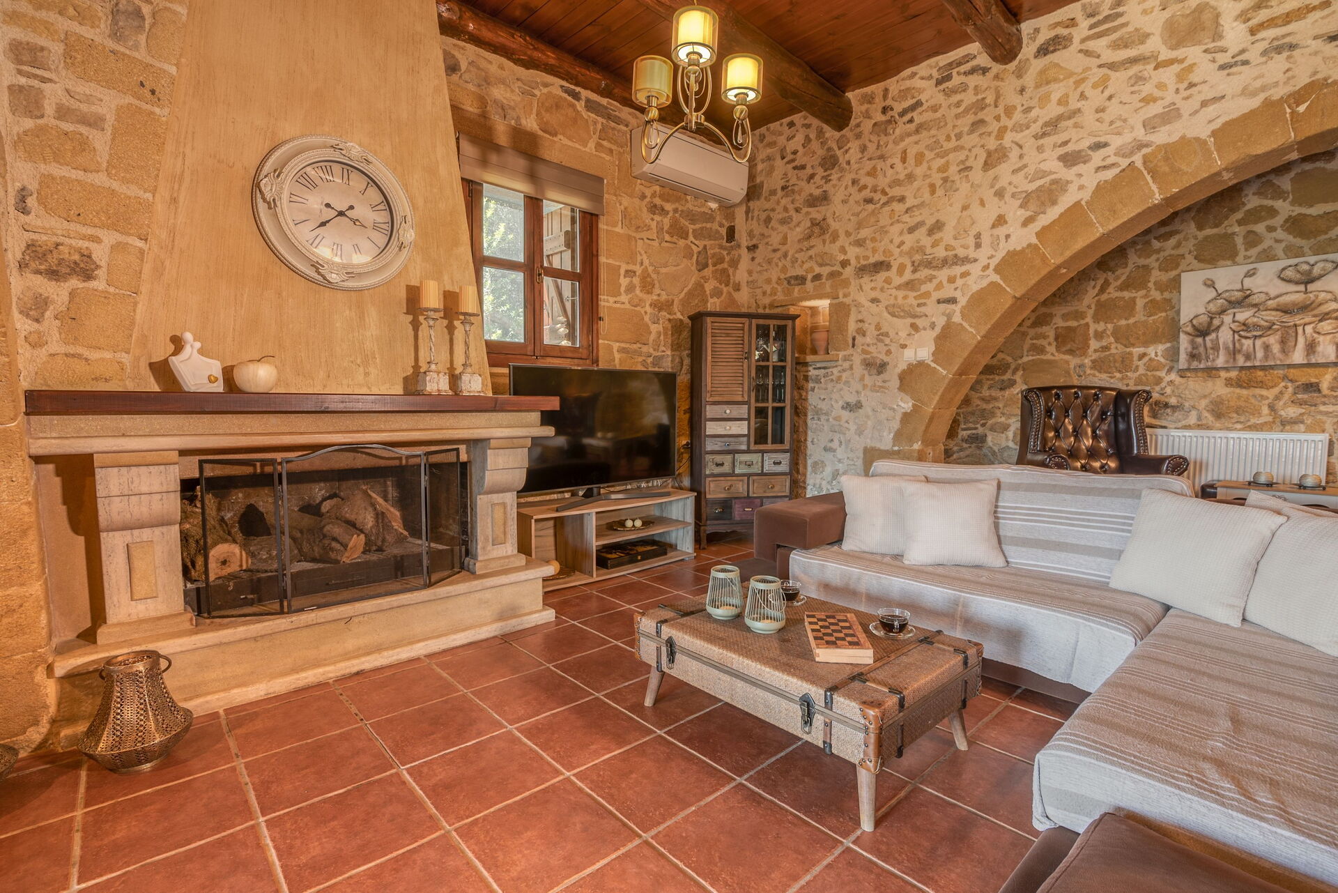 Questa proprietà è arredata con gusto e dotata di moderni comfort pur rispettando le originali caratteristiche architettoniche e facendo largo uso di pietre locali e tradizionali elementi cretesi.