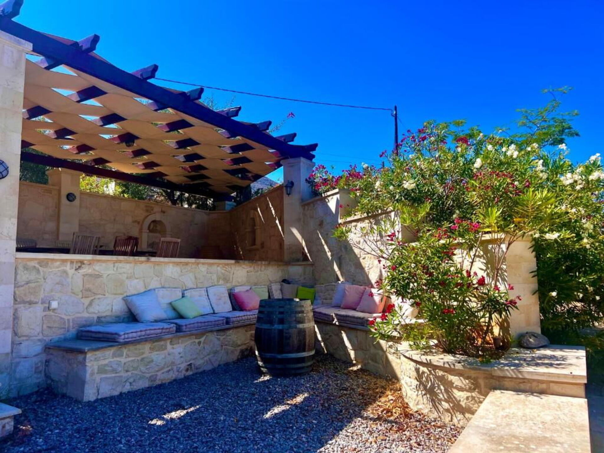 La posizione centrale di questa villa permette agli ospiti di raggiungere facilmente in auto le zone più famose di Creta e di poter esplorare l'intera isola: non mancate di visitare le città di Chania e Rethimno, i caratteristici villaggi sparsi qua e là, il lago di Kournas e il bellissimo mare che potete già trovare nelle vicine cittadine di Almyrida e Georgioupolis.