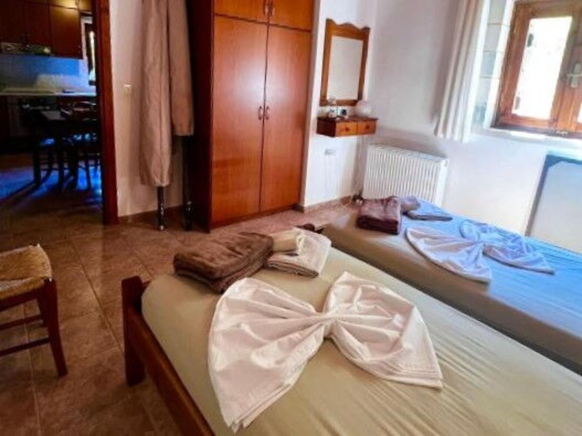 Grazie alle sue 3 camere può comodamente ospitare 6 persone in un ambiente molto confortevole e perfetto per trascorrere una vacanza in Grecia in compagnia di amici o familiari.