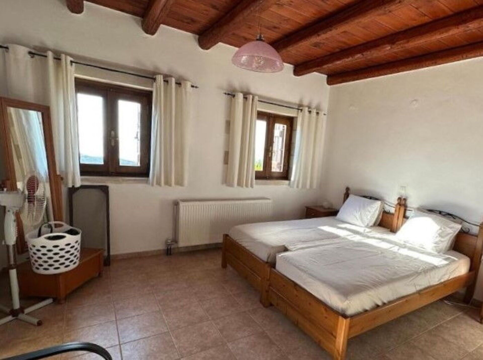 Questa confortevole villa in affitto per vacanze a Creta si sviluppa su due piani e dispone di un panoramico spazio esterno vista mare dove è inserita una bella piscina per rinfrescarsi nelle soleggiate giornate tipiche di questa bella isola nel Mediterraneo. Dalla piscina potrete ammirare fantastici tramonti e mangiare all'aria aperta nella grande zona esterna attrezzata con barbecue e tavolo con sedie. Gli interni sono confortevoli e arredati in stile rustico.