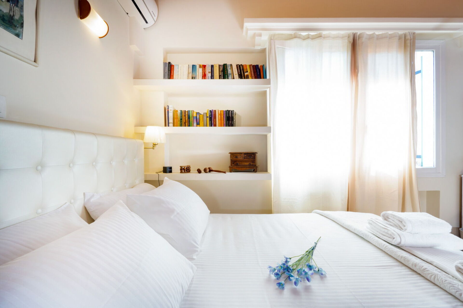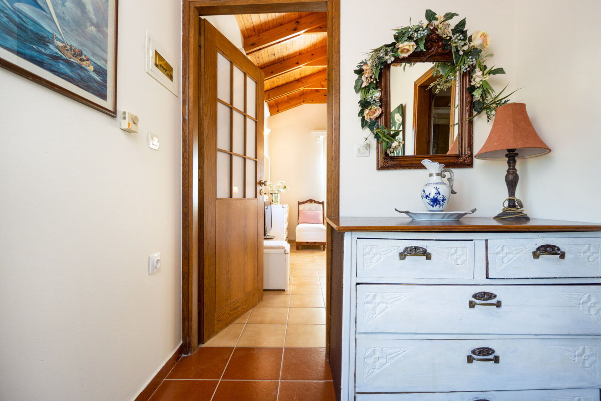 Primo piano: camera matrimoniale (aria condizionata), bagno con vasca e attacco doccia, camera con 2 letti singoli (aria condizionata), camera matrimoniale (aria condizionata).