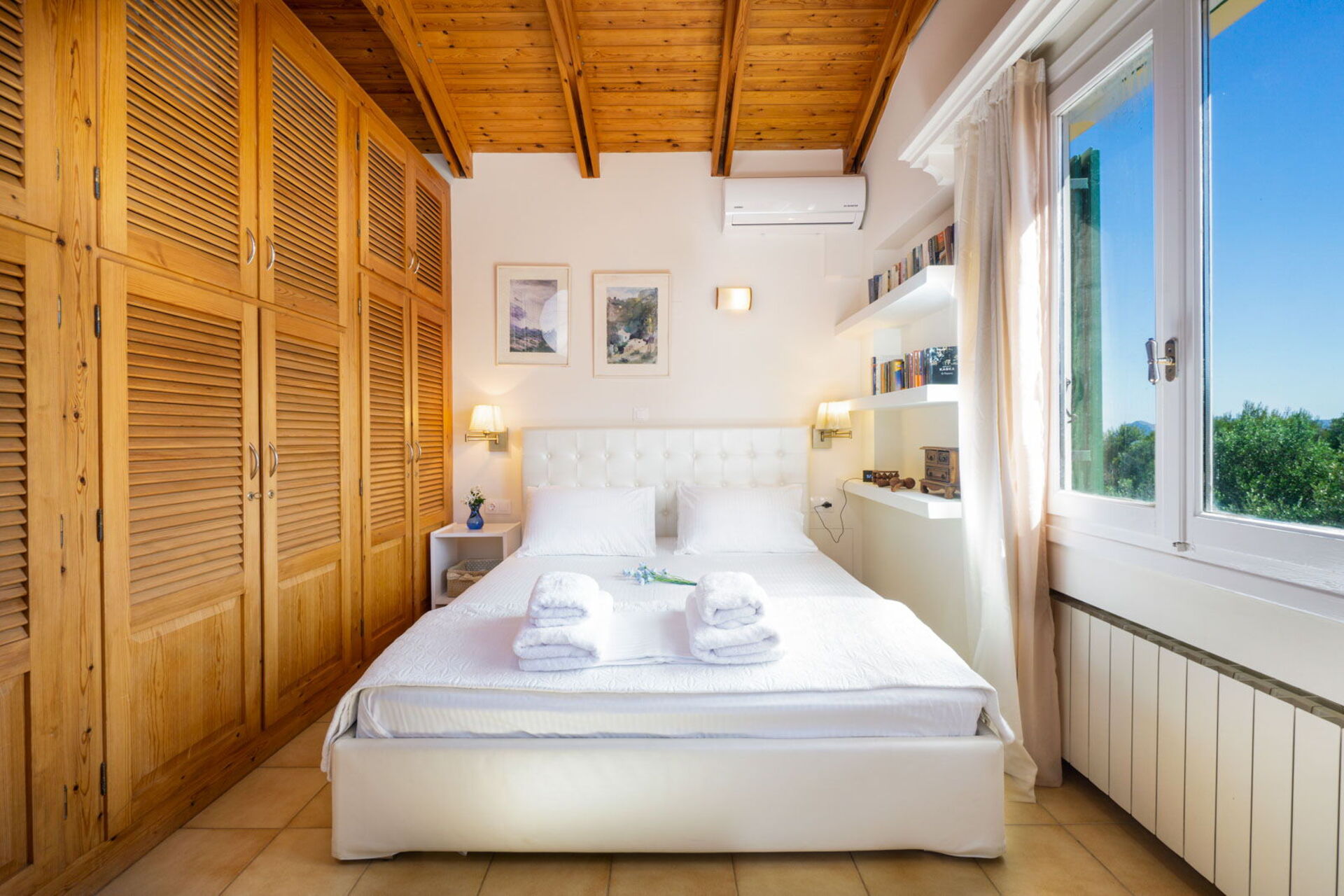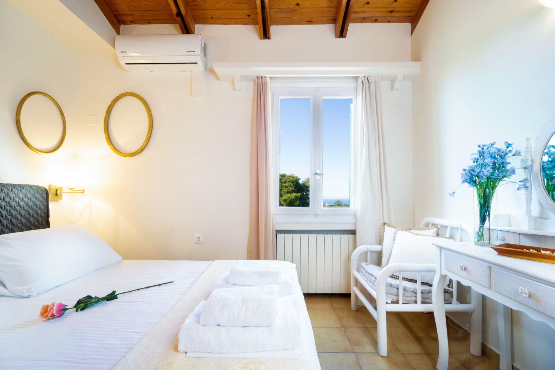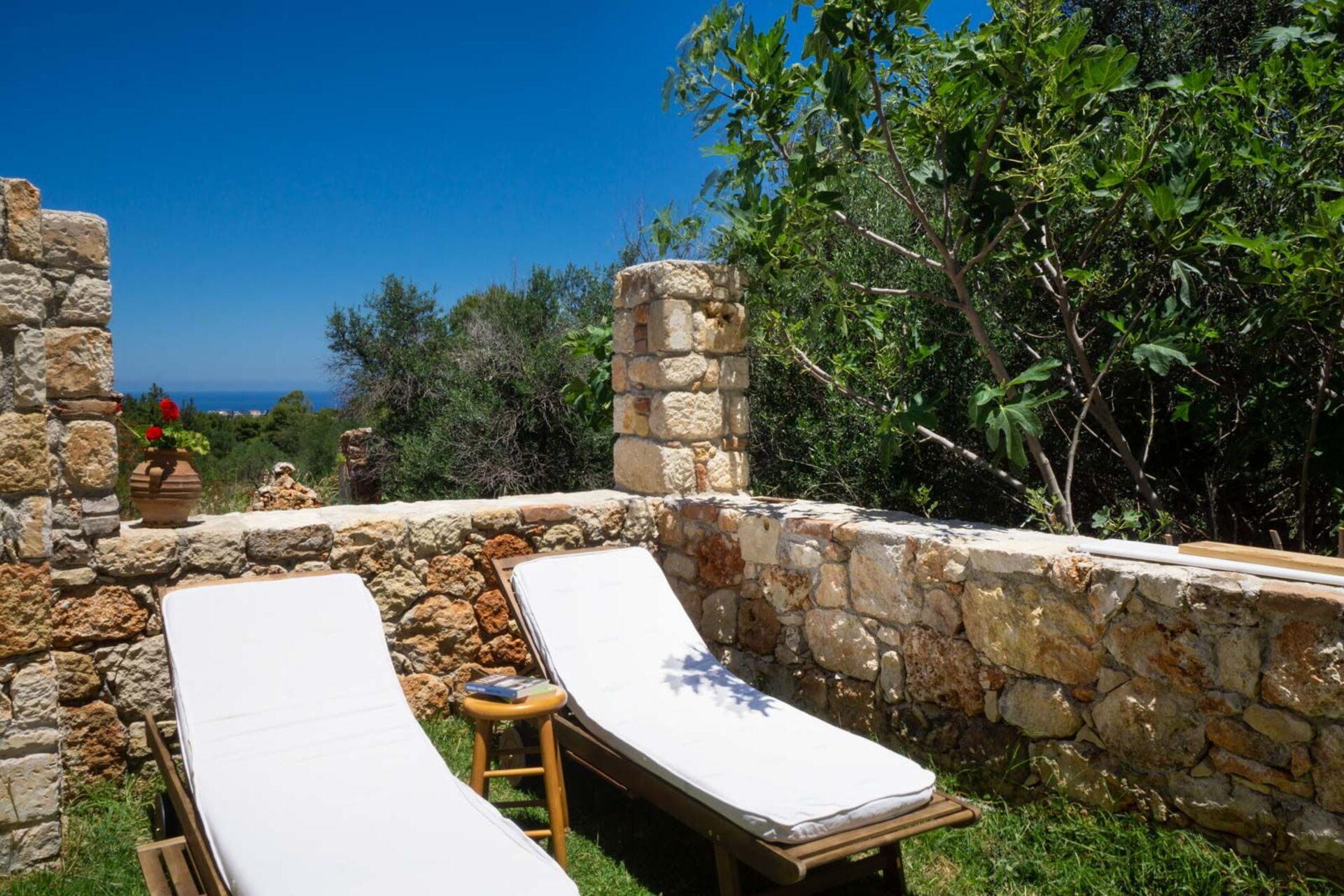 Il piano superiore della villa (dove sono le 3 camere) offre una vista panoramica sulle Montagne Bianche (a sud), sul vecchio porto di Chanià (a ovest) e sul monte Stavros (a nord/nord-est).