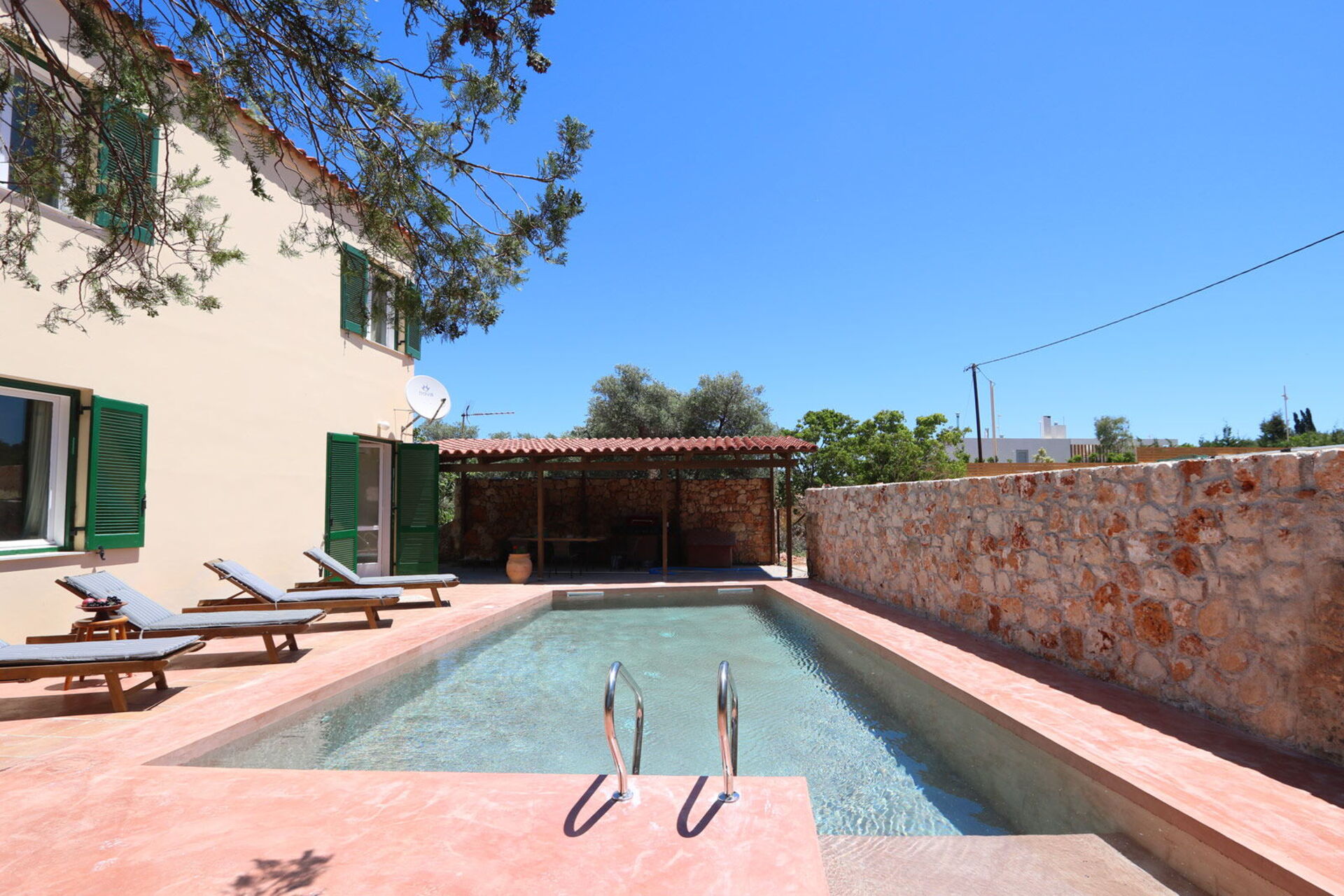 Pool was fantastic, as were the outside dining areas, comfortable bedrooms with lovely linens and towels. Christina our host was more than helpful. Peaceful and private.