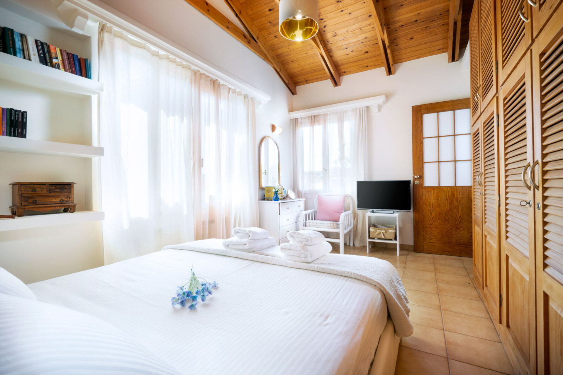 Extremely well equipped spacious traditional villa. Xristina, the owner lives next door and was so very kind. She made us tzatziki one day and a delicious local potato dish another day. The property can be a little hard to find but it is a tiny road next to a large Chinese market. You are soon on top and in the countryside with the sound of cockerels crowing each morning. We had a lovely relaxing week. Thank you.