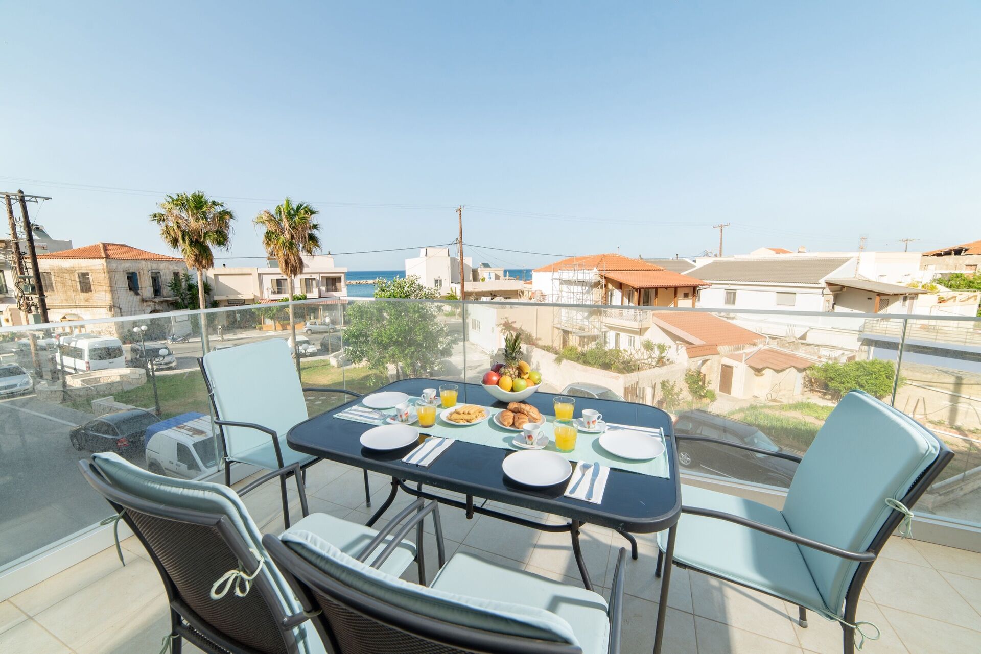 The apartment was lovely. It was very well decorated, spacious, spotlessly clean and had everything you could possibly want for an enjoyable holiday including a big balcony. The location was excellent, a very short stroll to the sea and to the restaurants along the sea front. The bus stop was close to the apartment too where buses run to Chania every 30 minutes. We would definitely recommend this apartment.