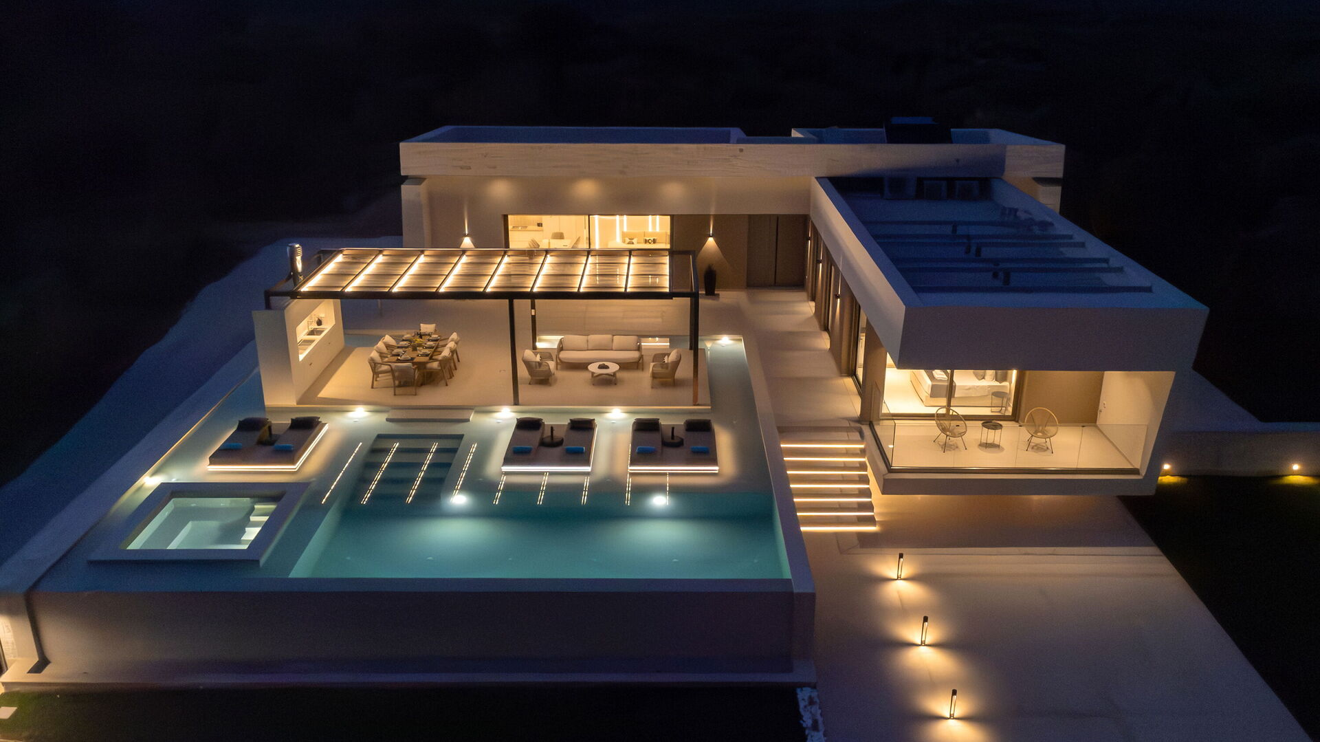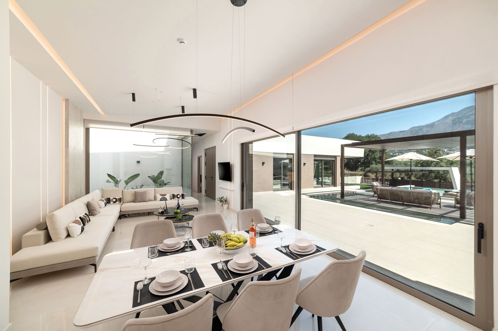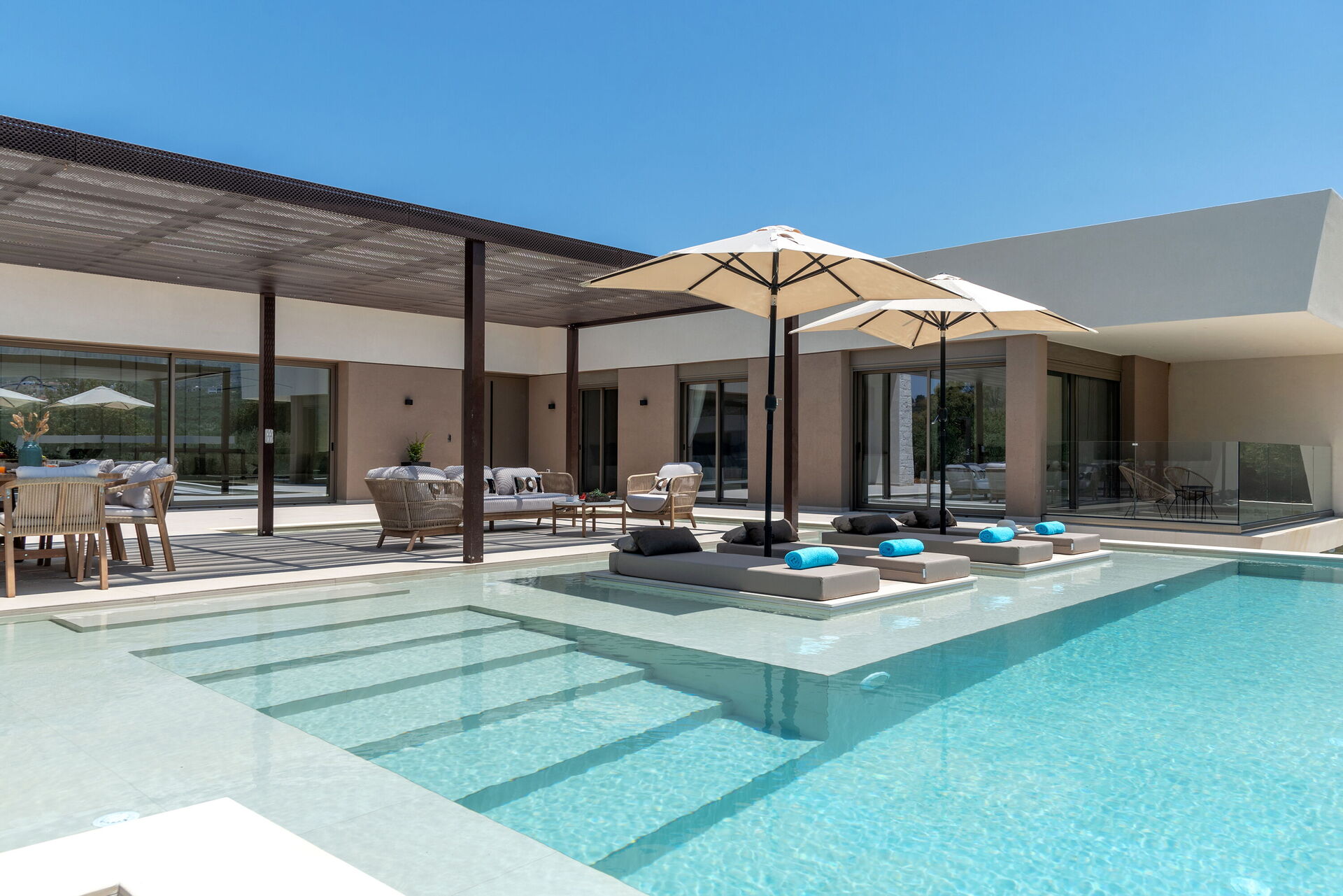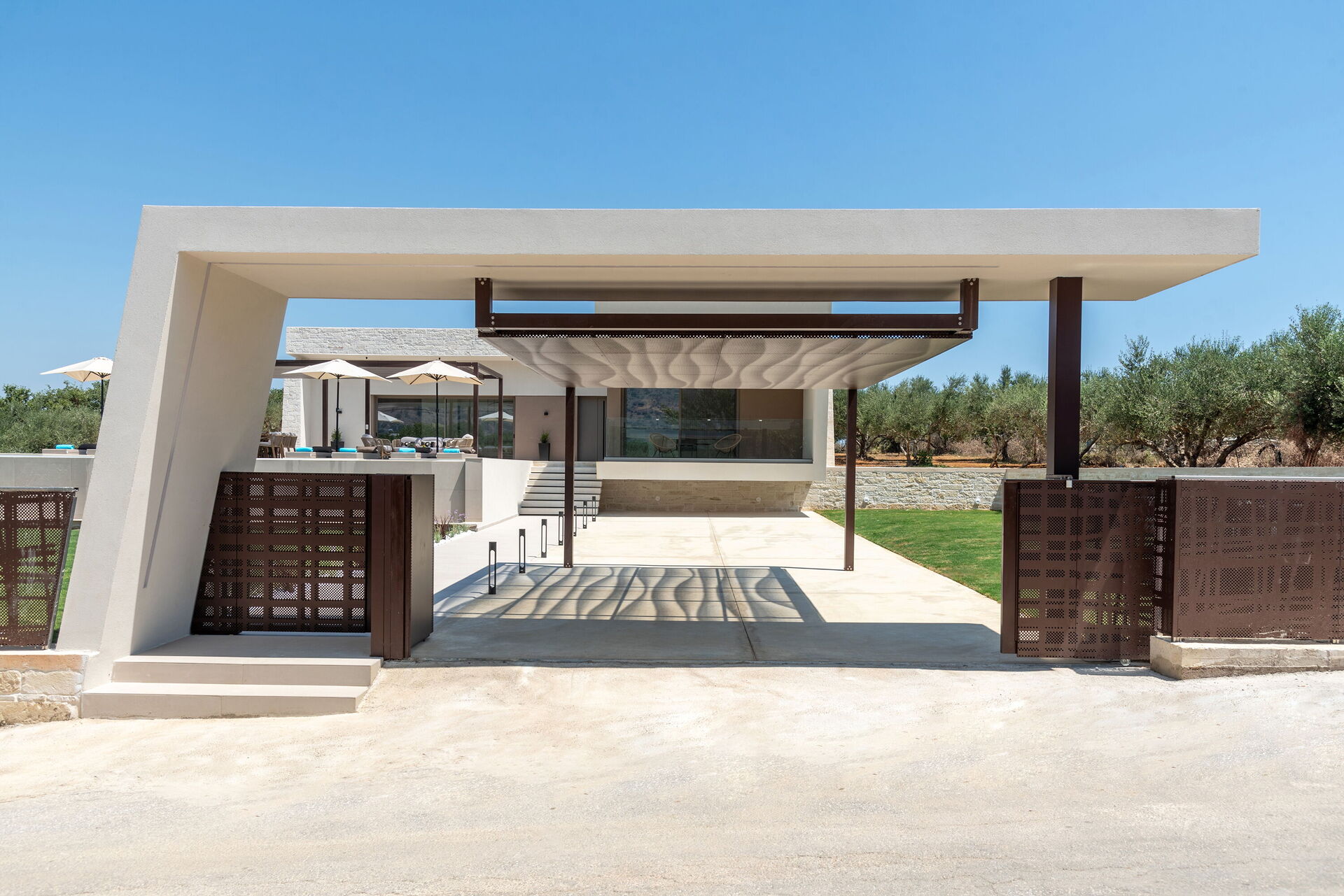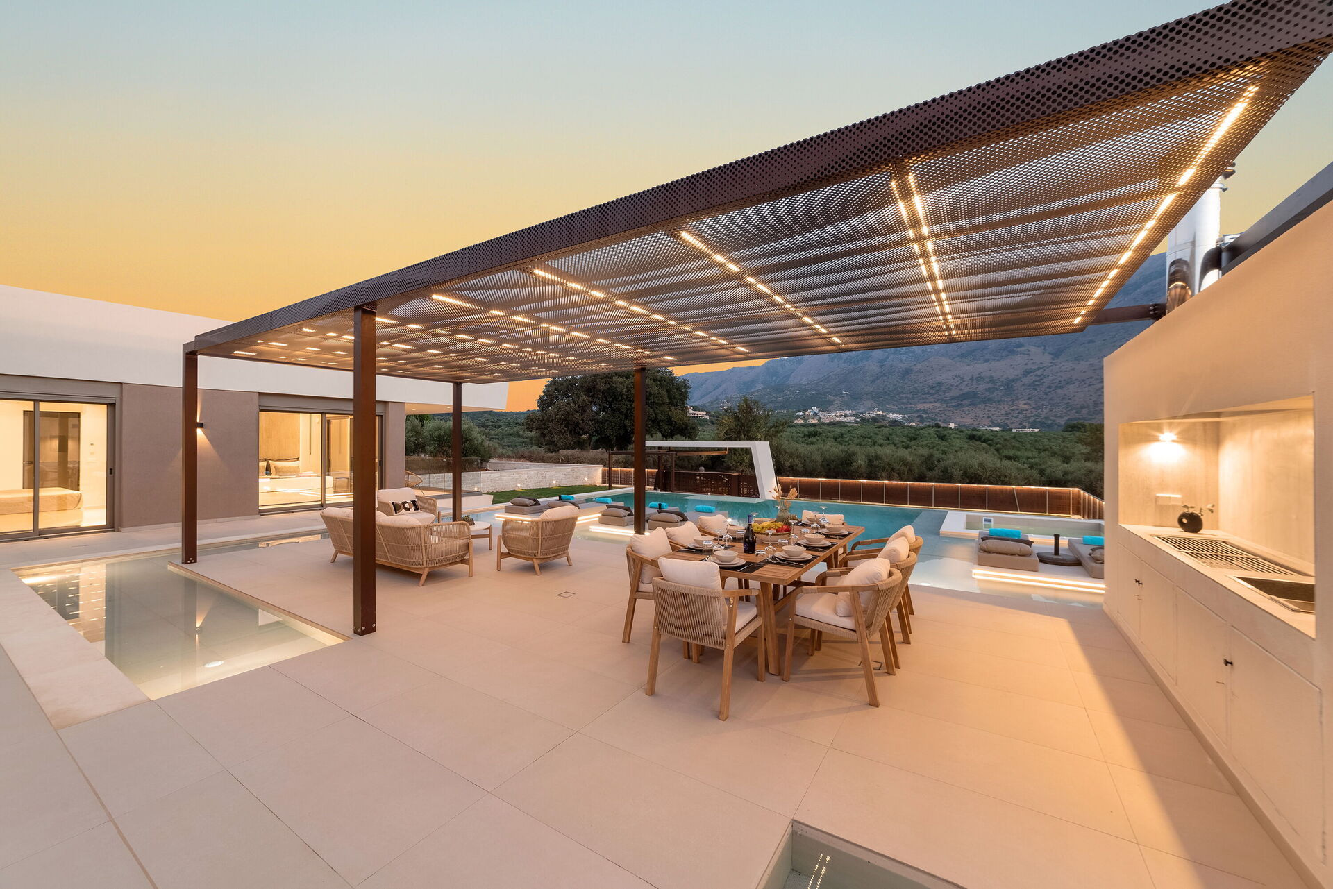 Design e comodità caratterizzano questa luminosissima villa di lusso: una grande cura è stata data alla scelta degli arredi e alla distribuzione degli spazi. Sia internamente che esternamente tutto è stato pensato per offrire ai propri ospiti il massimo della comodità. Grazie alle sue 4 camere può comodamente ospitare fino a 7/8 persone e all'esterno una grande zona attrezzata per cucinare e mangiare all'aria aperta vi permetterà di godervi le belle giornate di sole dell'isola di Creta. Per non parlare della bellissima piscina (con zona idromassaggio: questa zona è riscaldabile su richiesta) riservata all'uso esclusivo degli ospiti che regalerà refrigerio e divertimento per tutti.