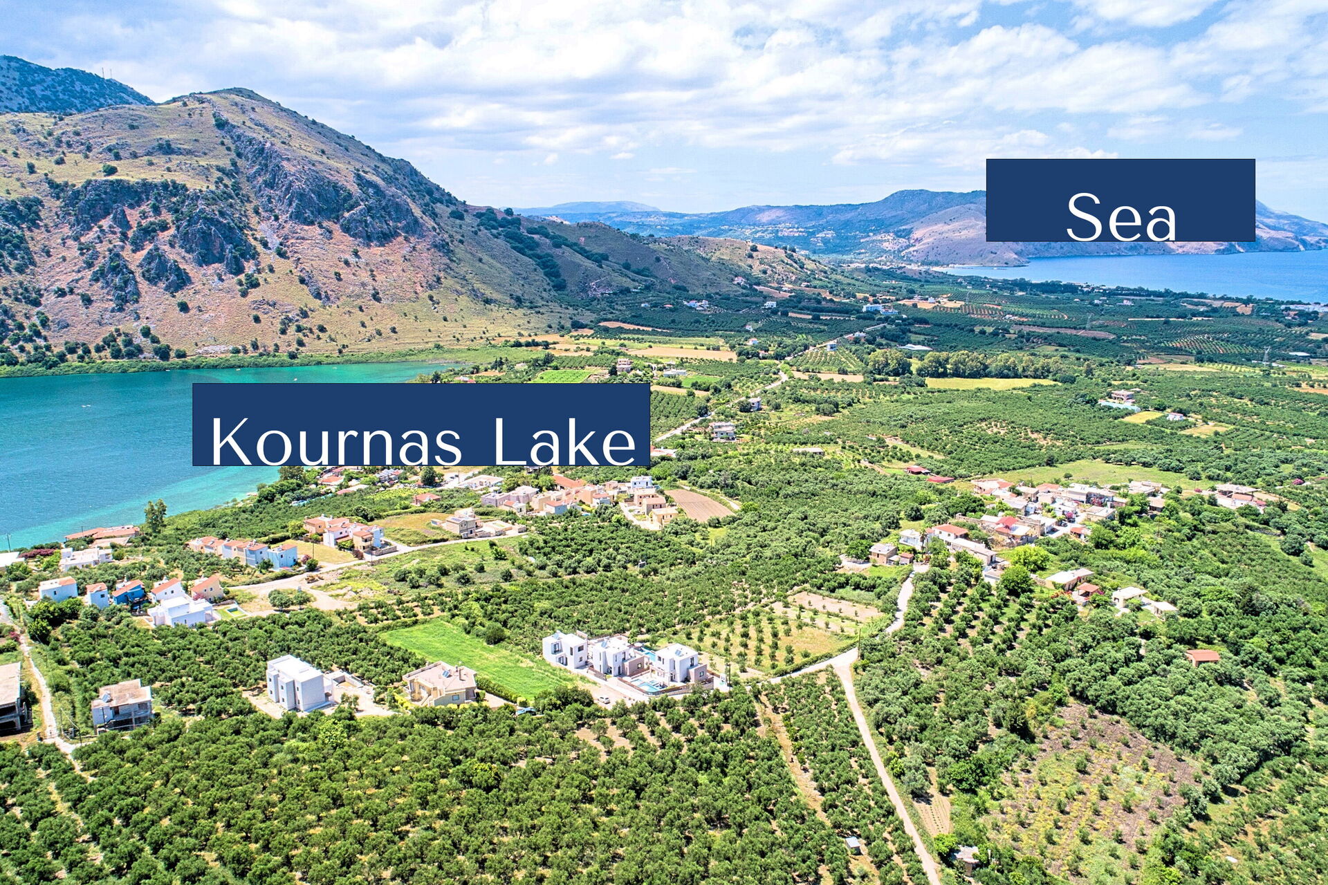 Distanze: lago di Kournas (negozi e ristoranti) a 1 km, Georgioupoli (negozi di ogni genere e spiagge) a 4 km, Rethymno a 23 km, Almyrida a 30 km, Chania a 40 km, aeroporto a 50 km, Heraklion a 100 km, il famoso Palazzo di Cnosso a 105 km.