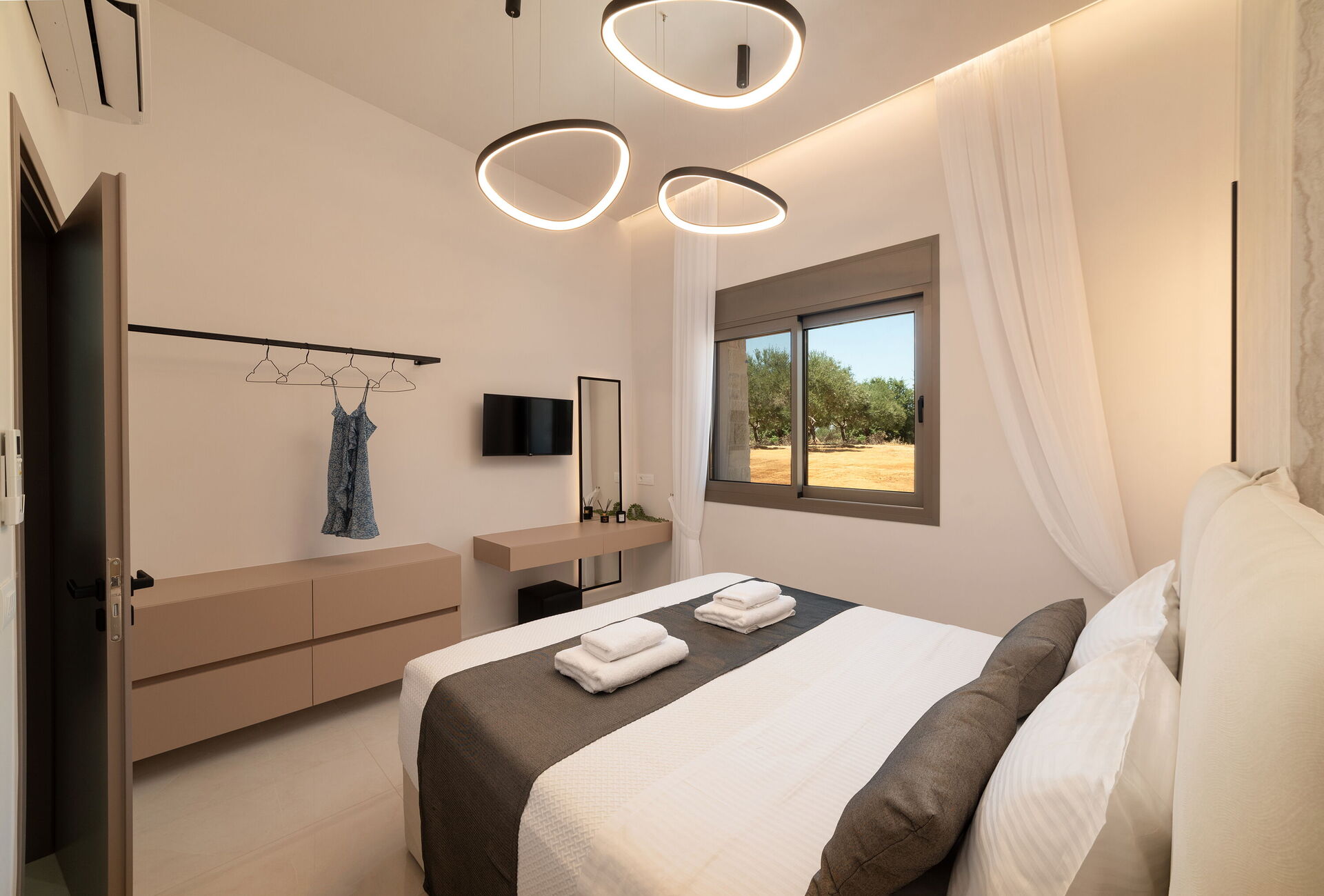 A small paradise in the middle of the Greek olive groves. Luxury new villa and contains everything you need. The swimming pool is great, the supermarket is nearby and Kournas Lake is nearby. Katerina is wonderful and kind host who helps you with everything. It was the best vacation we had in Greece and we will definitely be back again