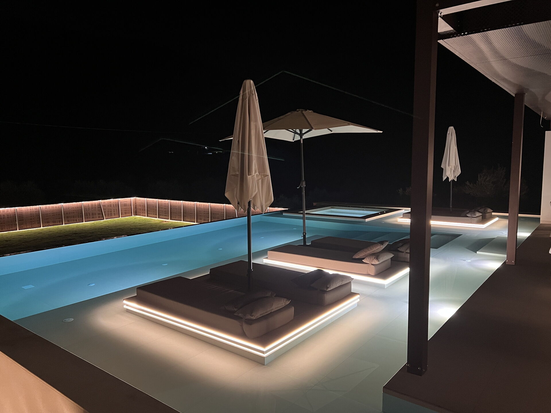 - piscina privata riservata all'uso esclusivo degli ospiti con zona idromassaggio (questa zona è riscaldabile a 30°-35° C su richiesta senza costi extra)