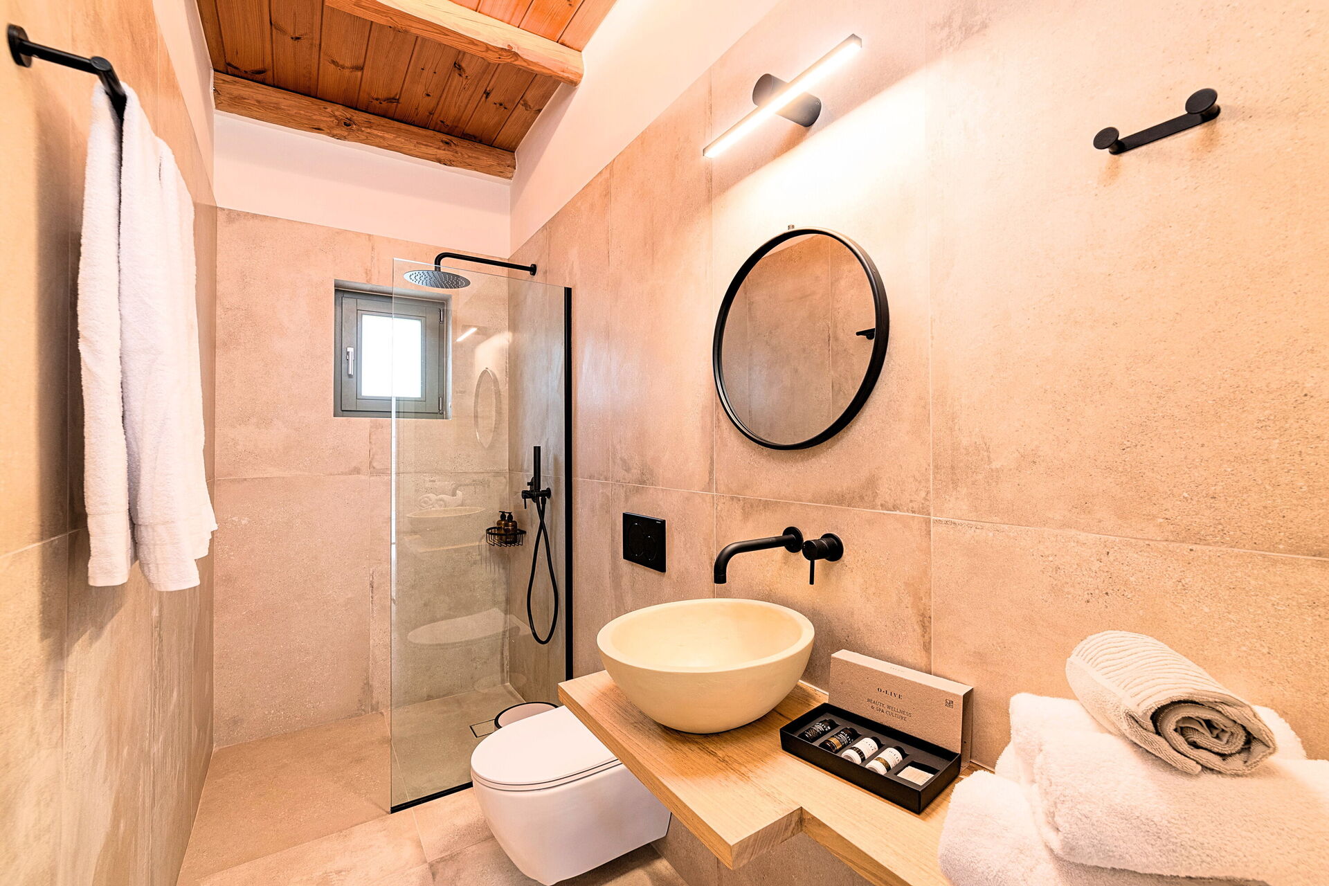 Easily 5+ star accommodation. The property is stunning with a high level of craftsmanship and attention to detail. My family and I were very comfortable here and it served as a perfect home base as we explored the surrounding area. You definitely need a car for easy accessibility. Katerina & George were exceptional hosts, very welcoming and thoughtful.