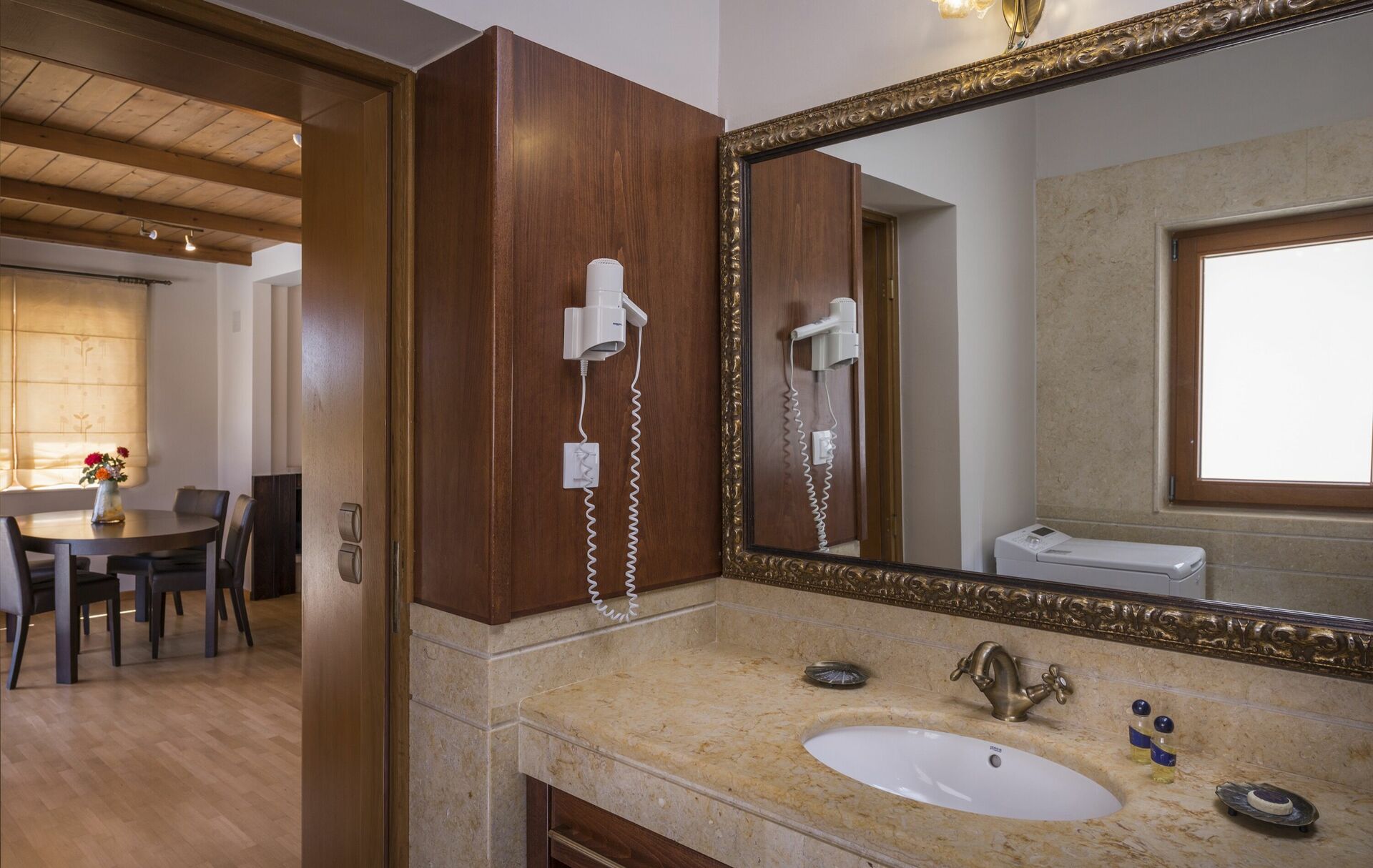 im Erdgeschoss ist das Badezimmer mit Dusche ausgestattet, das Badezimmer im 1. Stock mit Whirlpool; die Ausstattung ist alt jedoch voll funktionstüchtig; den Whirlpool nutzten wir nicht