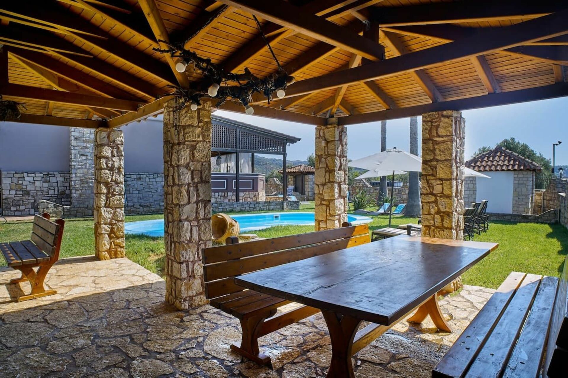 A lovely clean place to stay. Plenty of space and great facilities. Relatively close to Chania and taxis available to pick up from the Villa too which made it easier. Fantastic value - our group really enjoyed our stay.