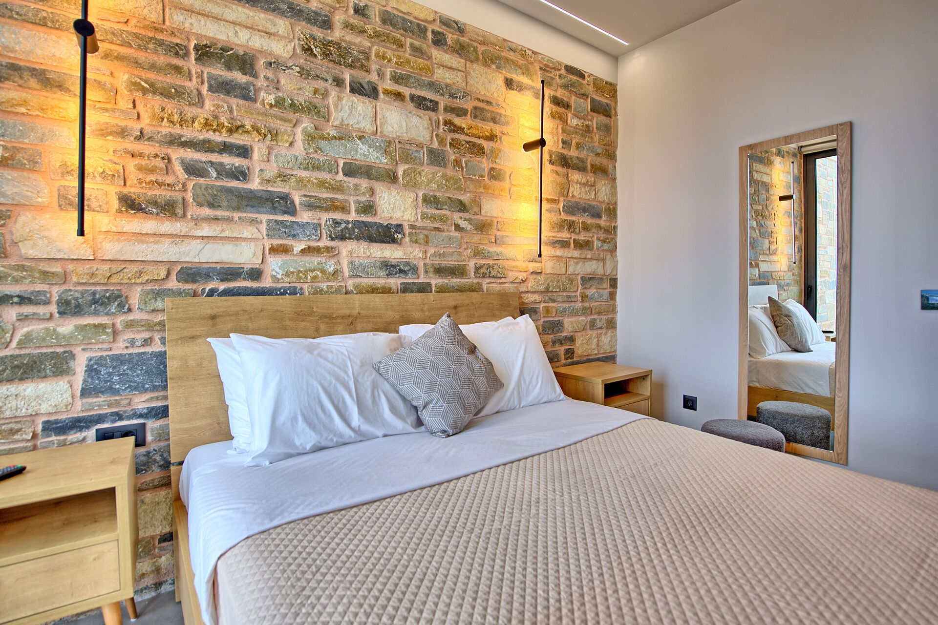 Etwas aufpassen bei nassen Treppenstufen!Ansprechende Schlafzimmer mit Gepäckablagen und tollen Wandleuchten.Petros hat bei allen Fragen umgehend reagiert und geholfen. Helen hat sich sehr gut um das Housekeeping gekümmert.2-maliger Wäschewechsel und Reinigung während unseres Aufenthalts.