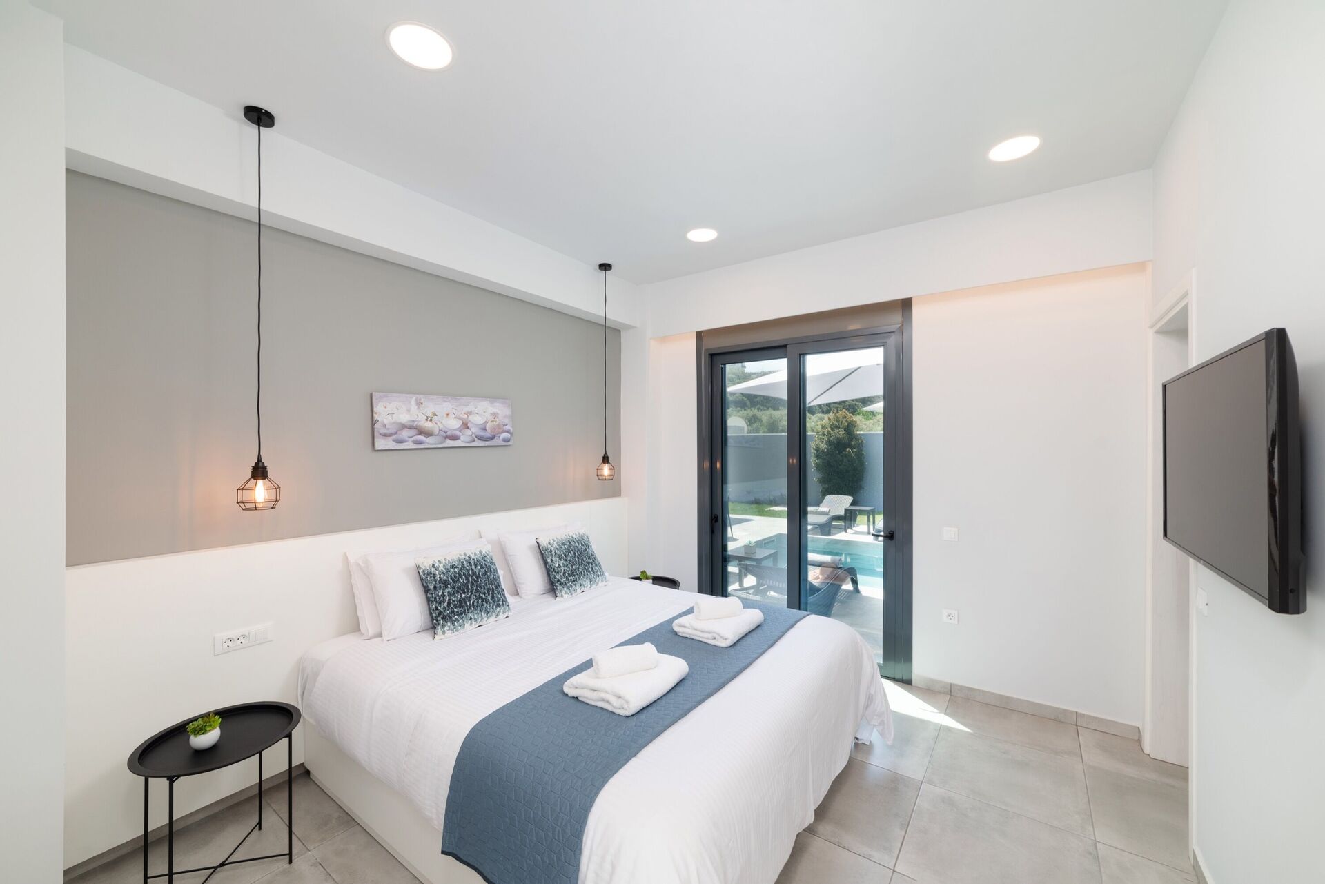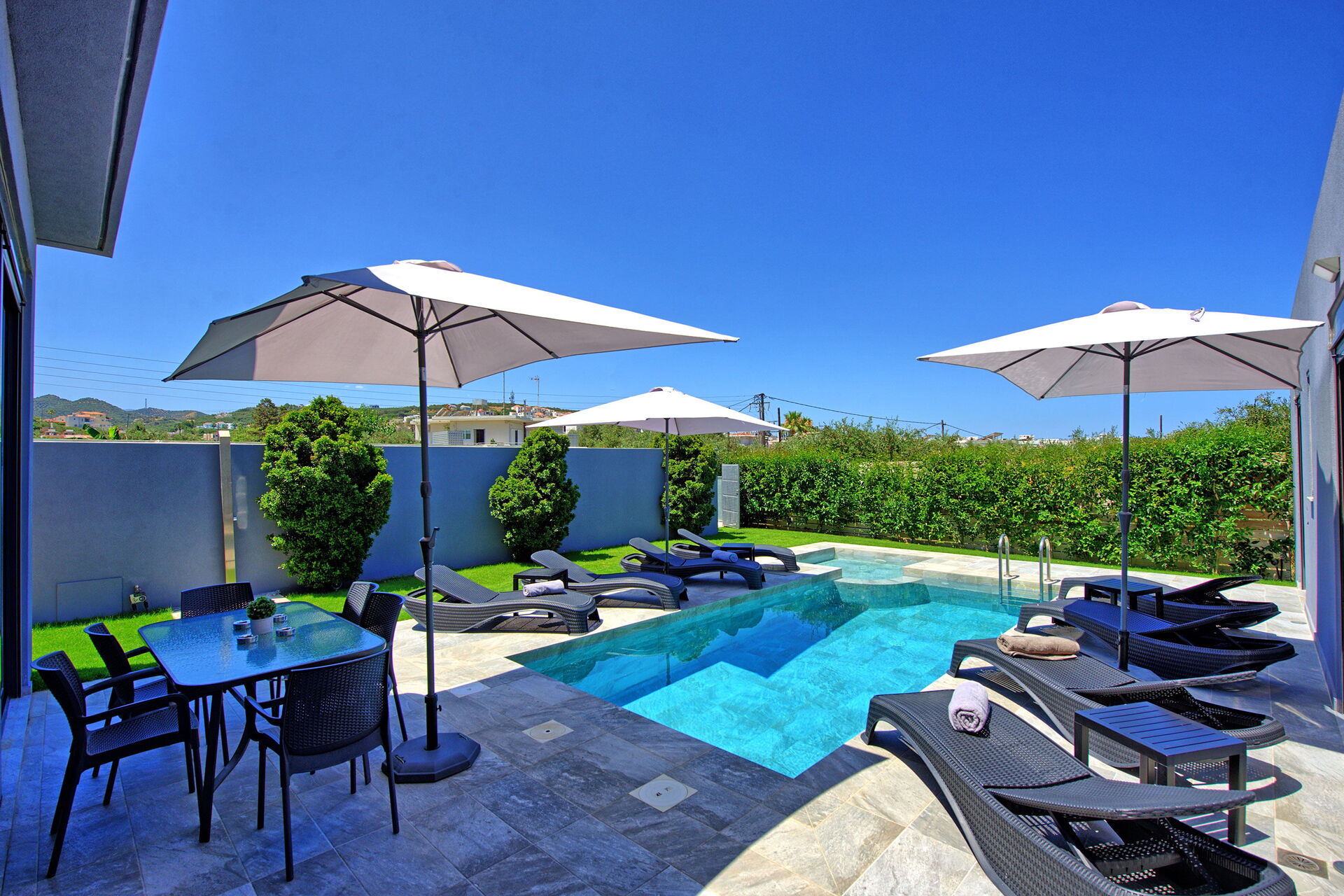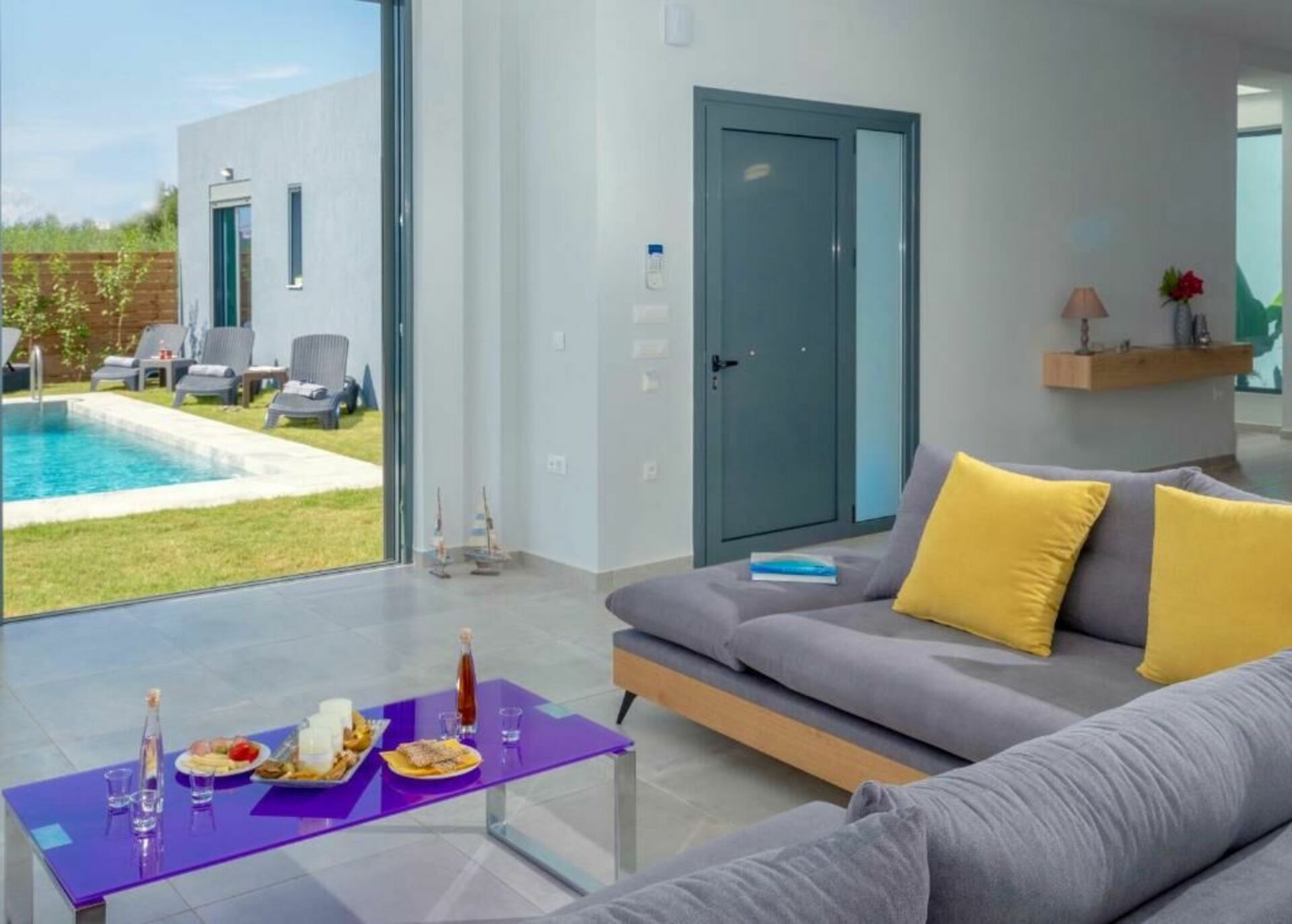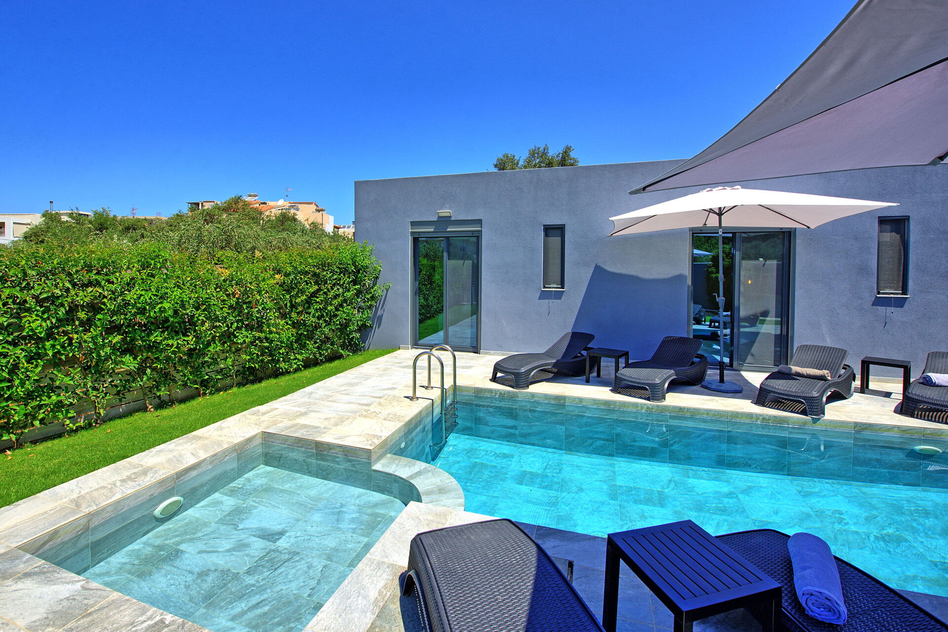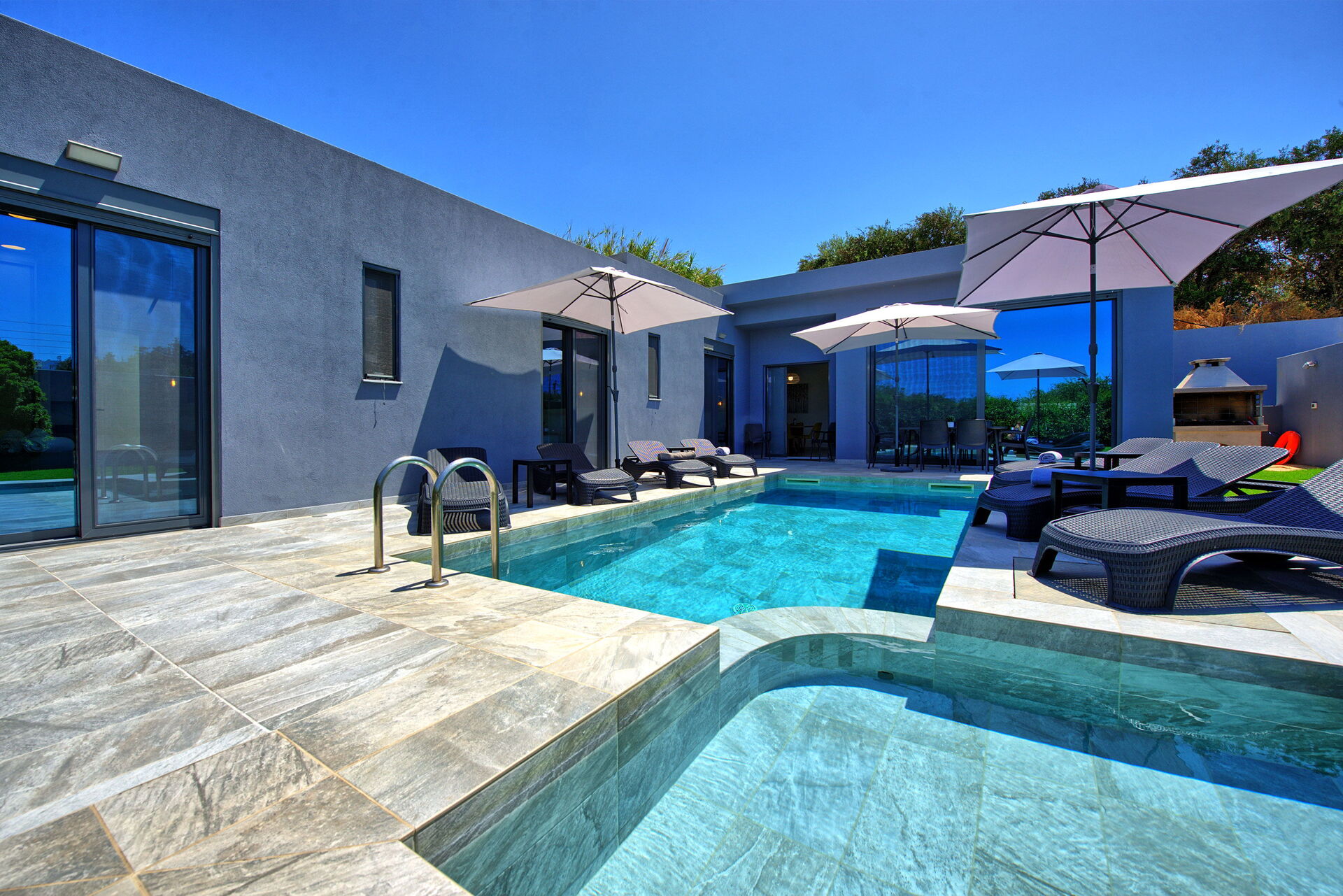 Villa Zaneti è una nuovissima e moderna villa indipendente con giardino e piscina privata in affitto a Creta a soli 600 metri dal mare.
