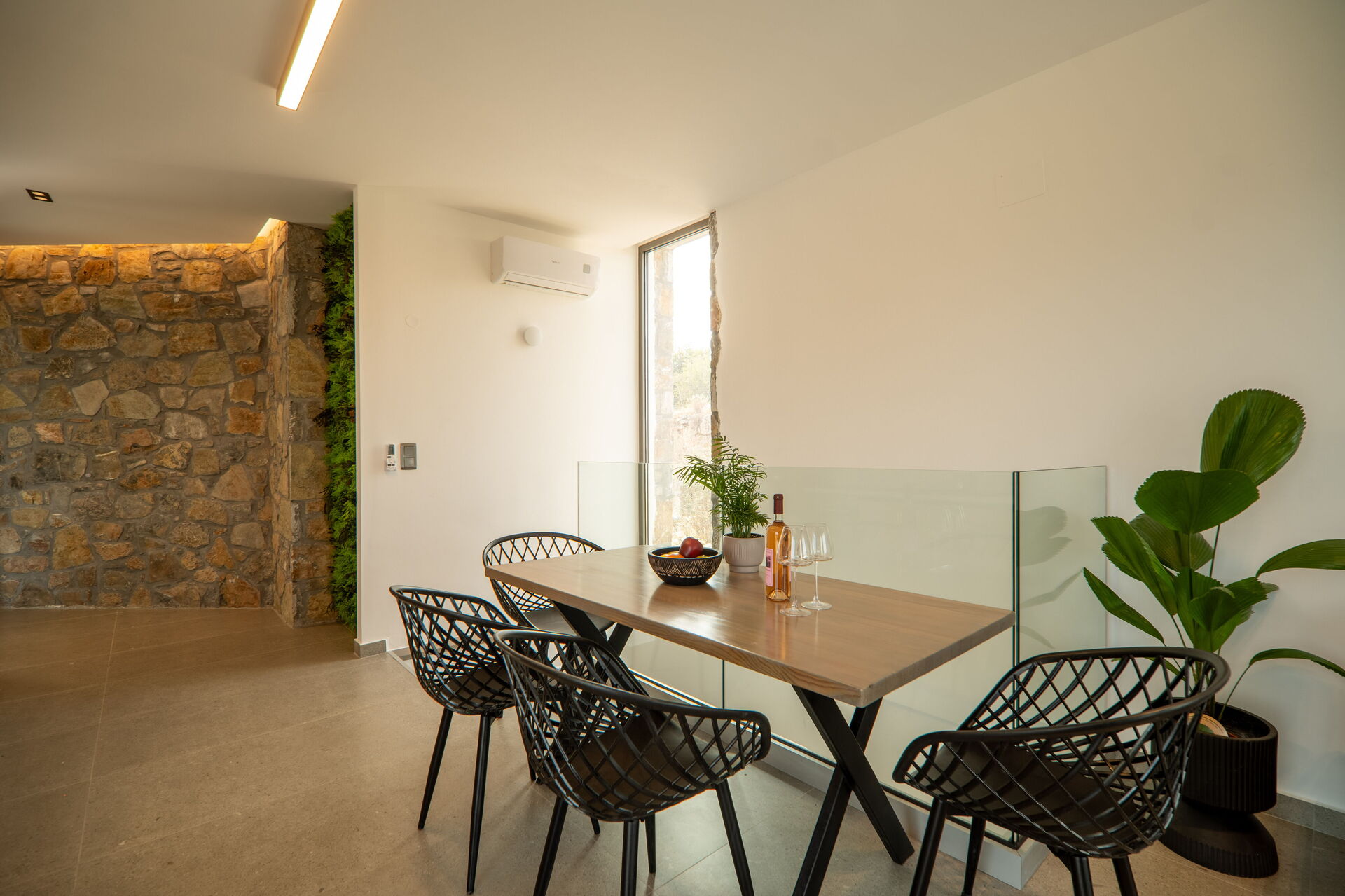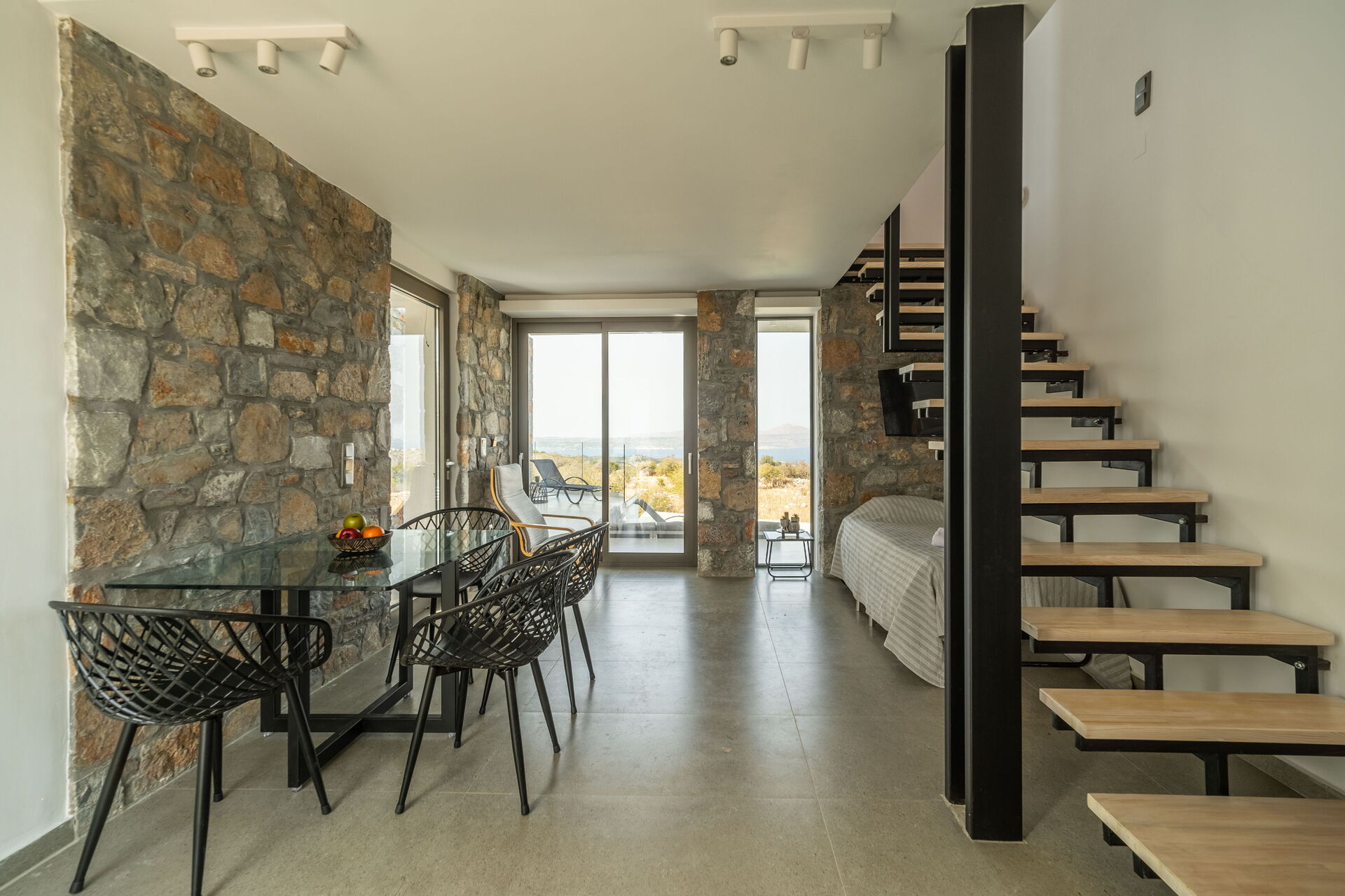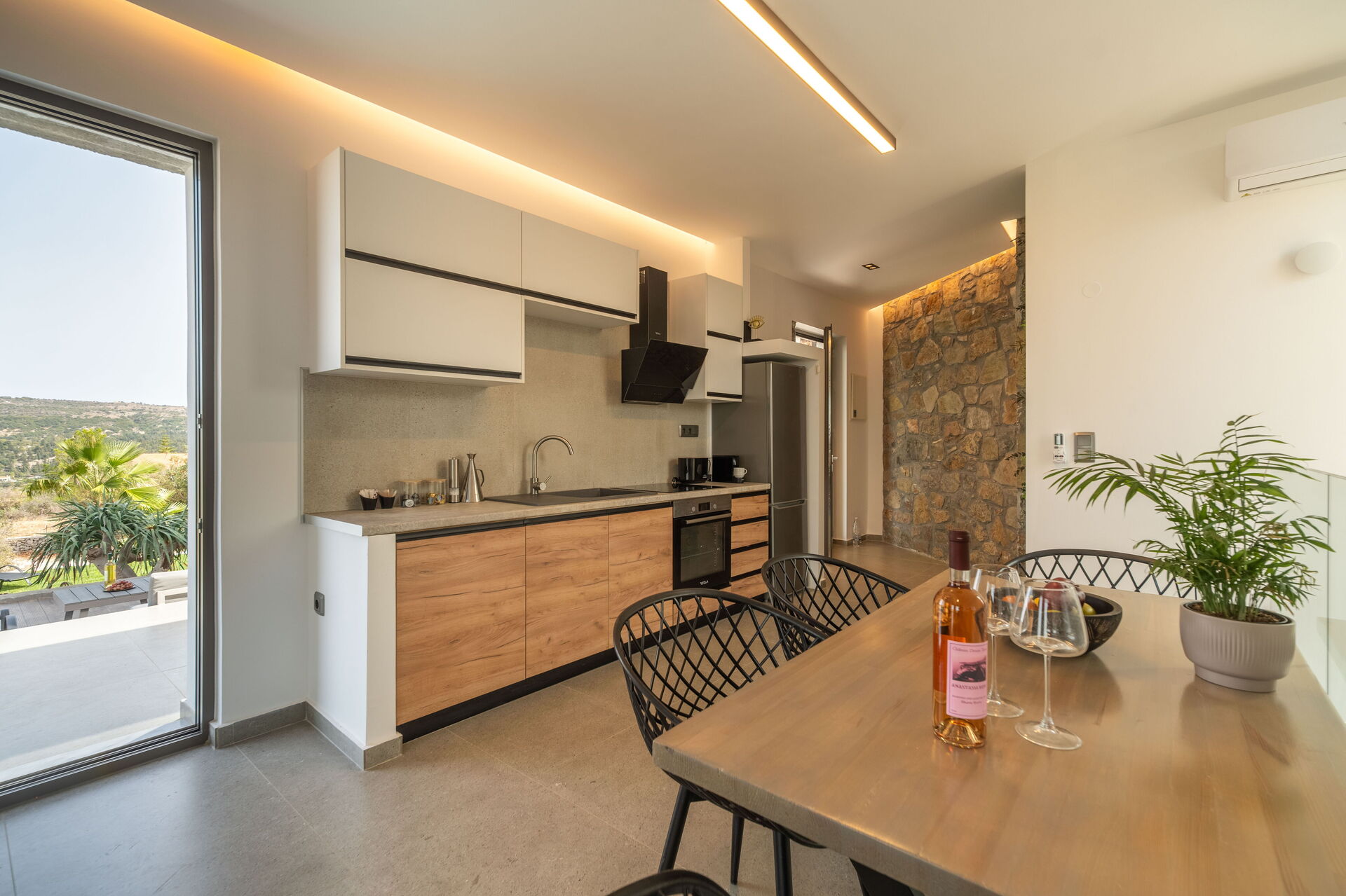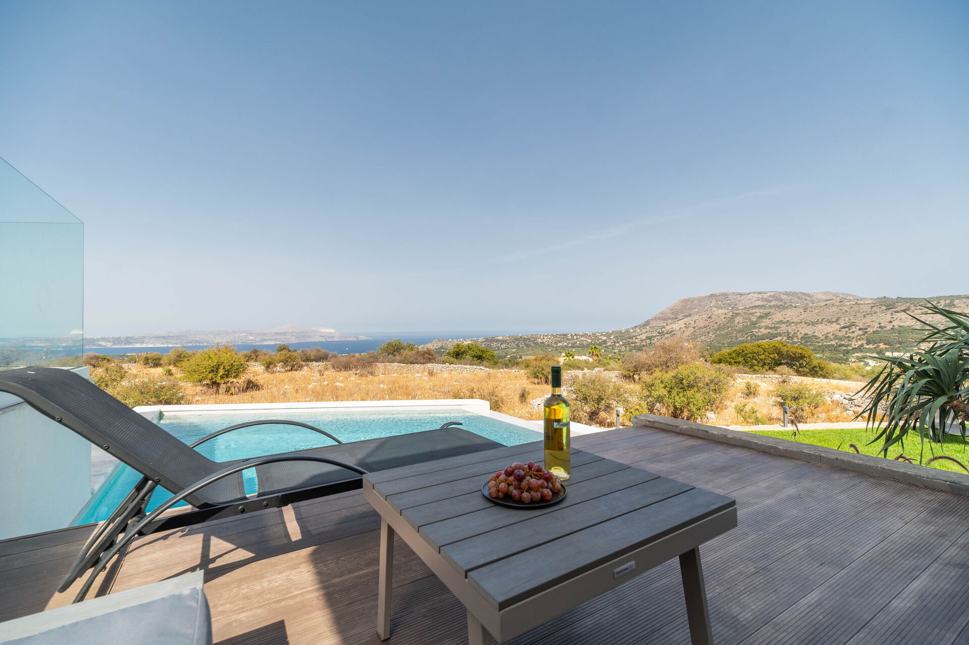 Esternamente sono presenti una panoramica piscina riservata all’uso esclusivo degli ospiti, una vasca idromassaggio esterna e una bella zona attrezzata per mangiare all’aria aperta. Internamente gli arredi sono moderni e molto confortevoli.