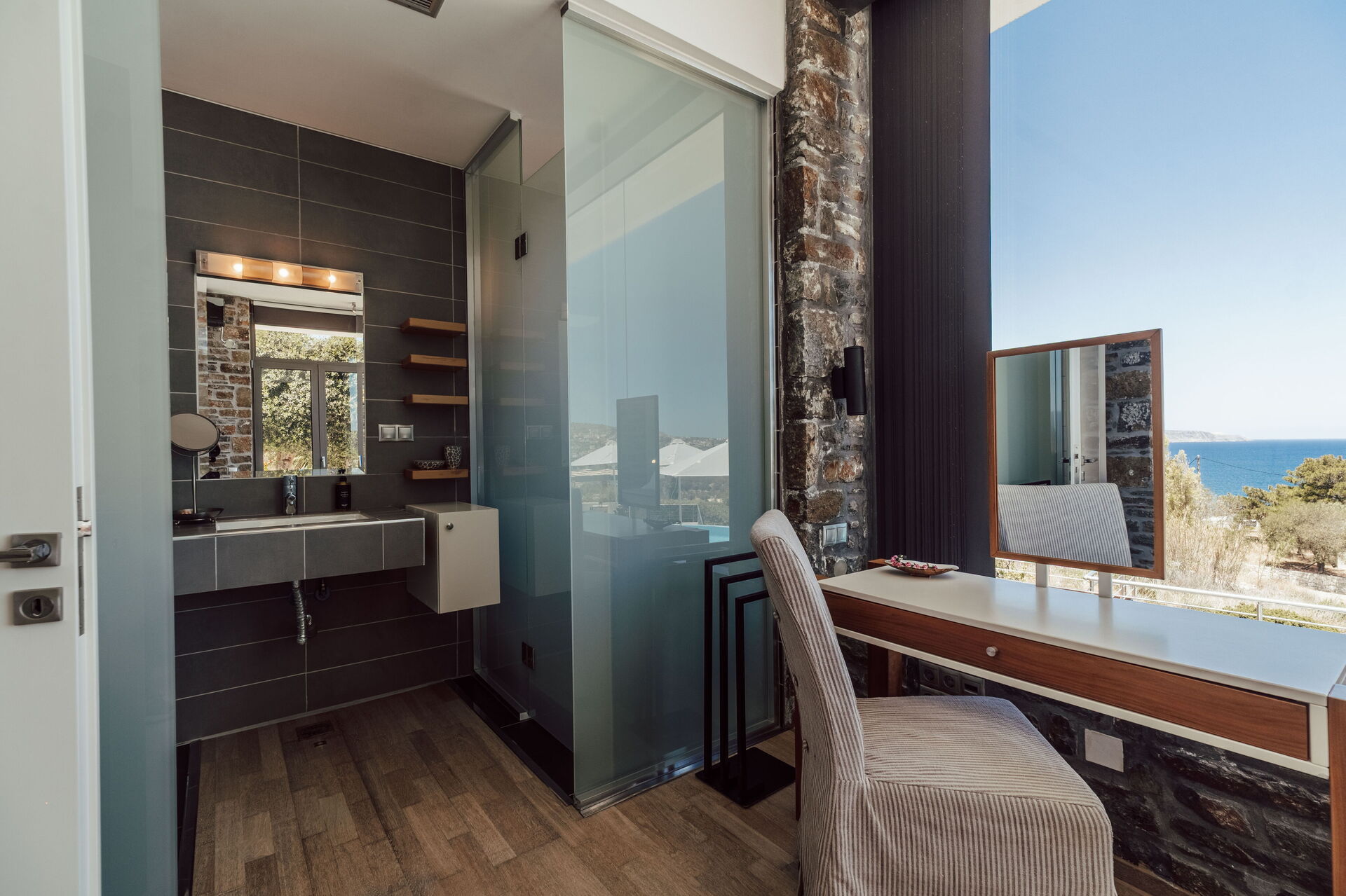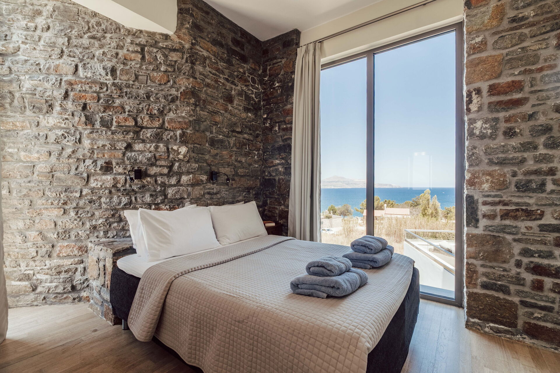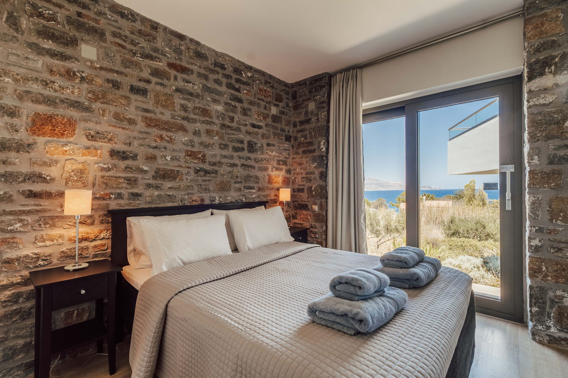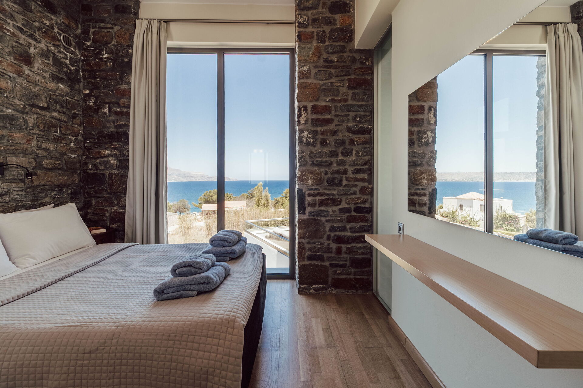 All'esterno sono presenti delle splendide terrazze panoramiche e attrezzate con i lettini dove potersi rilassare accarezzati dalla brezza costiera e dove potersi godere la vista mozzafiato sulla baia di Souda e sul mare cristallino di Creta.