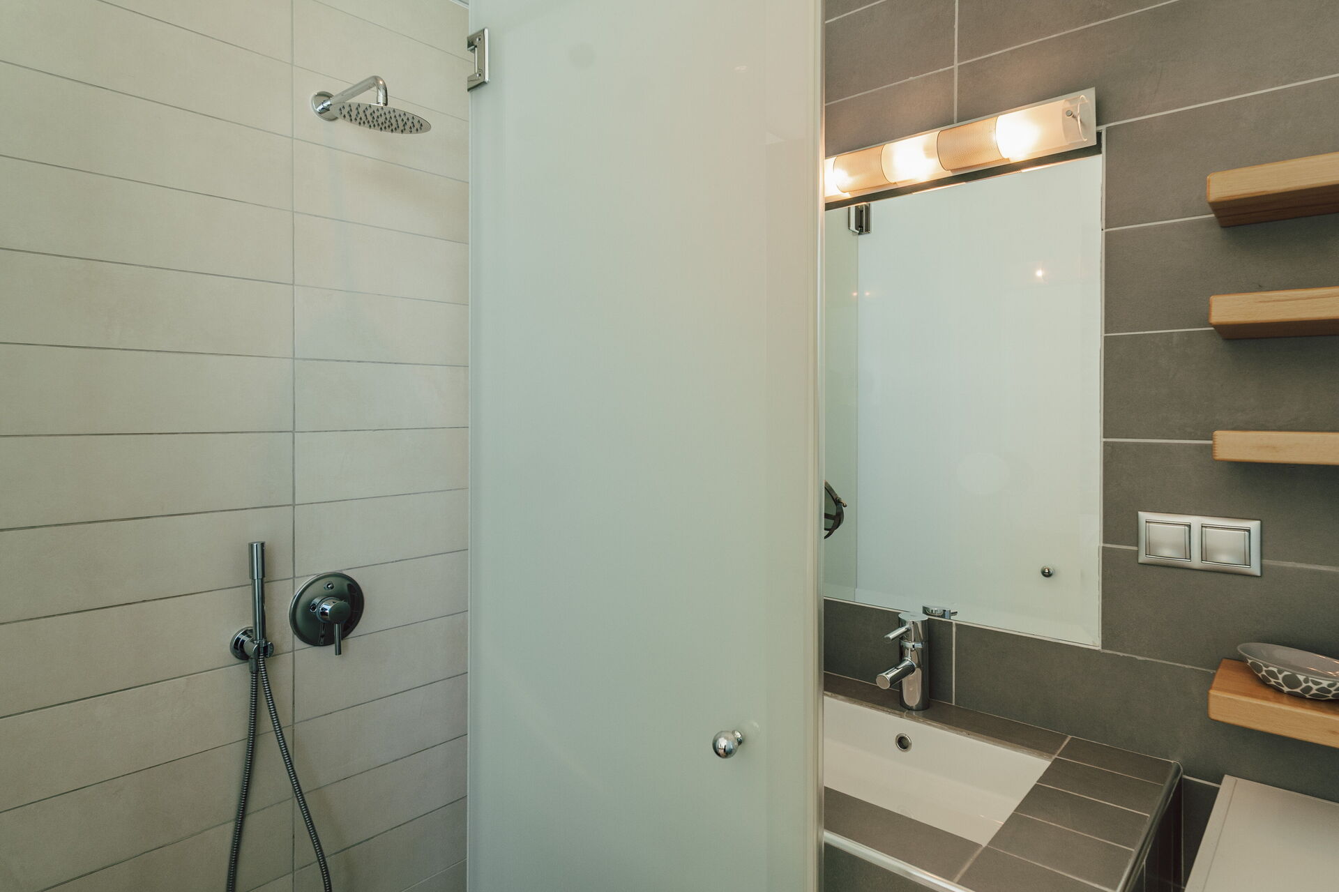 The bedrooms and bathrooms are excellent. The beds were a little soft for us, but very comfortable. Linen and towels were of high quality. The showers have both a rainfall overhead and a separate hand hose. The villa design, construction and furnishings are of high quality and well maintained. There is a washing machine and separate tumble drier in the lower ground floor which were very useful.