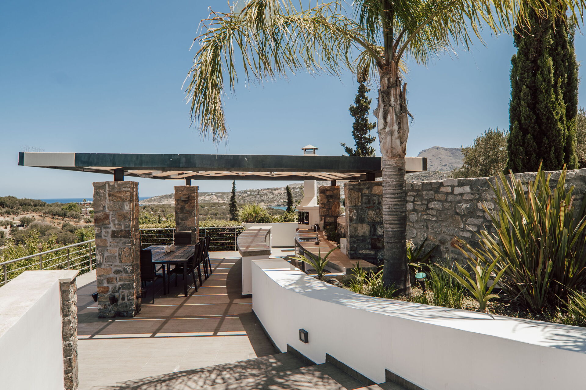 As a group of friends we had a fantastic time at this property. It is well kitted out, modern feeling, aircon in all the bedrooms. Great views and a lovely pool. A short 10min walk into Almyrida for eating out. We especially loved the outdoor kitchen dining area down by the pool and had all our meals down there. Vivian did a fantastic job with advice and recommendations and the few niggles we had were quickly sorted. Would love to come and stay again!