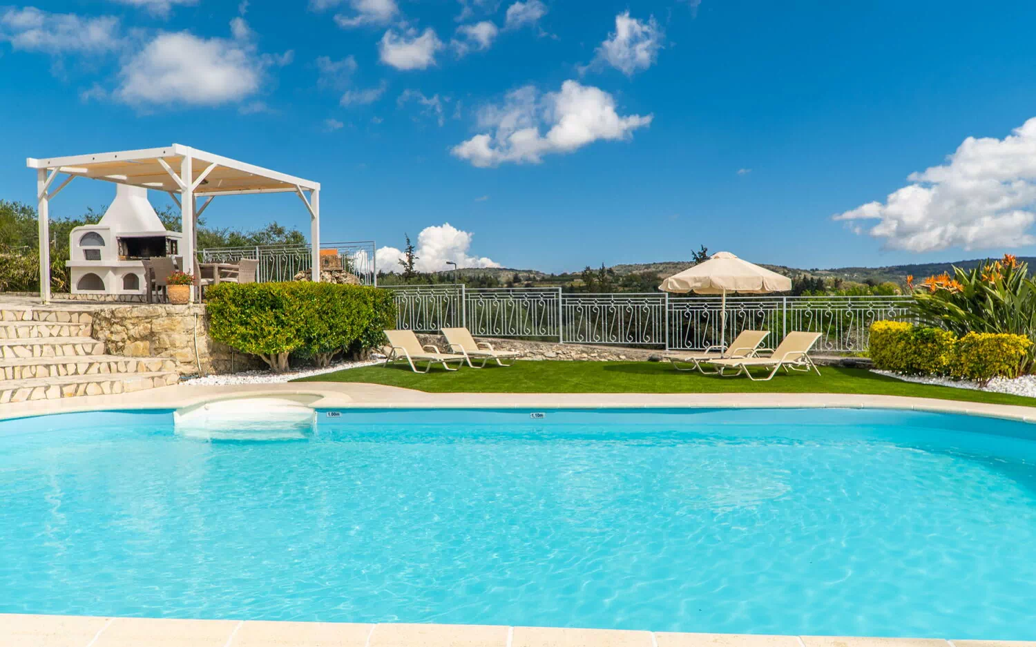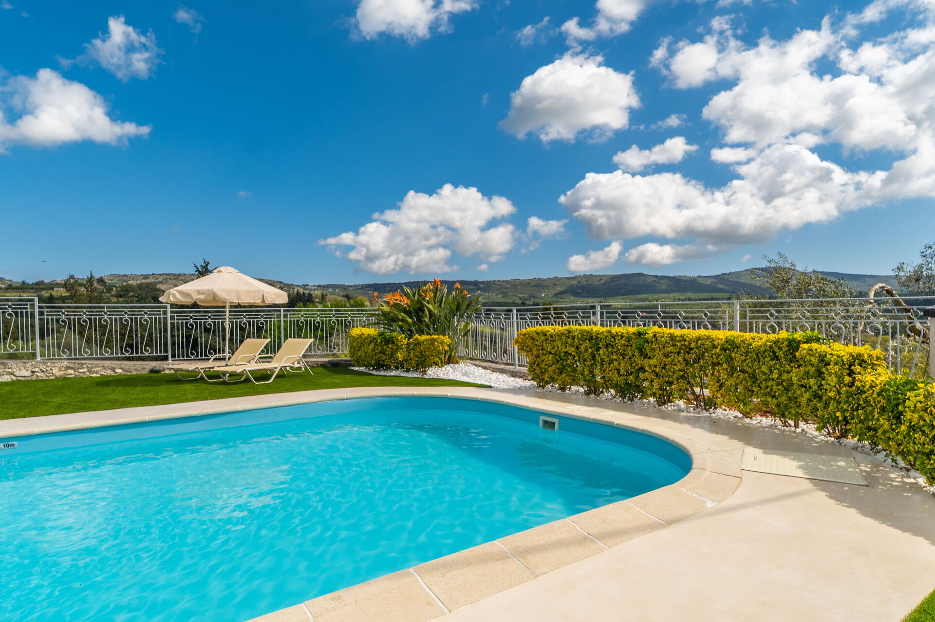 La piscina con vista sulla campagna e sulle colline circostante: gli uliveti, i cipressi e gli arbusti della macchia mediterranea saranno la vostra cornice per indimenticabili momenti sotto il sole della Grecia.